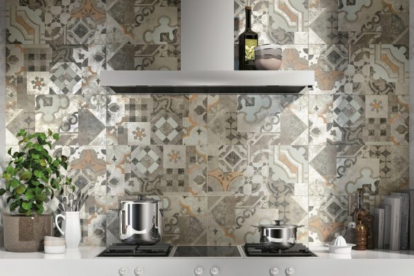 In ceramics, this rediscovered taste for decoration is visible in tiles for the bathroom, using both traditional decorative elements and also introducing others whose characteristics had previously precluded their use, such as wallpaper, fabric, leather, etc.