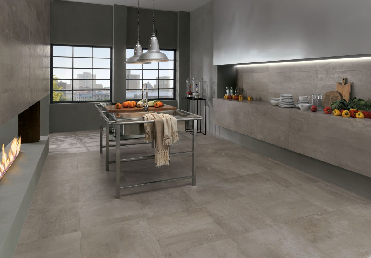 A half industrial and half country concrete effect tile, blends in with most styles in a delightful neutrality: a most exquisite hippy chic mix.