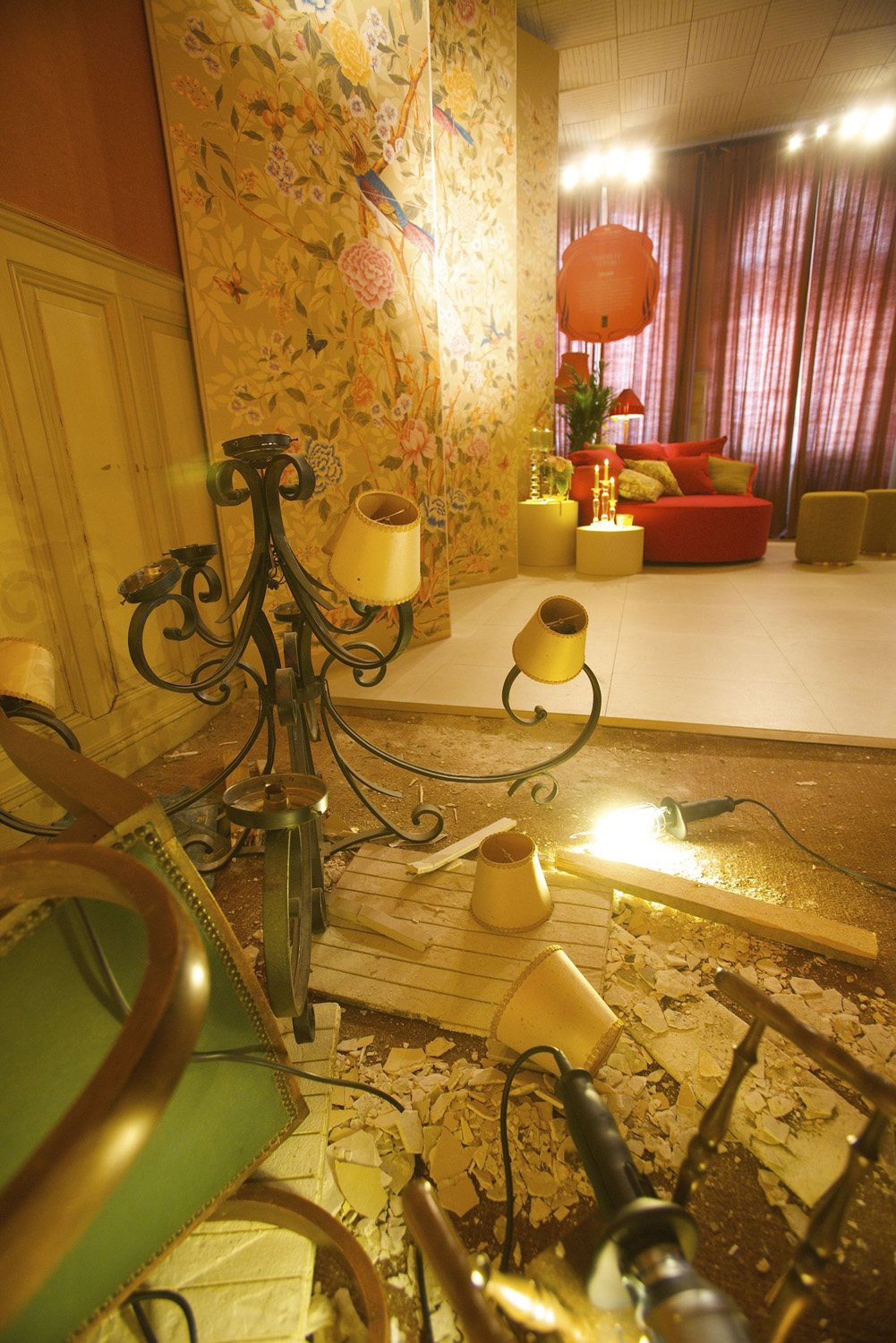 These images illustrate the setting created in the rooms of the Hotel des Voyageurs during Métamorphose. Photographs taken while the event was open to the public with theatrical performances underway can be found here.