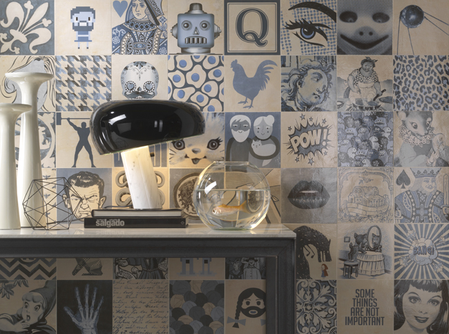 It is the methodic lack of consistency in the selection of the subjects, the constant matching between high and low, of the trivial and the refined, of the classic and the pop, of culture and folklore, that becomes the stylistic code, the novelty and originality of a collection of ceramic tiles, which, as well as being able to bring enjoyment to an expert eye, who can delight in finding the dozens of hidden references, is also able to provide enjoyment to anyone who appreciates the beauty and the lightness of the final aesthetic result.