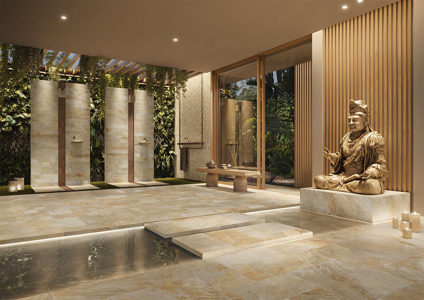 Techtouch is the new surface developed by Novoceram that guarantees a finish capable of combining the technical performance necessary for the most demanding uses in terms of resistance to wear, scratches and slipping, with aesthetic qualities, pleasantness to the touch and ease of cleaning typical of traditional ceramics.