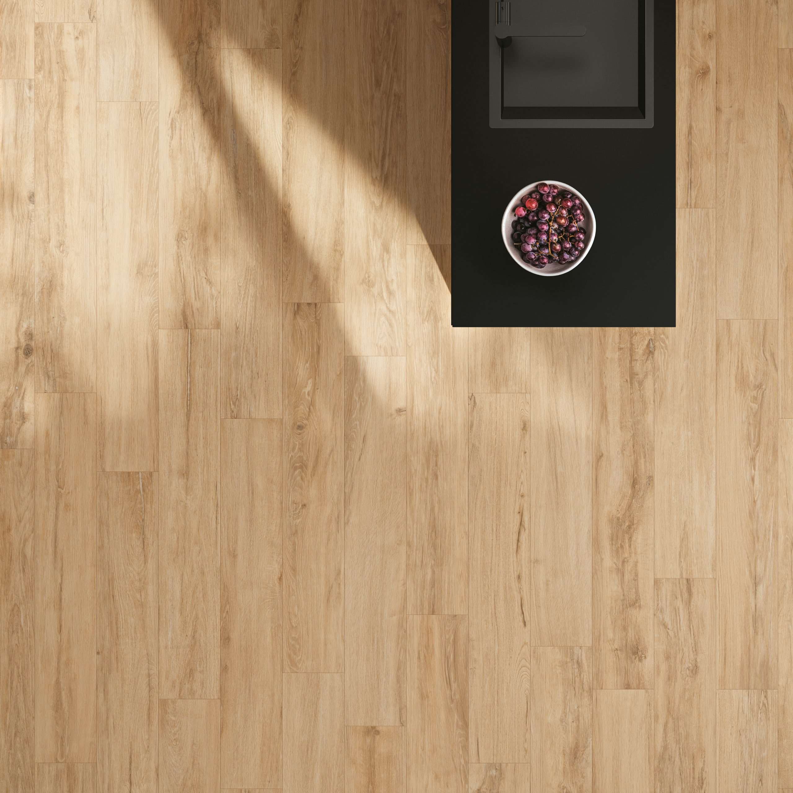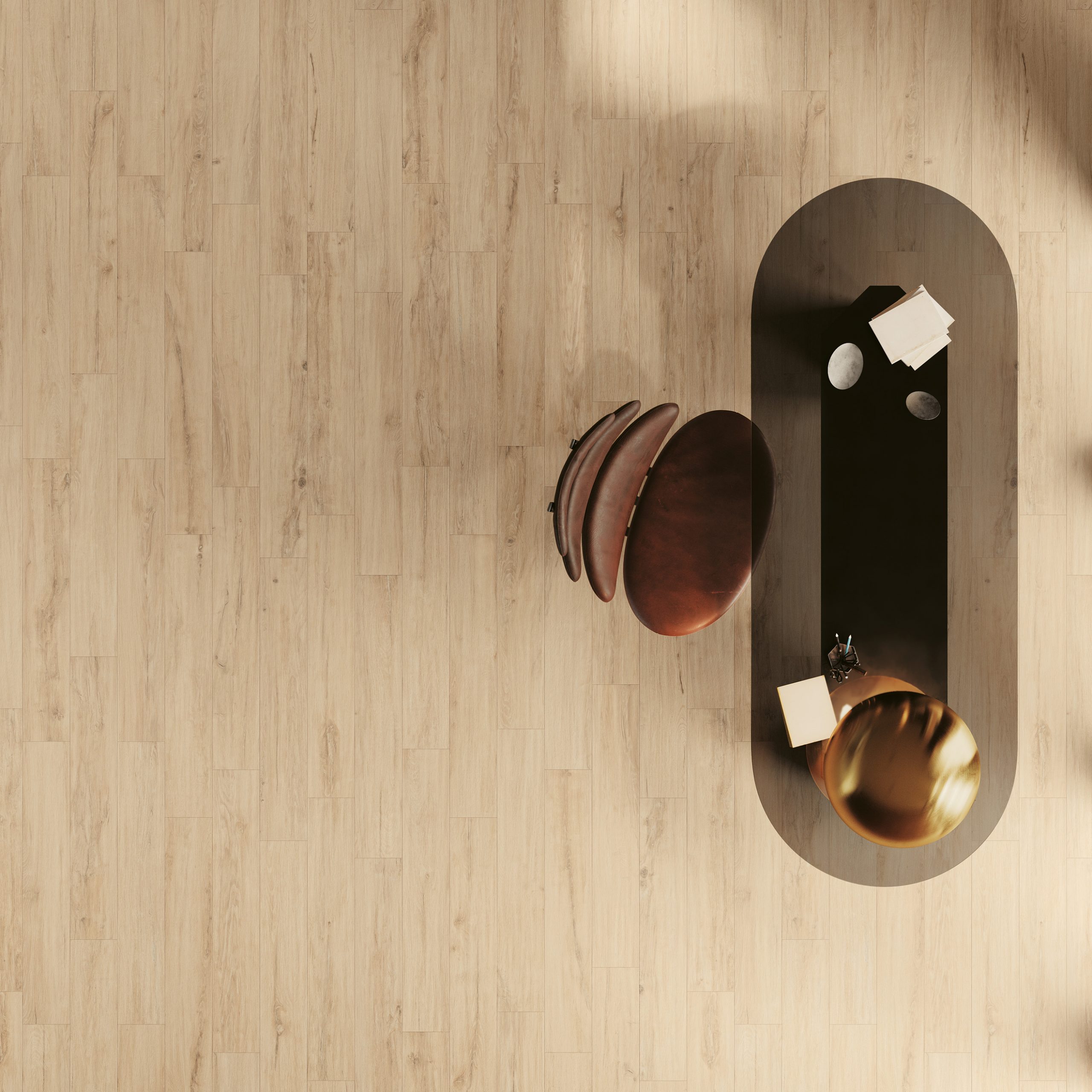 The Abéa collection accurately replicates the nature, warmth and comfort of oak trees down to the smallest detail. In this way, the grains, knots and even the finest fibres that all characterise natural wood, are reproduced with a surprising realism and enhance the surface of tiles. Some lighter shades than the essence of Abéa fill in the wood cracks with finesse, but do not give it a rustic look.