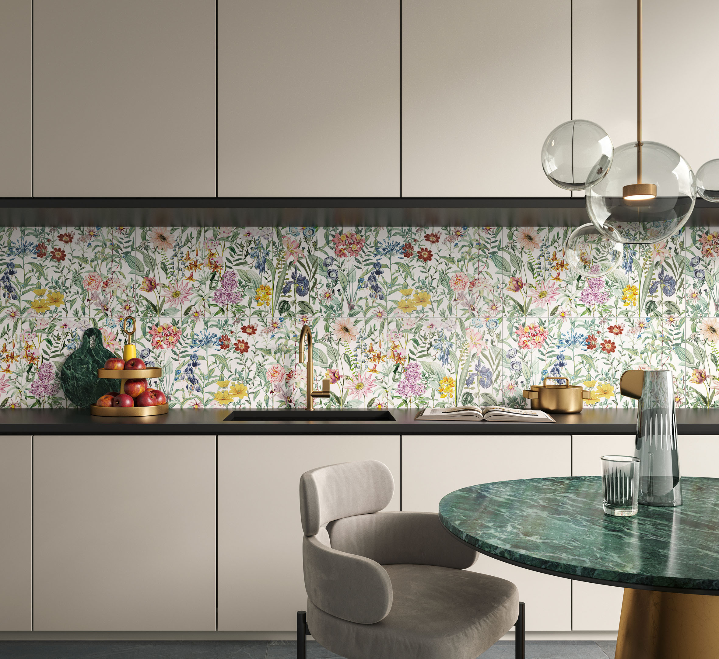 Novoceram, French ceramic producer since 1863, unveils a collection of white body tiles for interior walls that welcomes nature and brings a flowery touch.