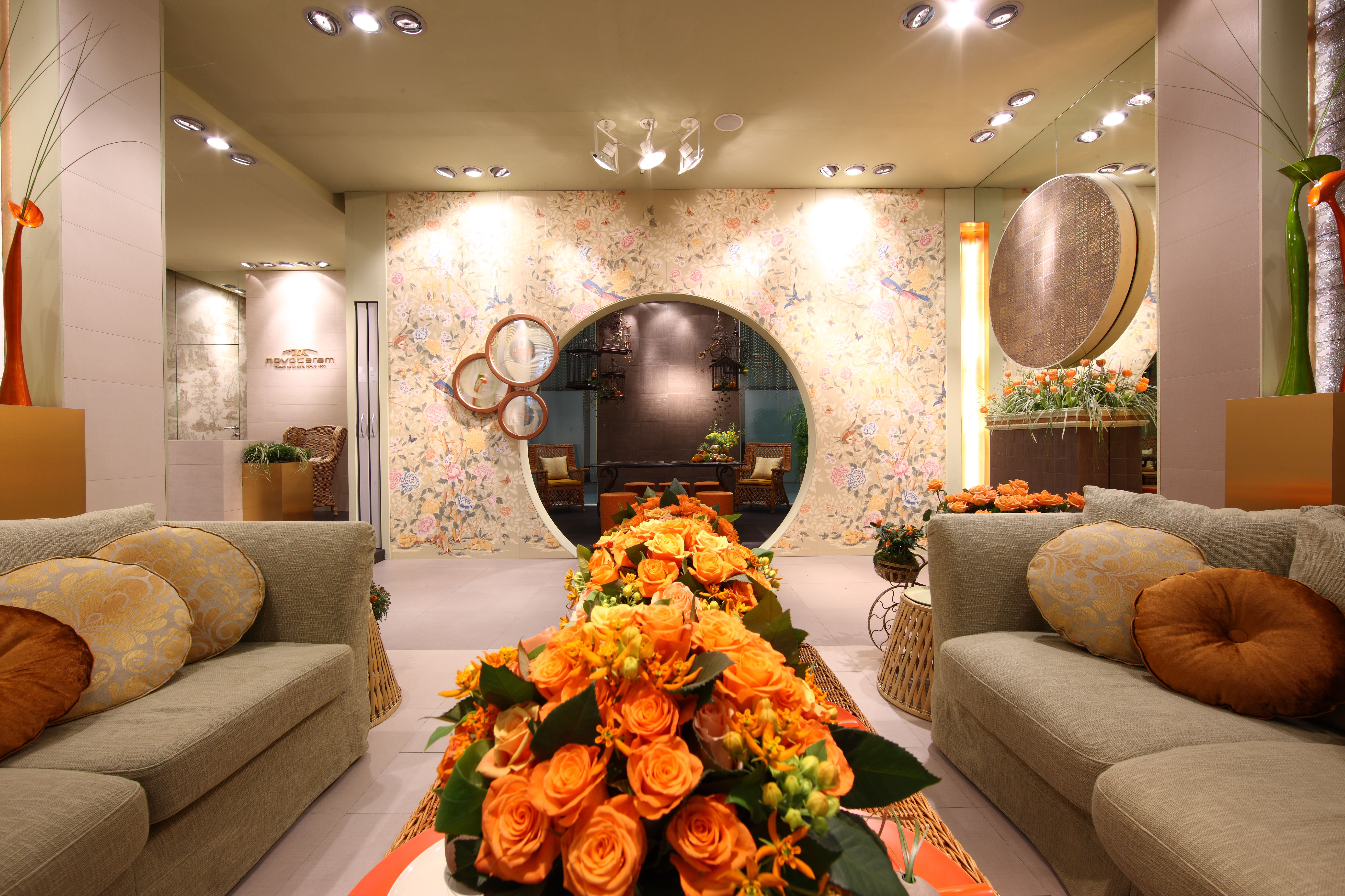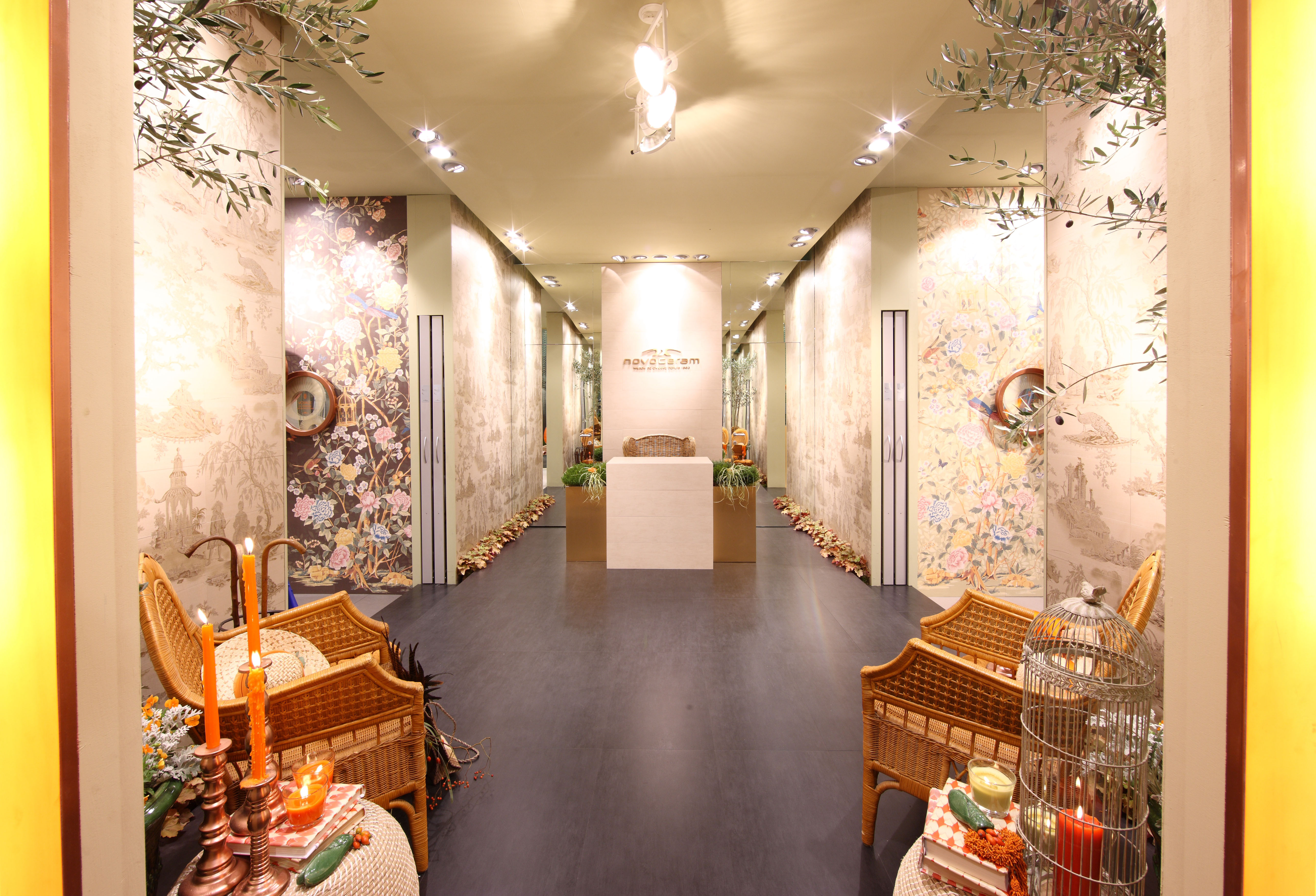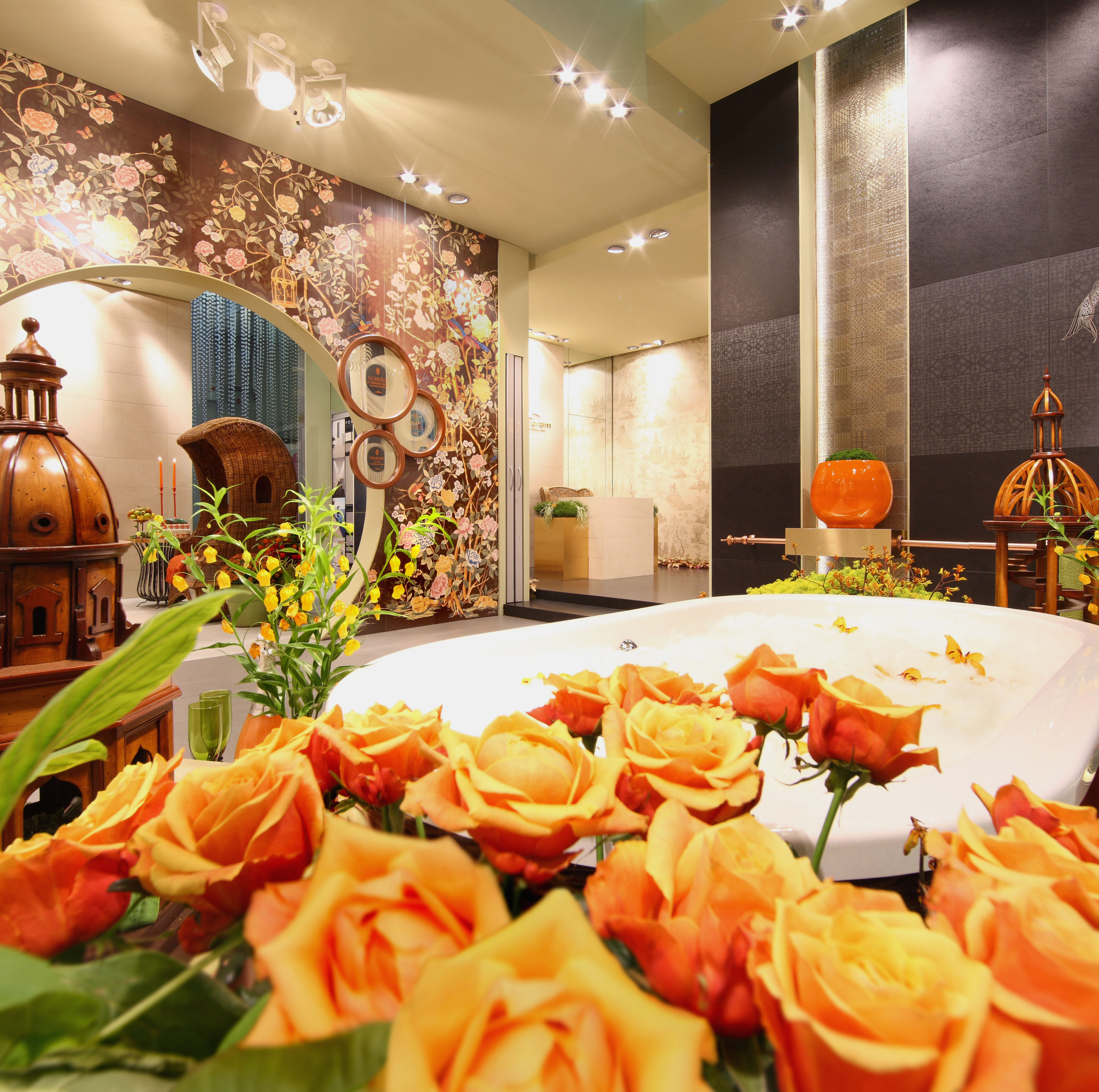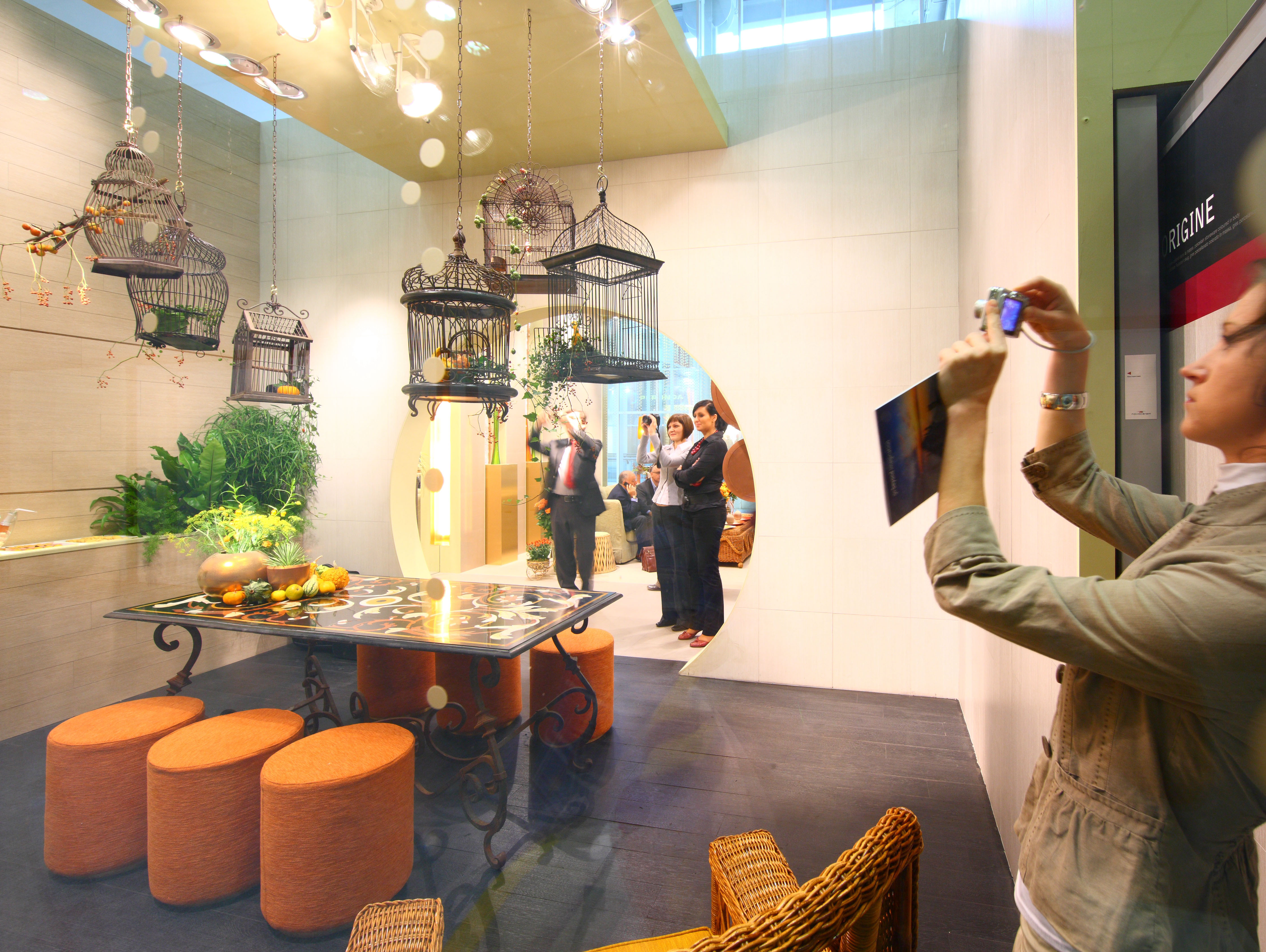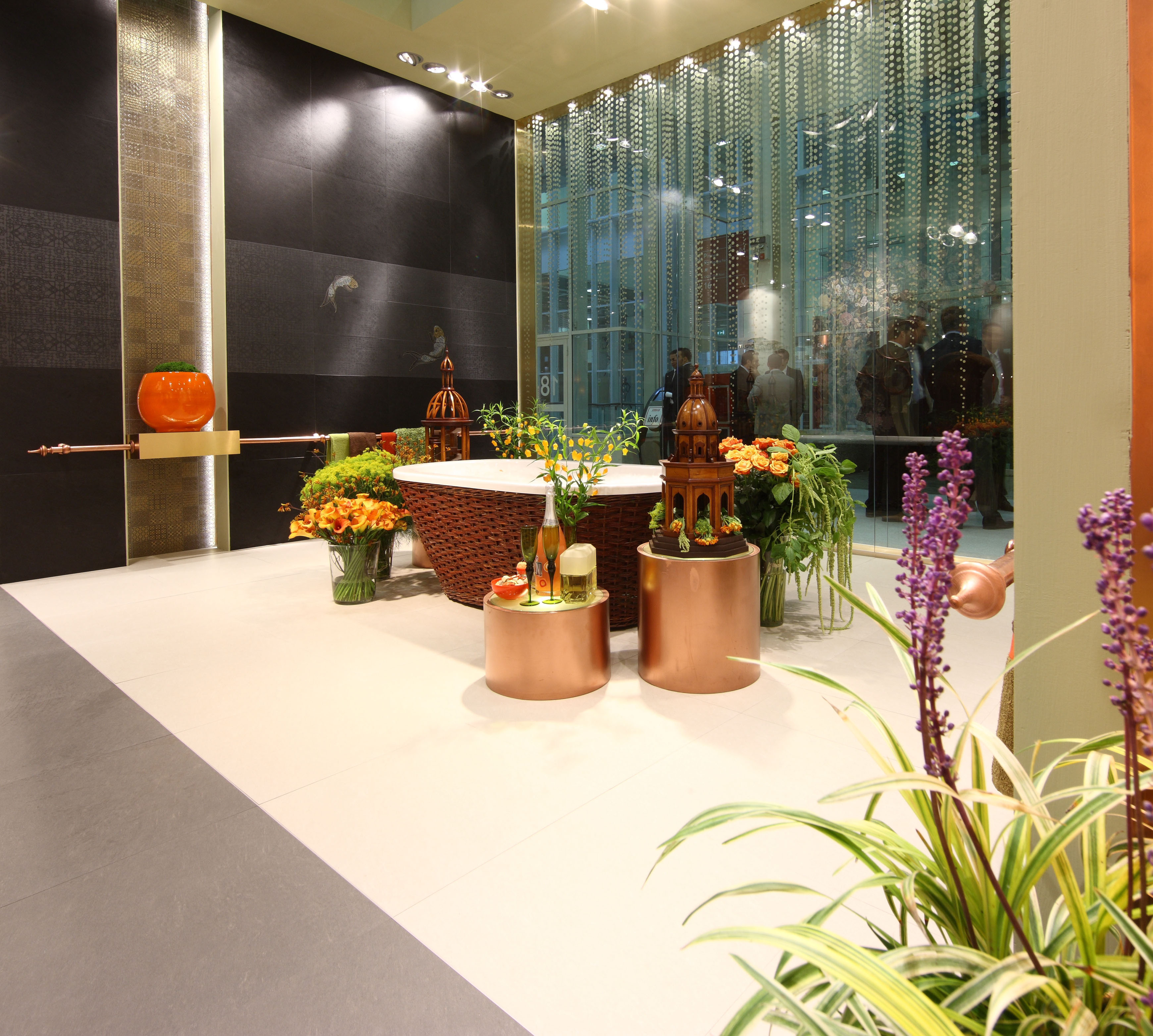 To discover the « Conte d’été », visitors are taken through a sequence of inner rooms and large terraces « en plein air » presenting collections Origine and Samsara conceived for both indoor and outdoor areas, and the precious ceramic coverings Florilège, Aquarium and Dentelle.