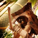 An audacious concept who conceives a surrealistic oasis in the forest, inhabited by a gentle spirit, who decided to live dipped in nature in order to rediscover his most authentic dimension, but when night comes down he approaches again to city borders to capture the objects that men have discarded, taking them with him, to restore new life and to furnish his secret nest.