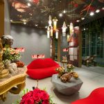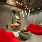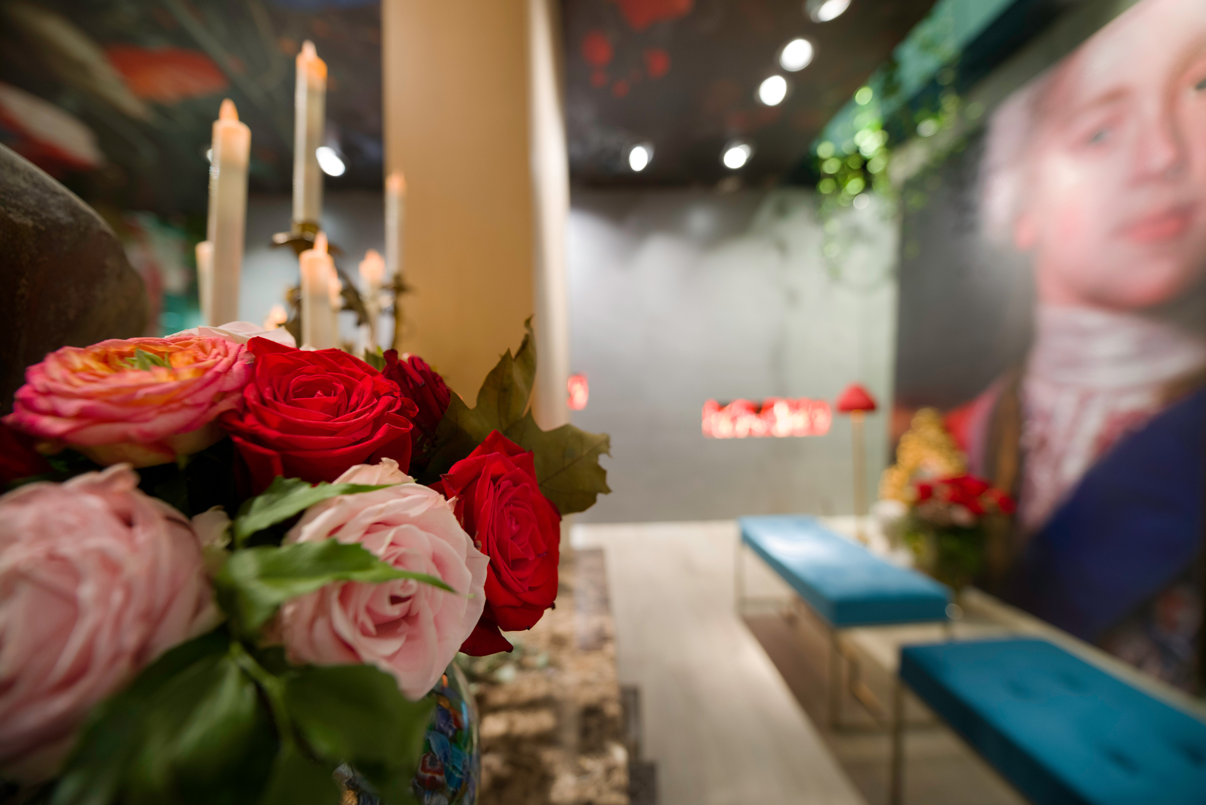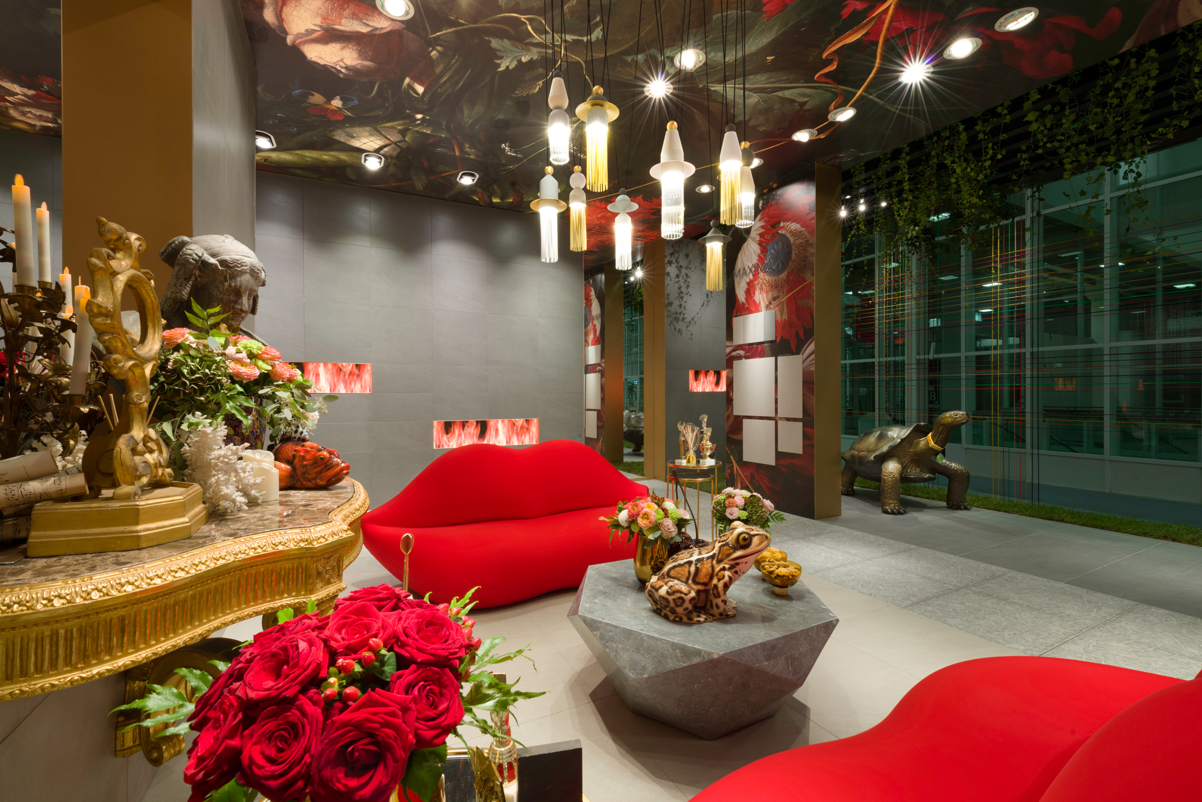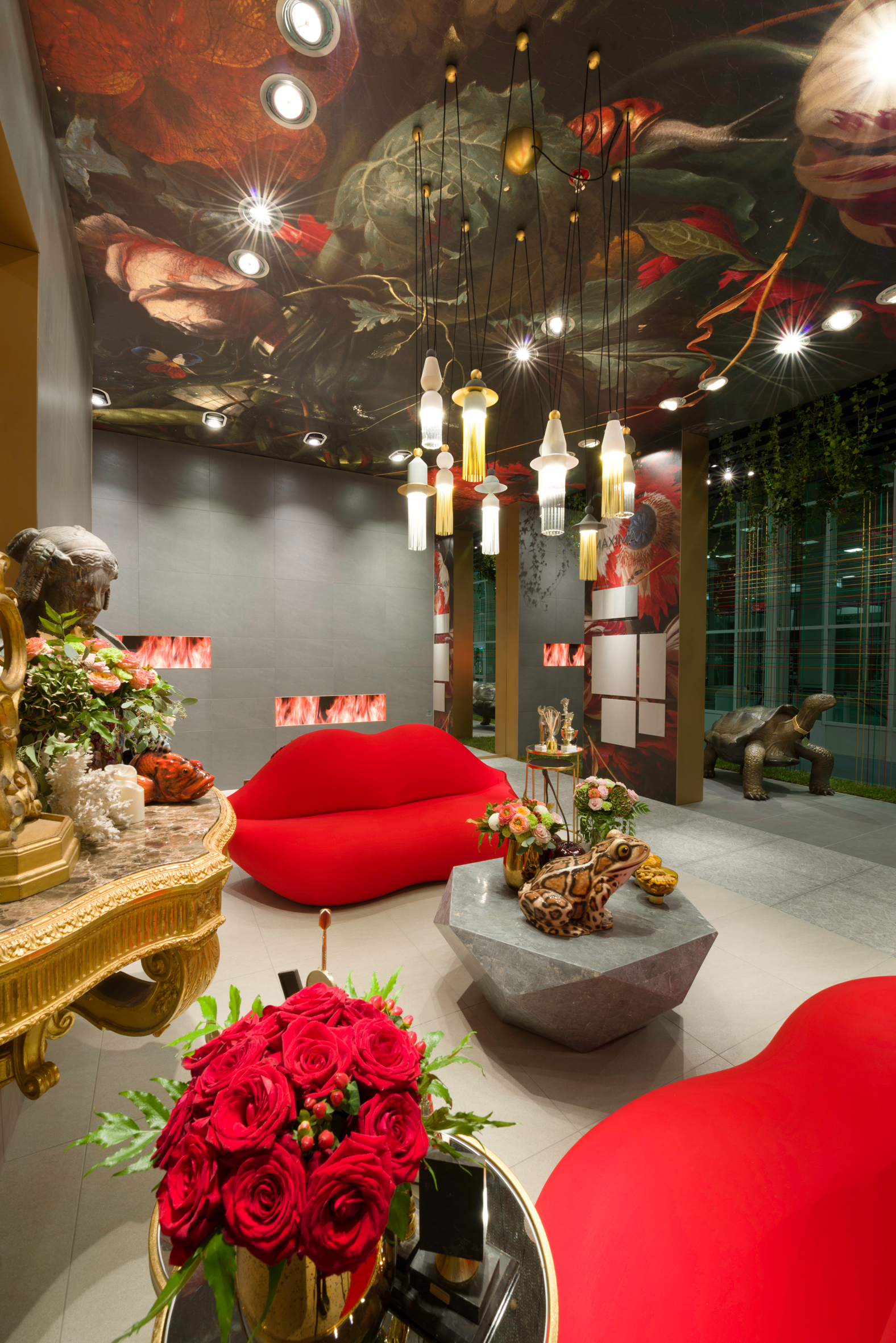 The Côté Passion side exudes extravagance and the sense of the exquisite with its flamboyant, pop and baroque decor at the same time. A real temple of the contemporary Horror Vacui with its mouth-shaped sofas that plunge into carnal passion, its virtual fireplaces and its great Galapagos turtle in homage to the novel « A rebours » by Joris Karl Huysmans, a cult book of decadentism.
