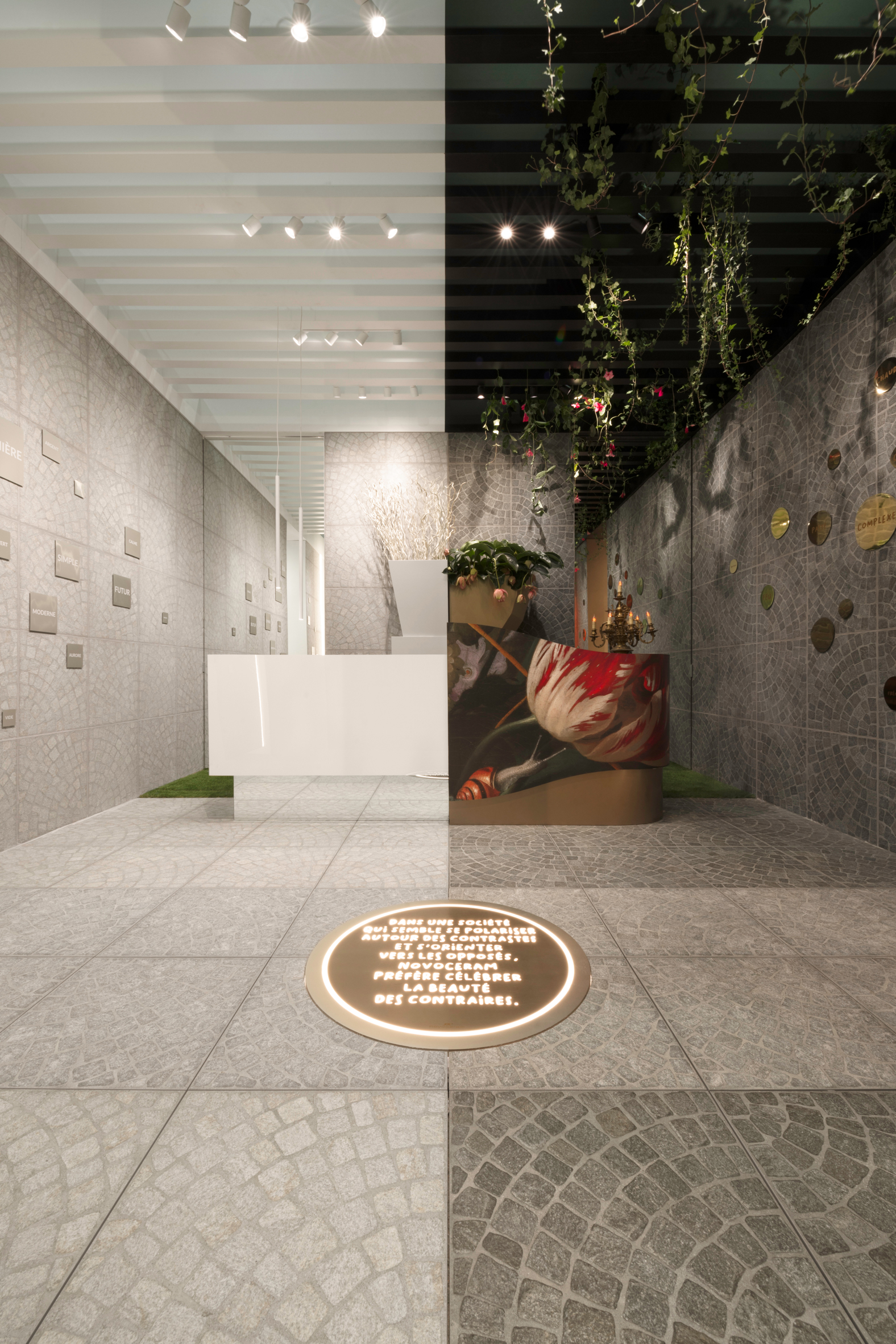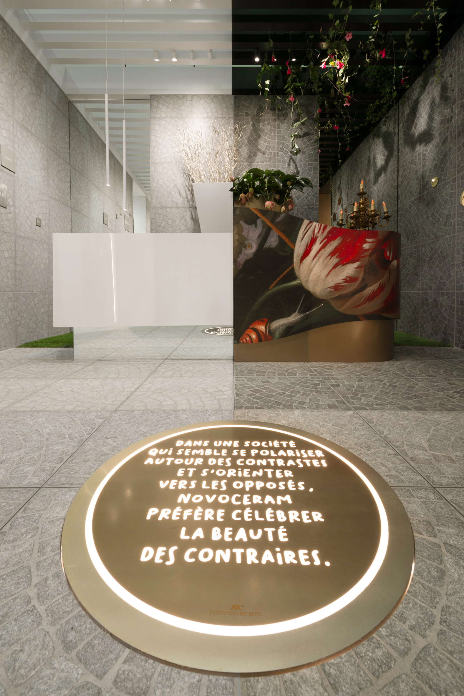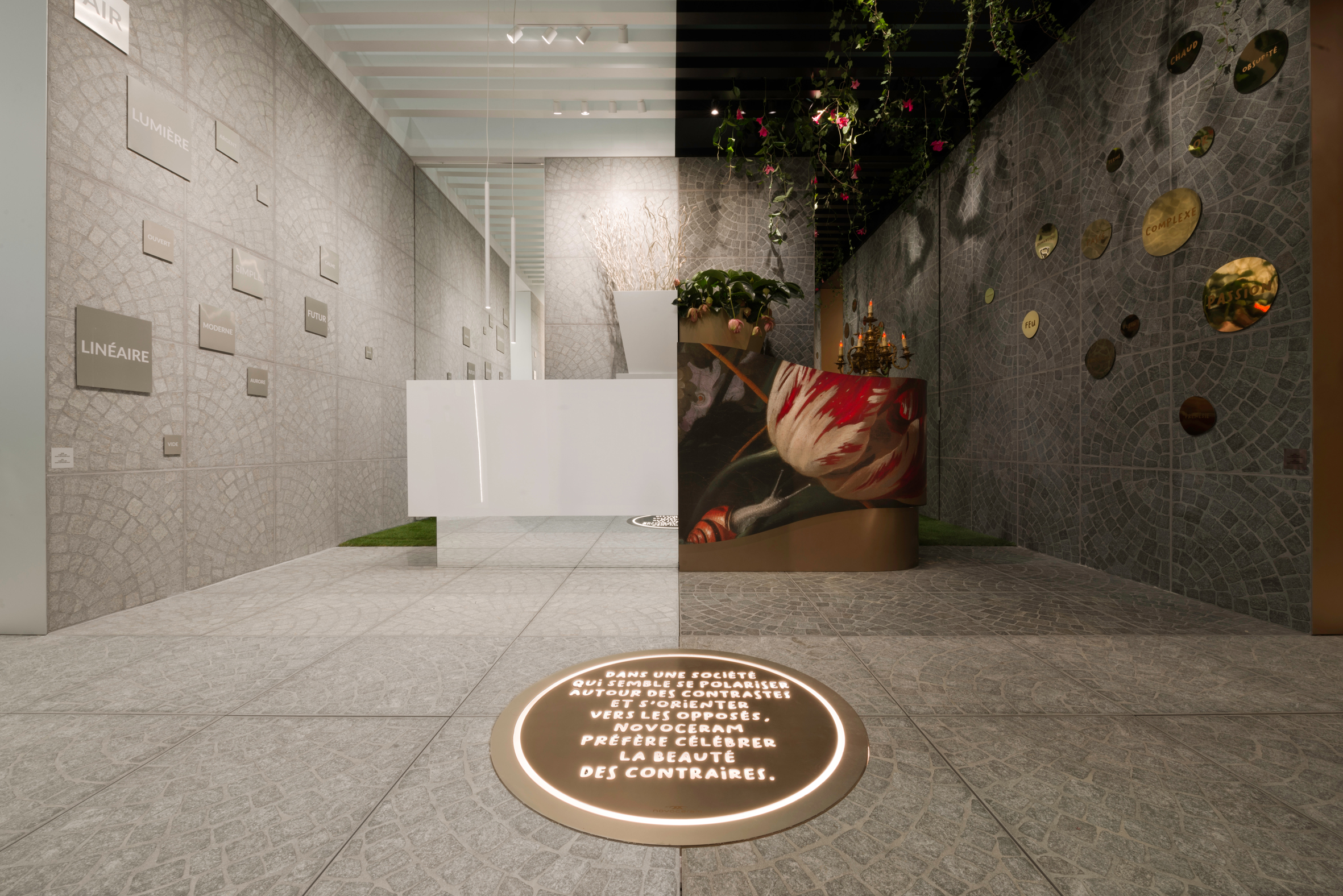 Novoceram, a French manufacturer of ceramic since 1863, presents its «Antipodes» booth: a hymn to the beauty of contrary at this occasion of the Cersaie 2018, the International Exhibition of Ceramic Tile and Bathroom Furnishings, in Bologna, Italy.