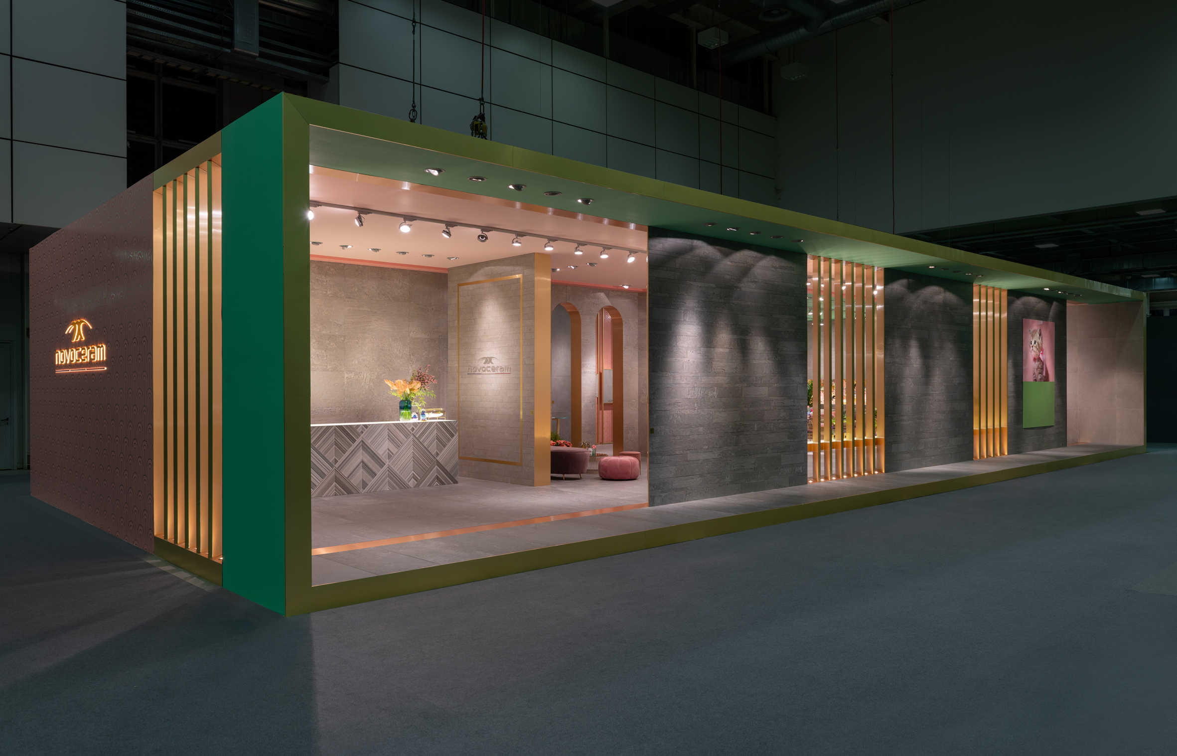 Novoceram, French manufacturer of ceramic since 1863, presents its «Pastel» booth: a showcase full of softness and character to unveil their new collections at the Cersaie 2019, the International Exhibition of Ceramic Tile and Bathroom Furnishings in Bologna, Italy.