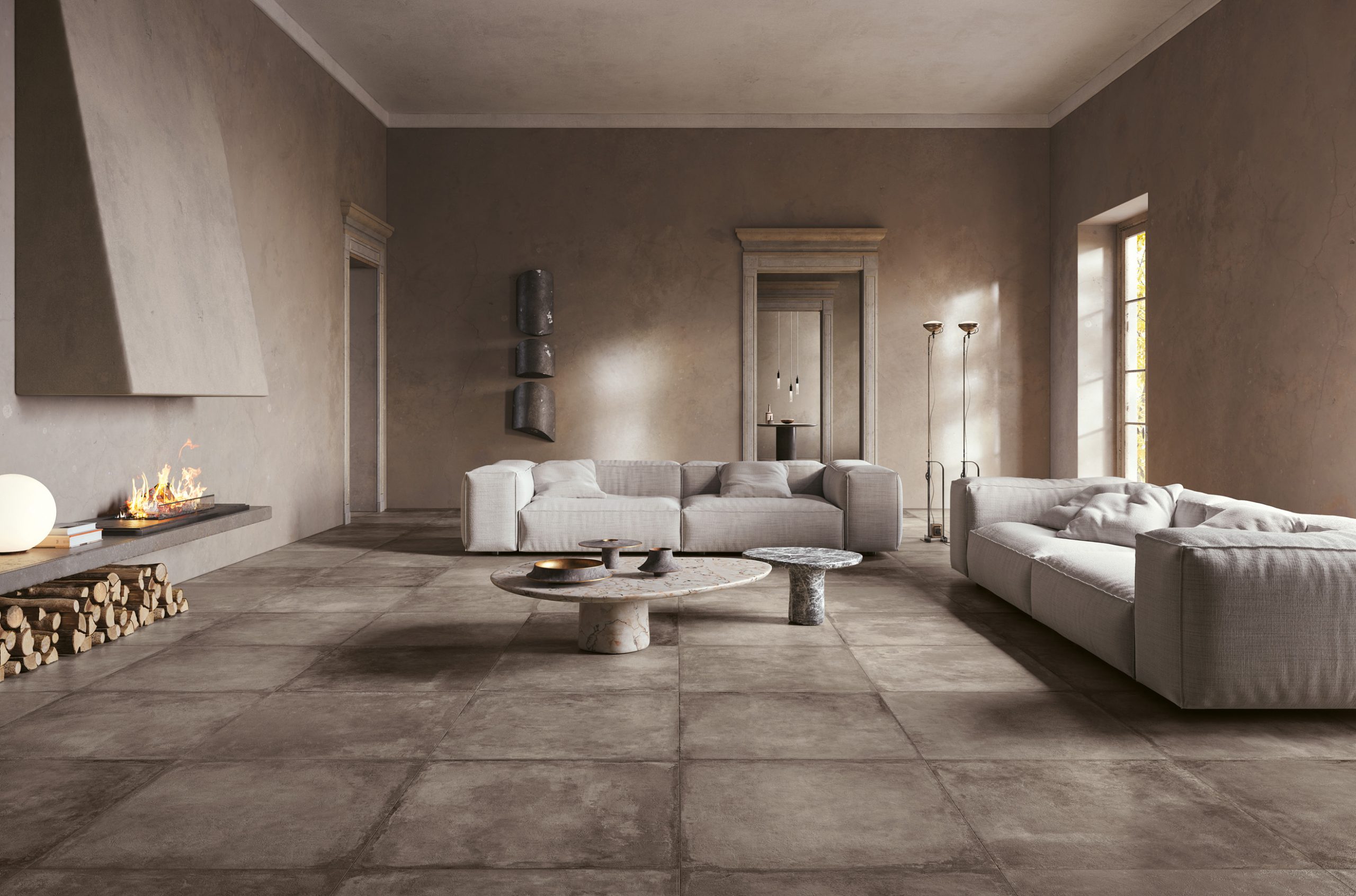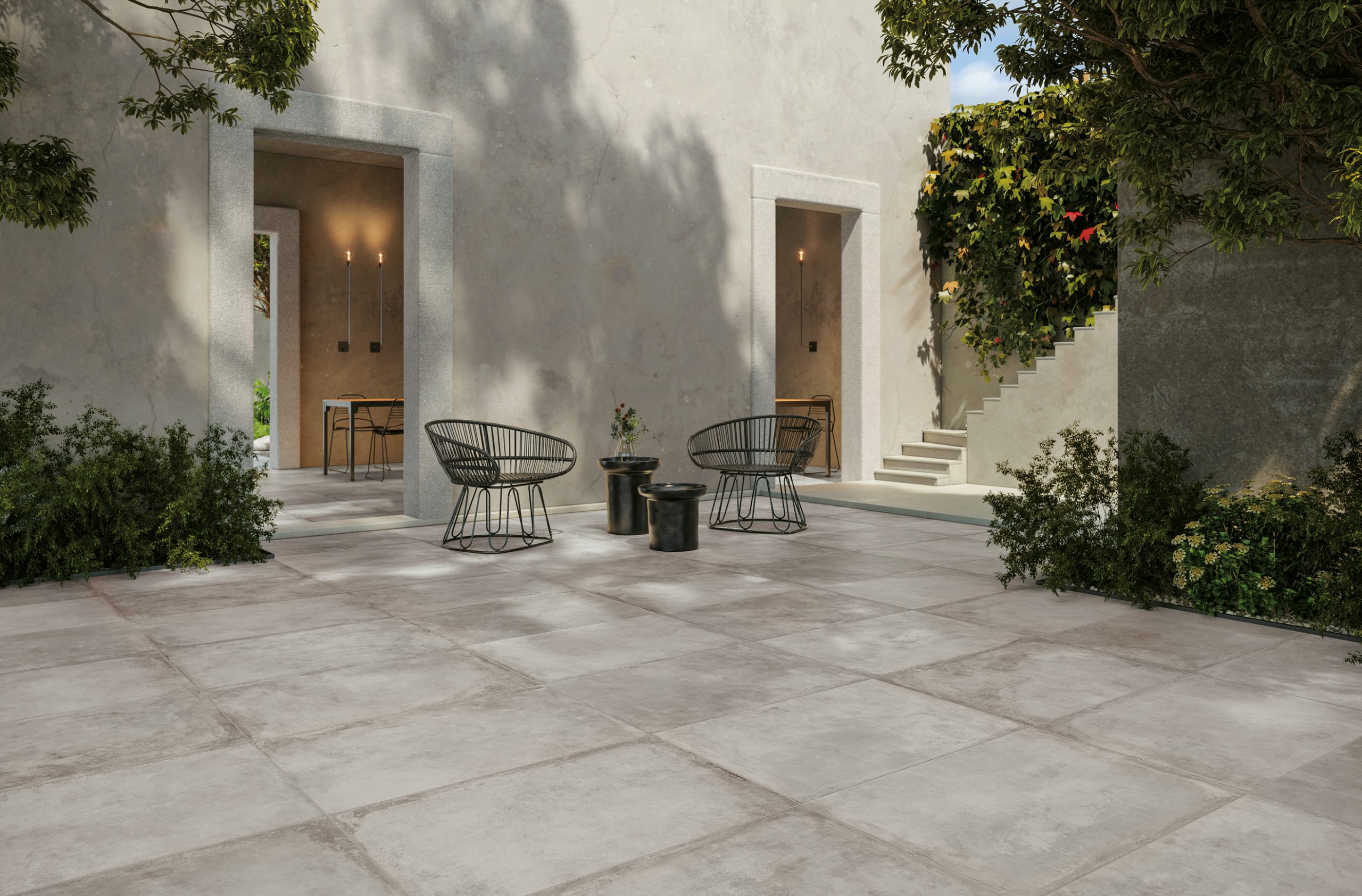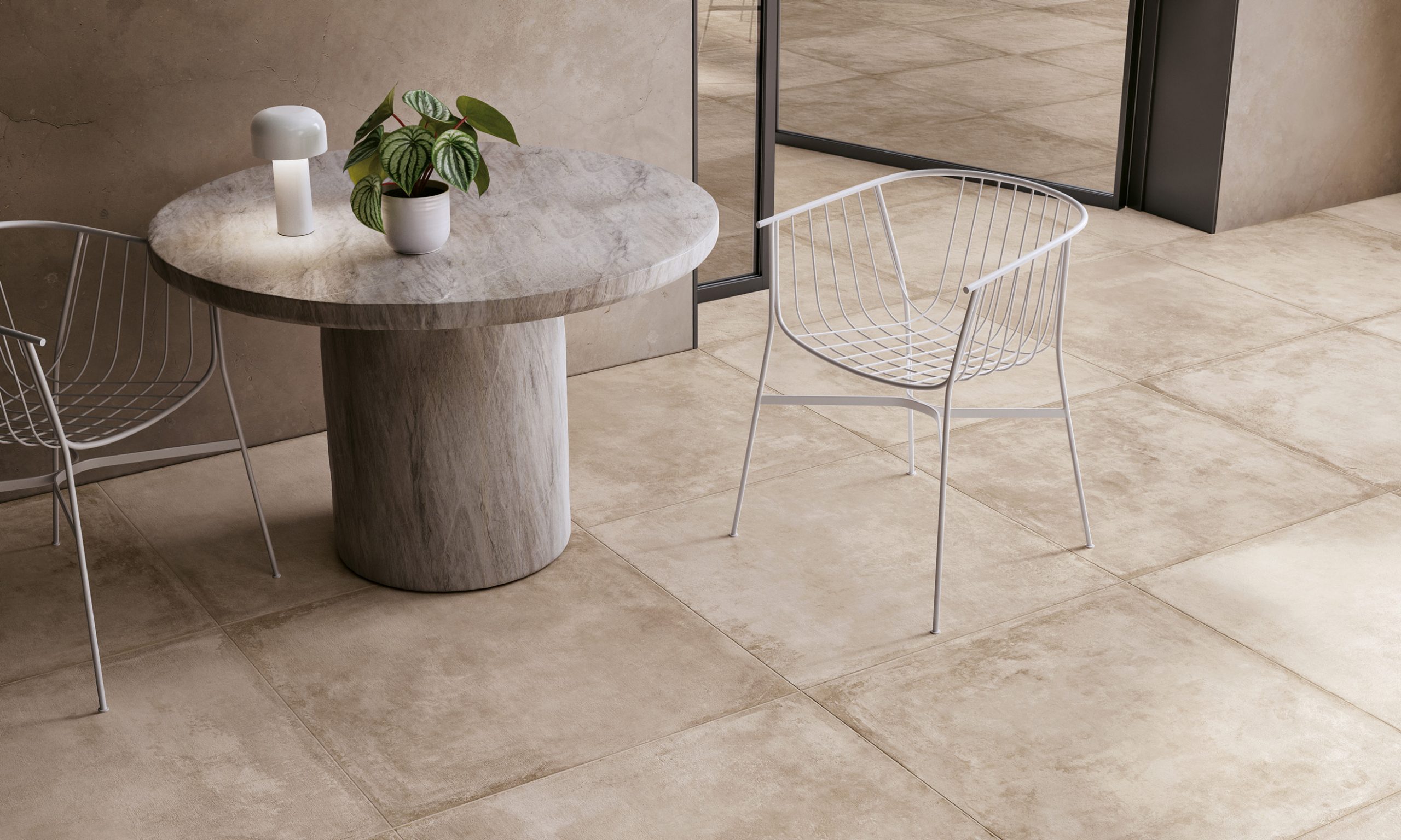 The Château collection counts various formats such as, among others, the 60×90 cm and the 80×80 cm in a 9-mm thickness. These two are also available in the Outdoor Plus range which is characterised by a 2-cm thickness, ideal for outdoor use.