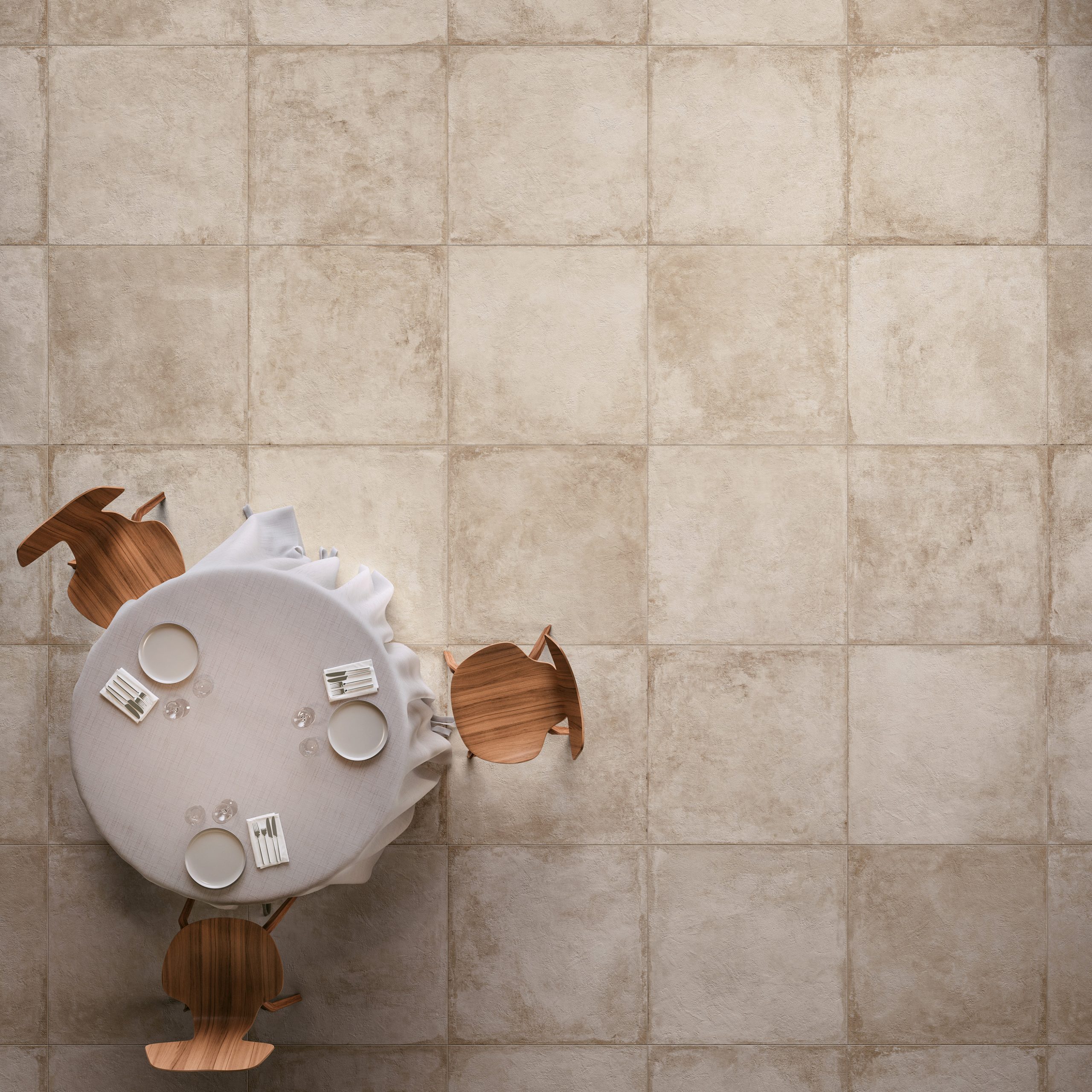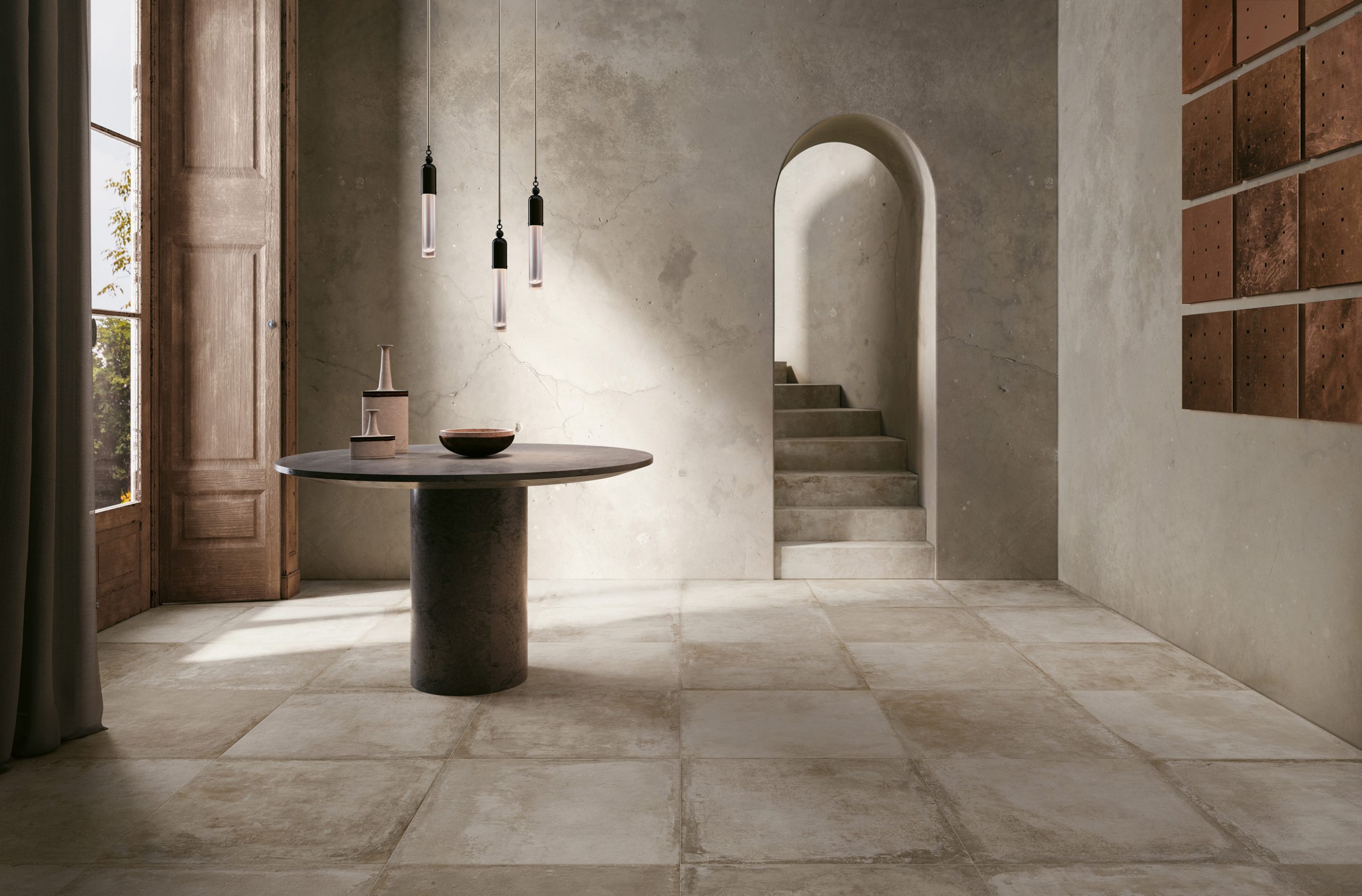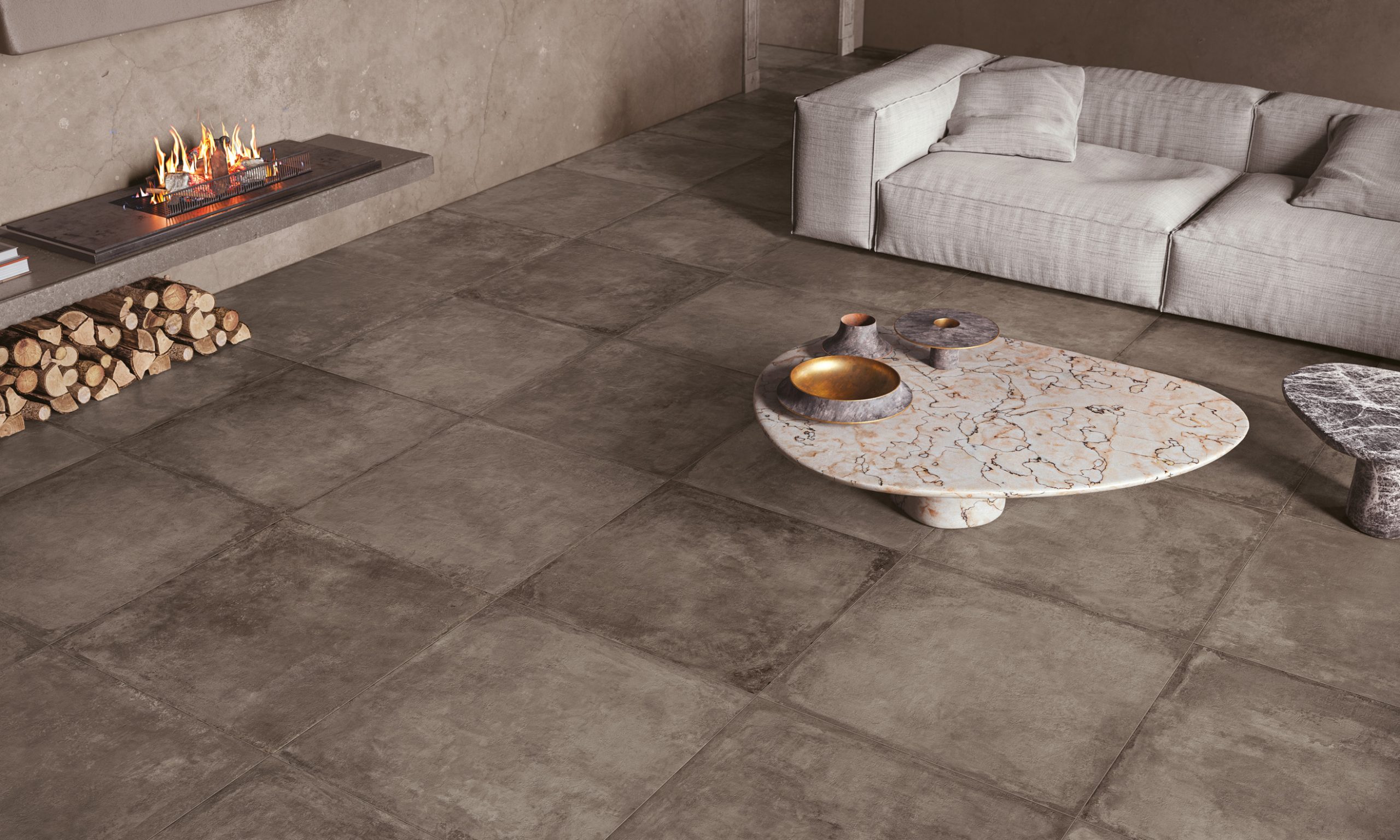 The Château collection counts various formats such as, among others, the 60×90 cm and the 80×80 cm in a 9-mm thickness. These two are also available in the Outdoor Plus range which is characterised by a 2-cm thickness, ideal for outdoor use.