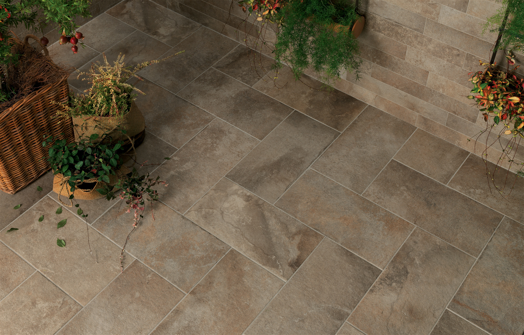Novoceram, French ceramics manufacturer since 1863, presents a complete collection for exterior flooring in colored in body porcelain stoneware reproducing the stone floor of the courtyard of an ancient church in the north of Italy.