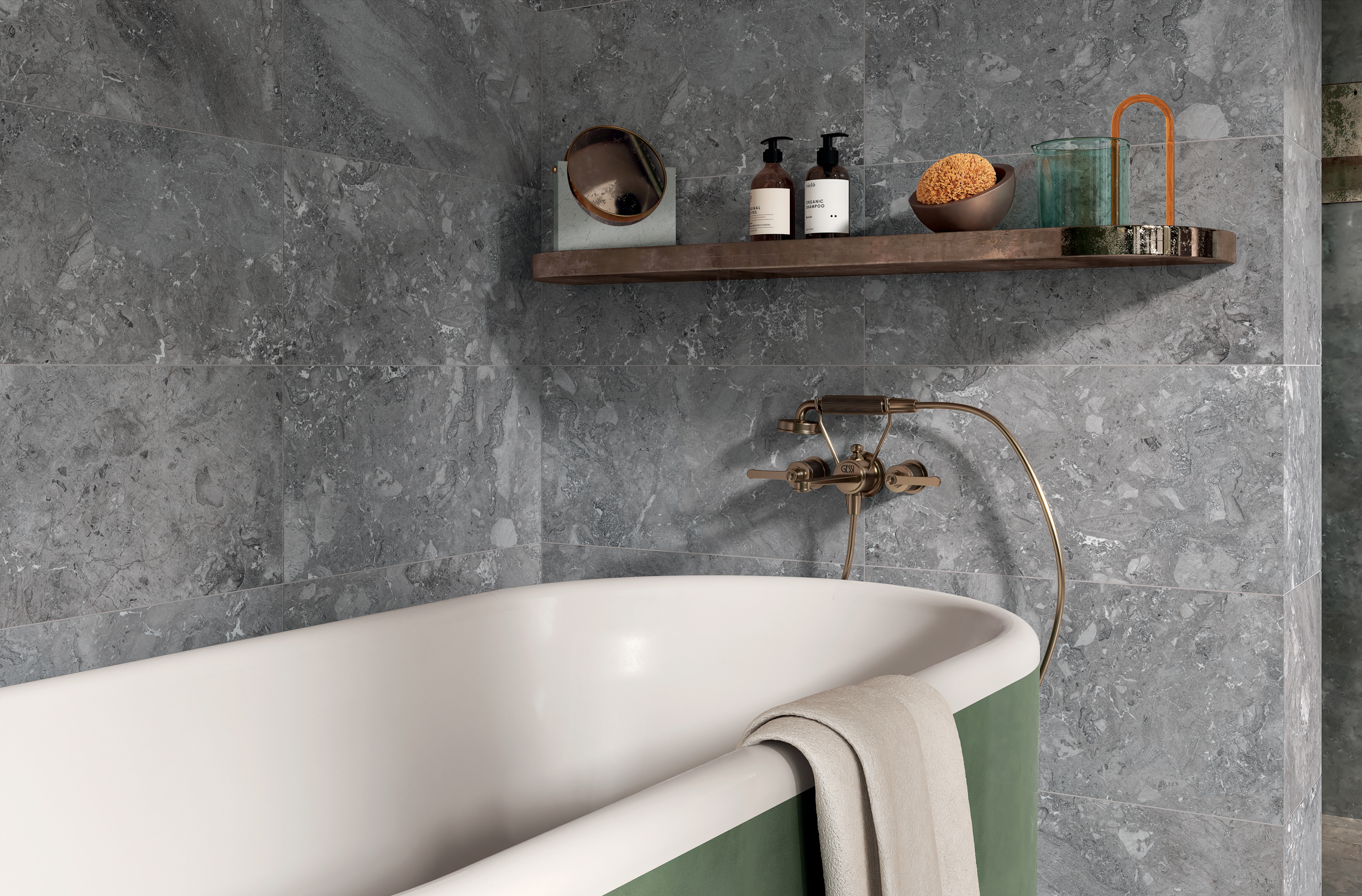 Also completing the proposal are the 10×60 strips and the 5×5 mosaic, particularly suitable as decorative solutions for bathtubs, showers and kitchen counter tops.