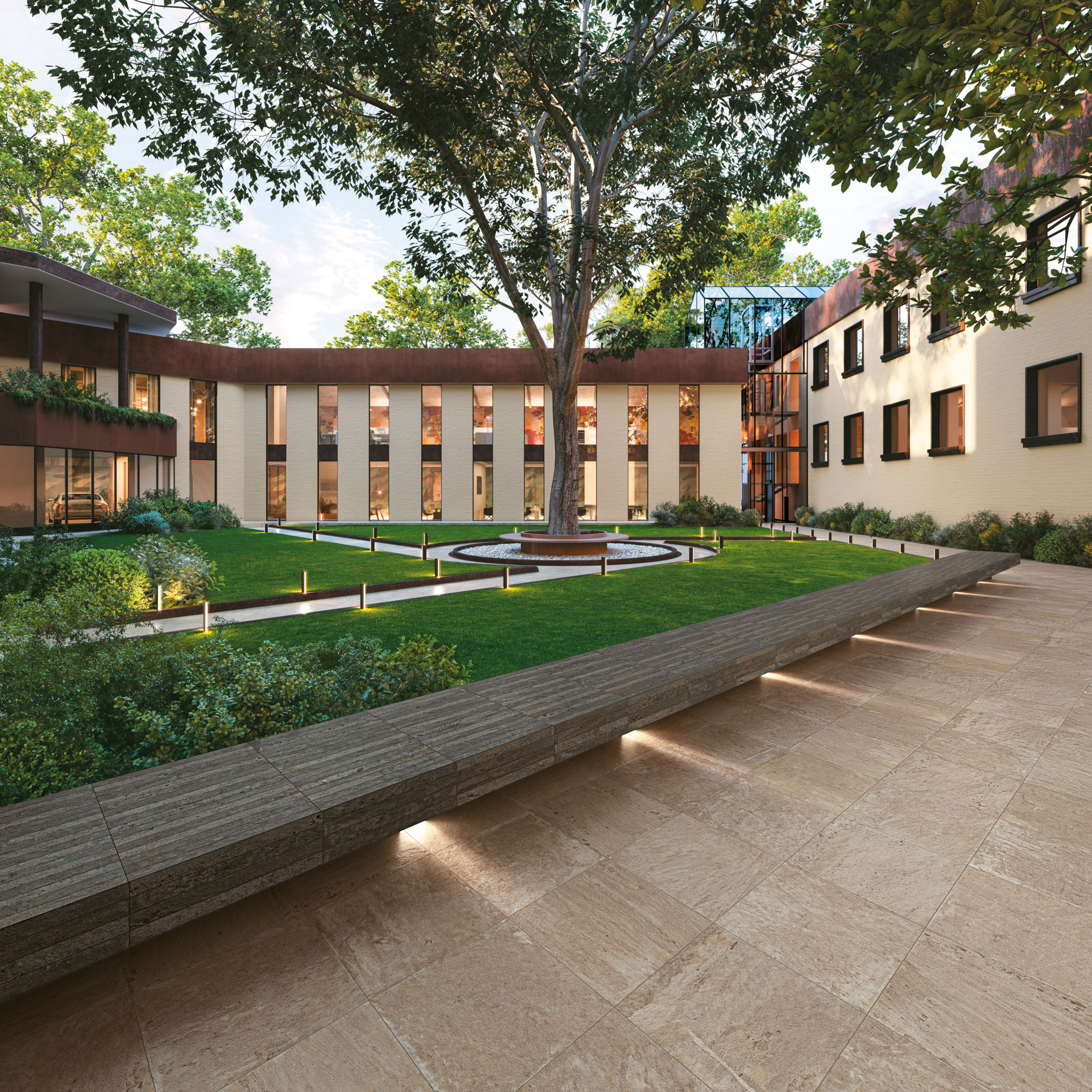 Inspired by the Lauze stone, Losa faithfully reproduces the veins and tones of this natural stone. The collection offers a wide range of indoor and outdoor tiles in many formats from 5×60 cm to 60×120 cm. The various formats also include modular tiles that are adapted to an Opus laying pattern as well as a 60×120 cm format, the latter being 2-cm thick and belonging to the Outdoor Plus range.