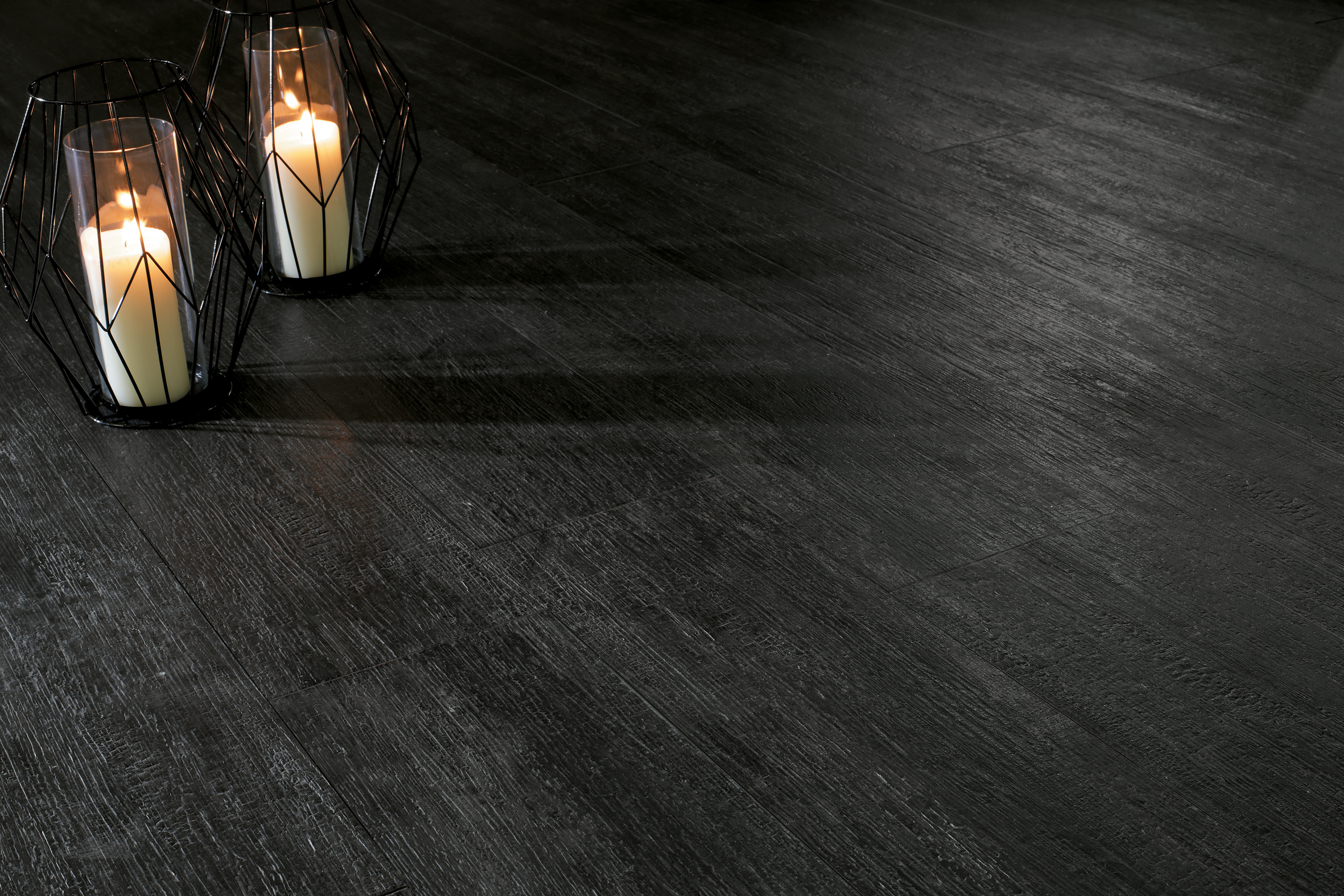 Napami Fumé reproduces burnt-look wooden planks in intense black tones. Napami Fumé is a floor combining elegance and originality, thus ideal for both domestic and commercial settings.