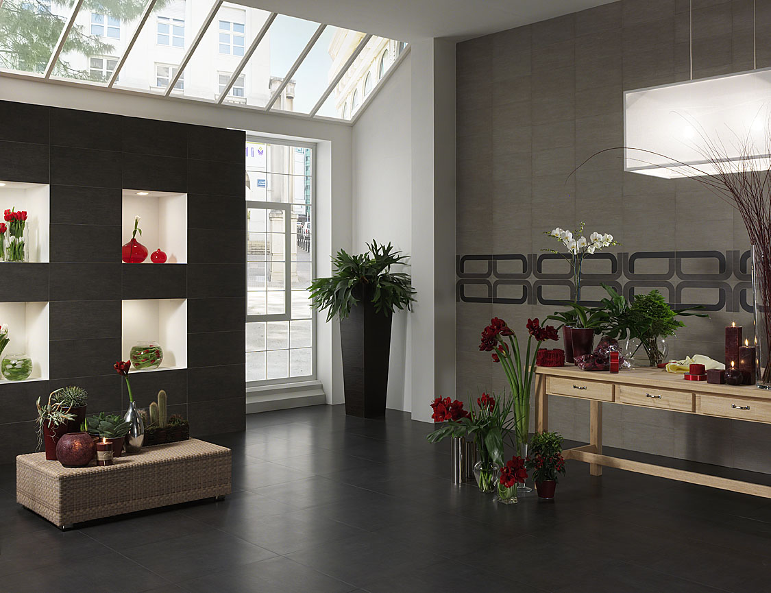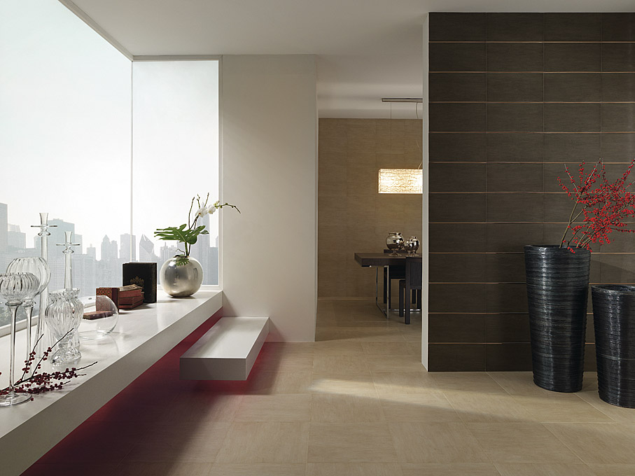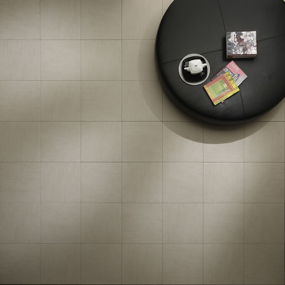 Available in three sizes (45x45cm, 60x60cm, 30x60cm), it is also declined in the rectified version and in six different colors: Clarté (ivory), Douceur (beige), Intimité (brown), Pureté (light grey), Sobriété (dark gray) and Elégance (black).