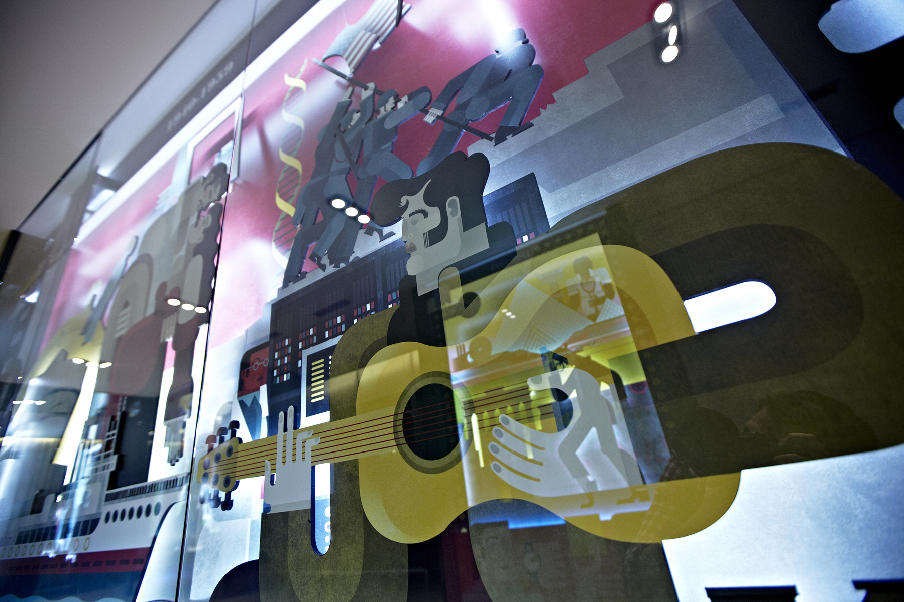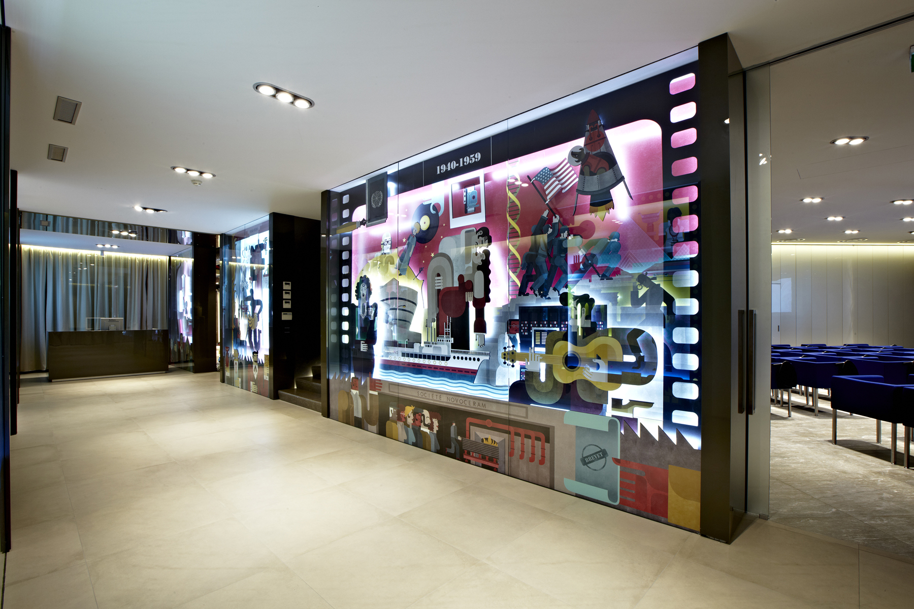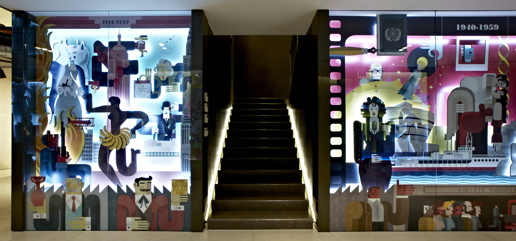 The history of 150 years has inspired the Catalan artist Maria Corte who has brilliantly summarised them in a three-dimensional fresco welcoming visitors to explore Novoceram universe.