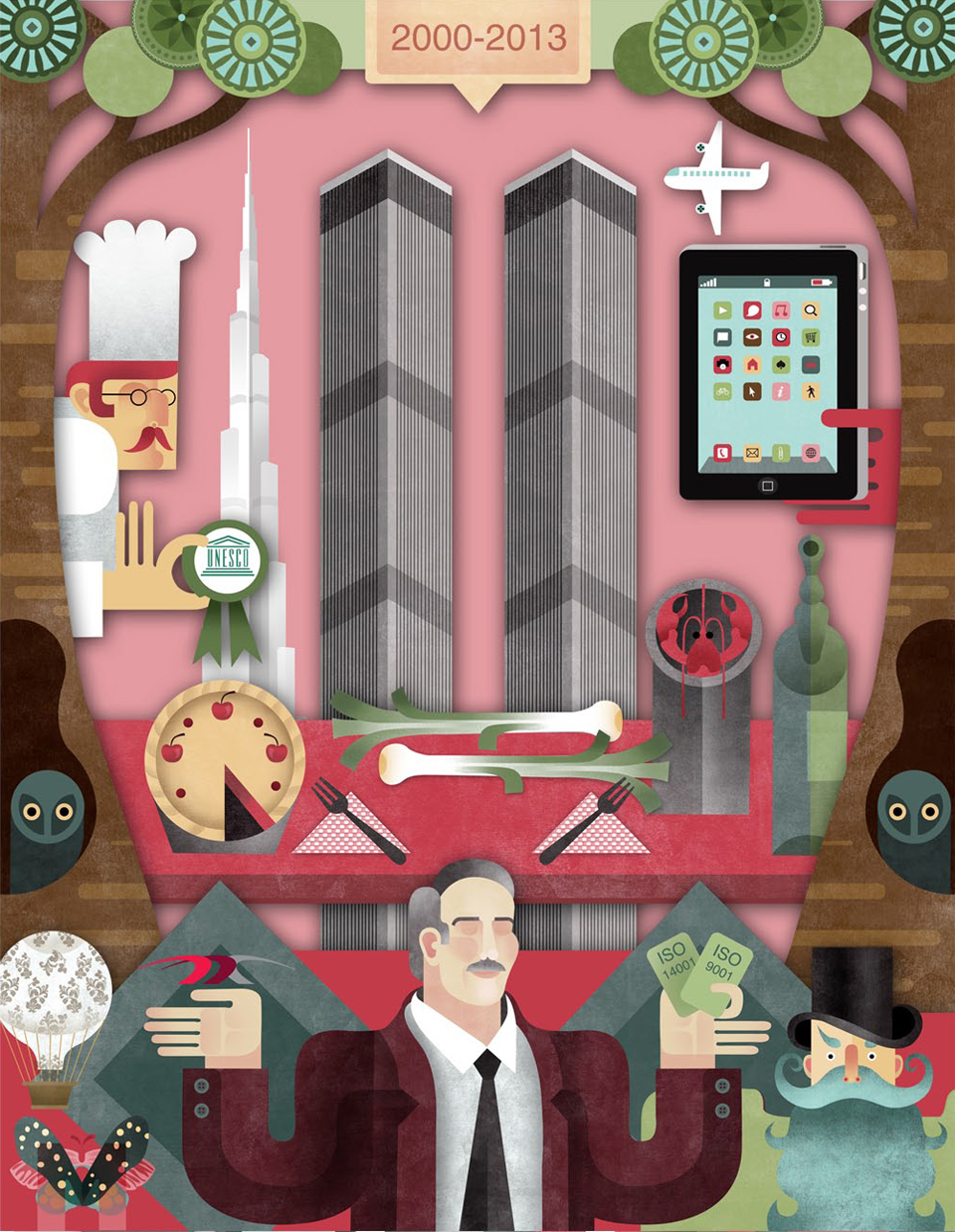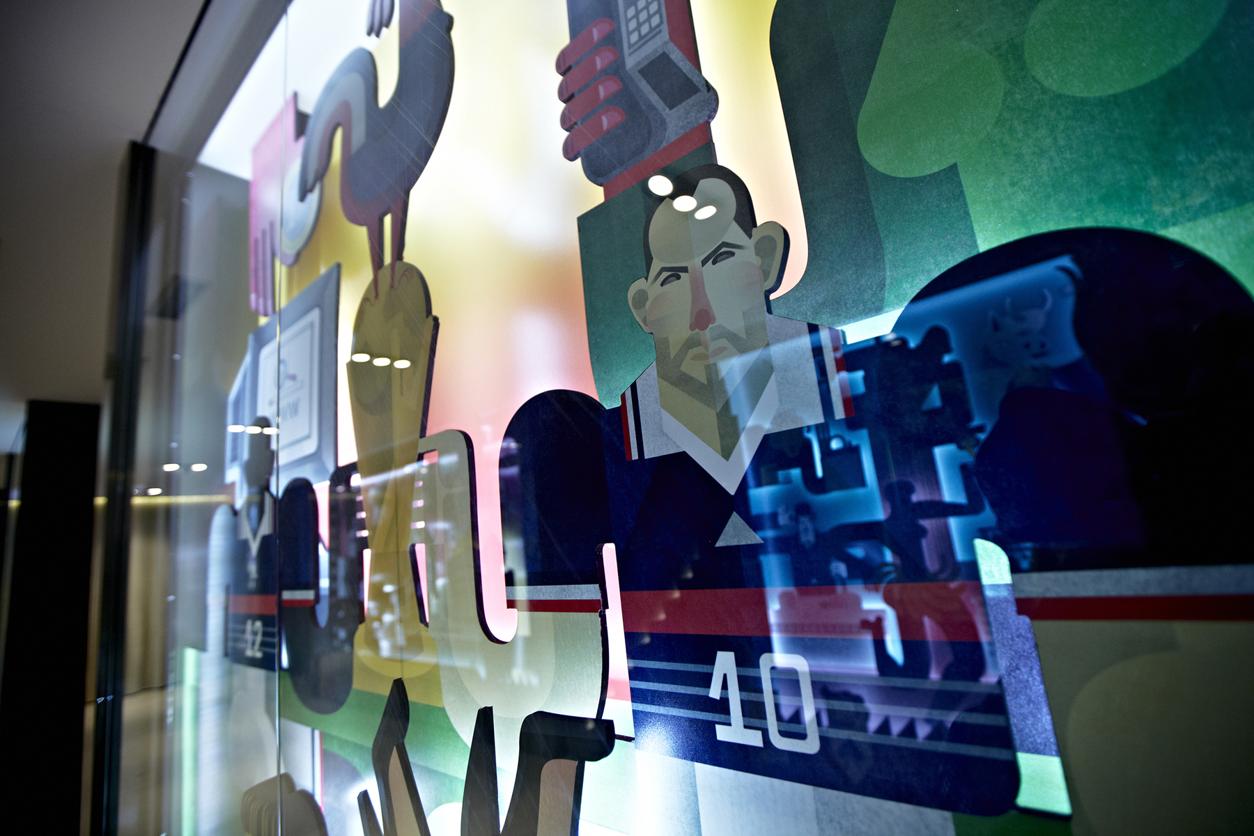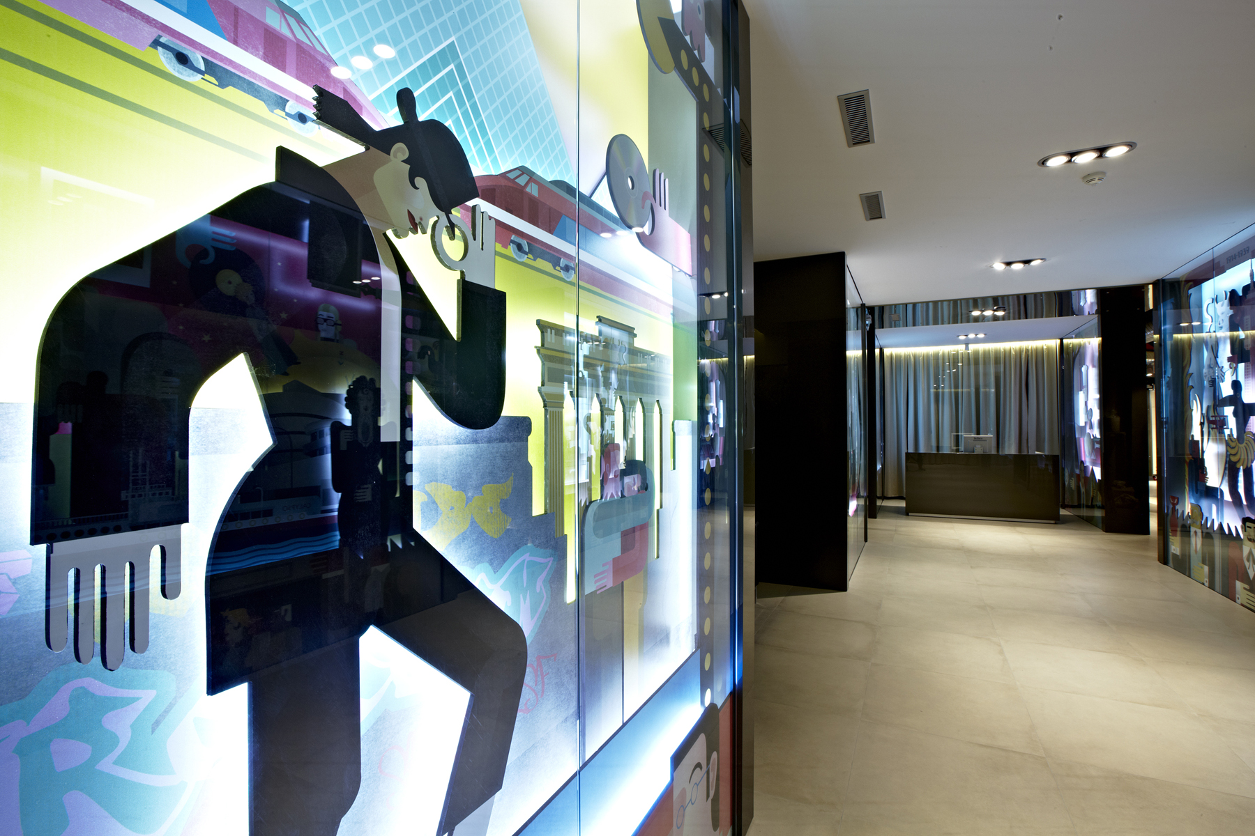The history of 150 years has inspired the Catalan artist Maria Corte who has brilliantly summarised them in a three-dimensional fresco welcoming visitors to explore Novoceram universe.
