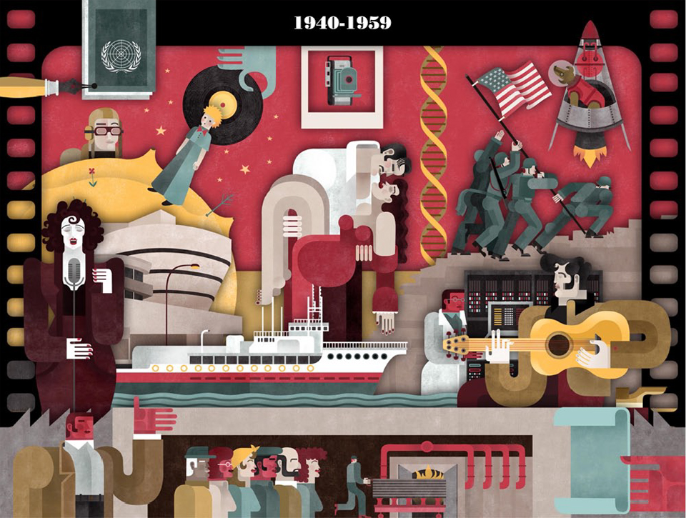 Maria Corte Maidagan is a Spanish illustrator born in 1983. Her work is characterised by geometrical shapes with which she reinterprets classical models of the human body. Her creations cover a wide spectrum of sectors: book covers, posters, press, advertising, animation and drawings for children.