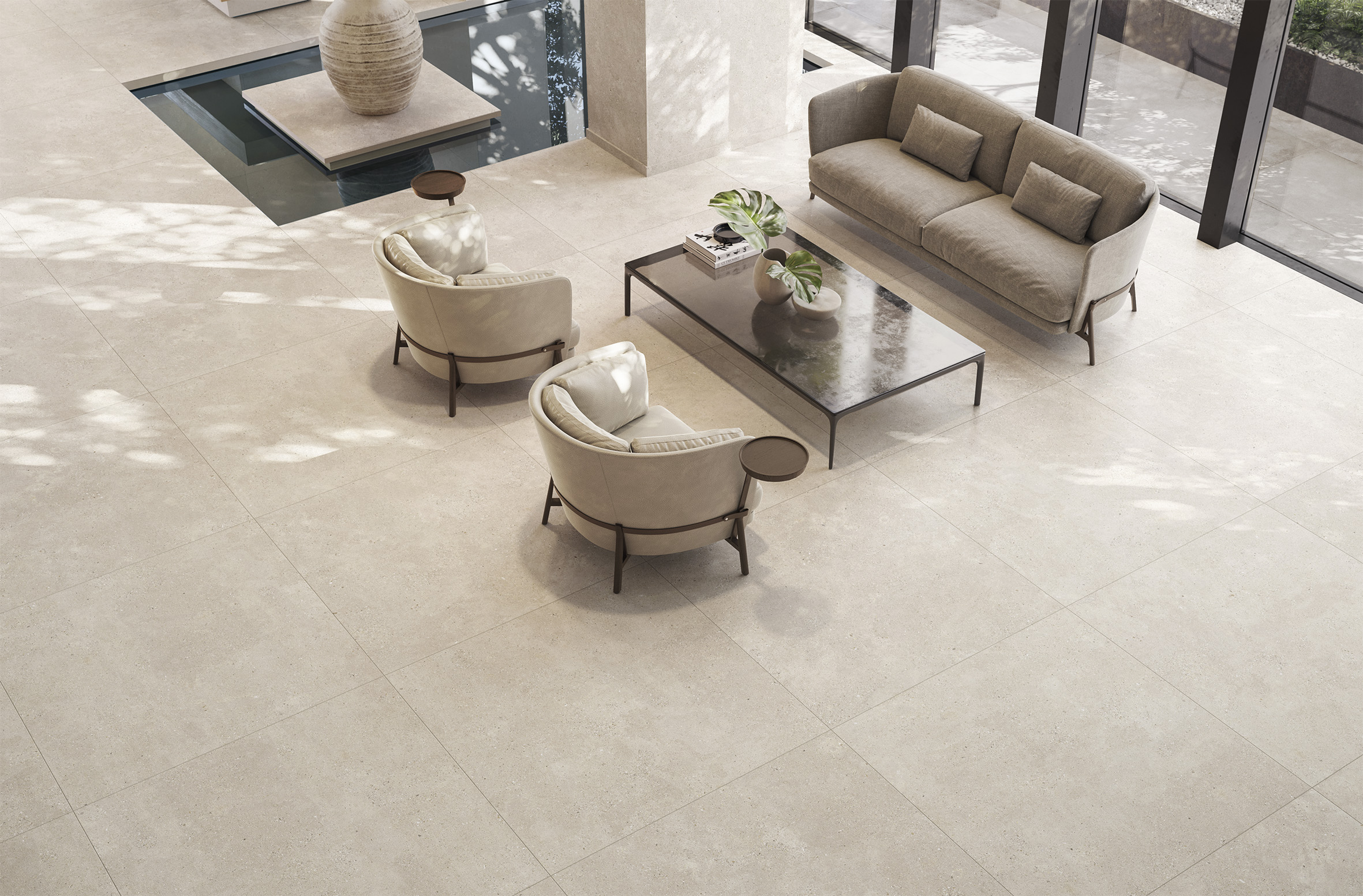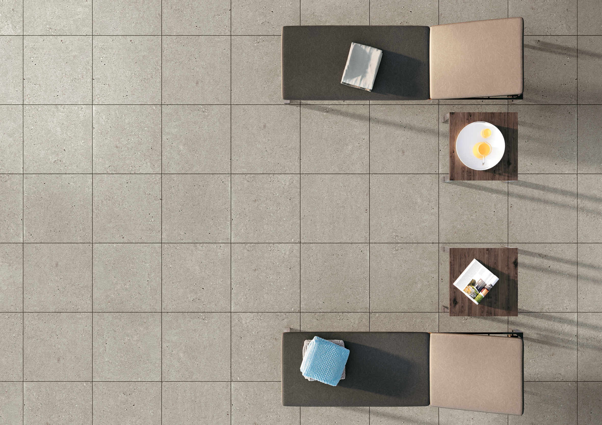 The Outdoor plus range, specially designed for an outdoor laying, includes Otto in the rectified 60×60-cm dimensions and in a 20-mm thickness. The novelty of the collection is the 9-mm thickness of tiles that can be laid indoors, in the following tile sizes: 60×120 cm, 120×120 cm, 80×80 cm.