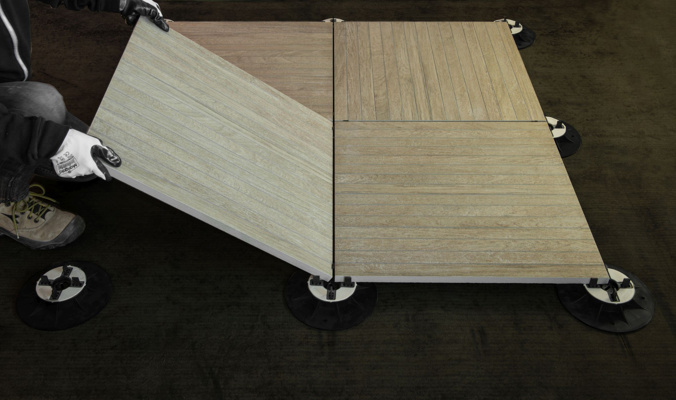 Novoceram Outdoor Plus is a floating floor system in colored in body porcelain tile 20mm thick, that Novoceram, French ceramics manufacturer since 1863, designed for exterior floor coverings.