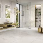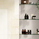 Novoceram, French ceramic producer since 1863, unveils a collection of white body tiles for interior walls that offers an interplay of shapes combining the appearance of marble and golden lines.