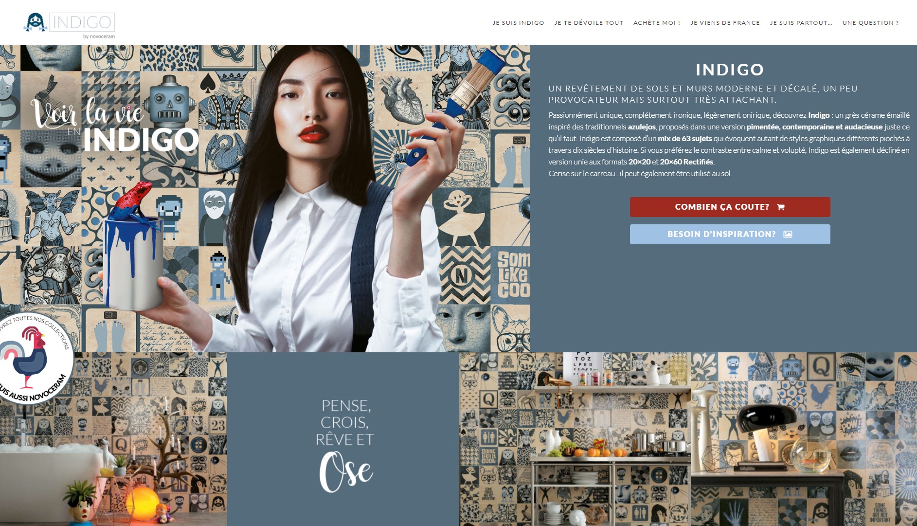To build a universe specific to the collection, Novoceram has launched a dedicated site https://www.indigoagogo.com on which, the tone is deliberately ironic and strewn with notes of humor. This communication strategy is also used in the texts, the illustrations but also in the answers given by e-mails or in the comments, as for example with the use of the fun videos.