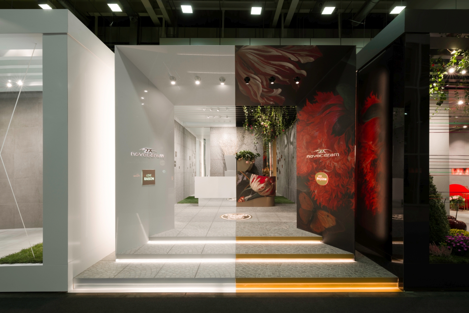 The booth is divided into two spaces where everything is opposed in an impacting face-to-face: a « Côté Passion » Side versus a « Côté Reason » Side. Two contrasting halves, two contrasting styles, two different perspectives on the world of ceramics and design that complement and coexist in an unexpected harmony..