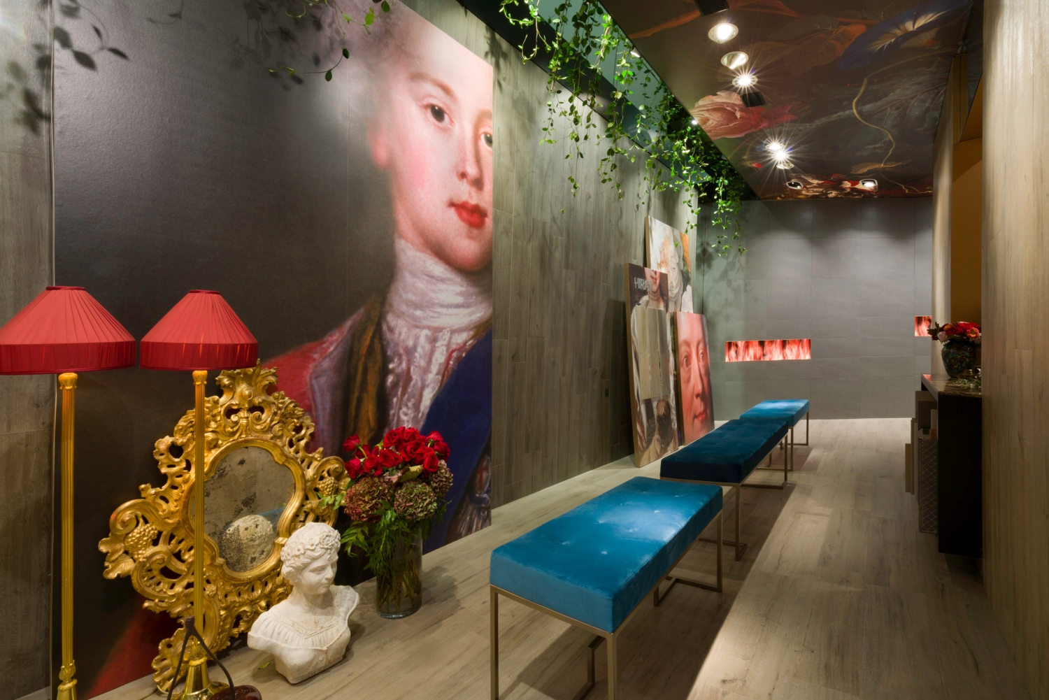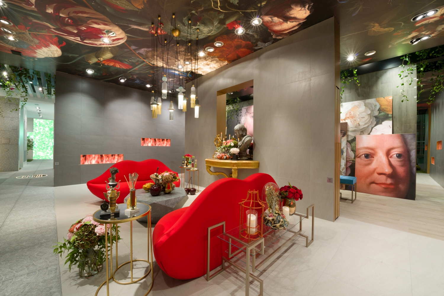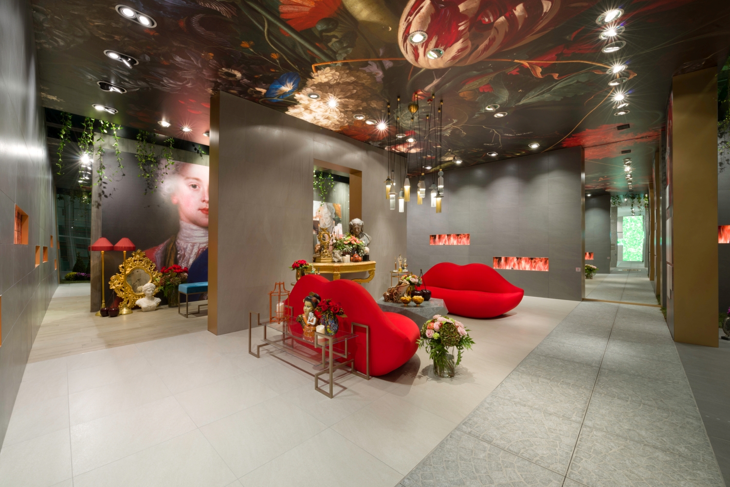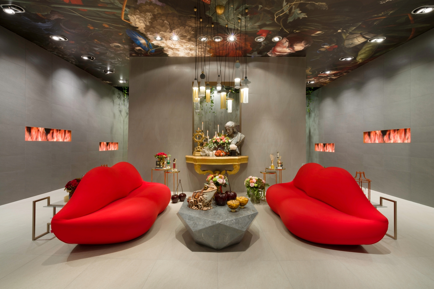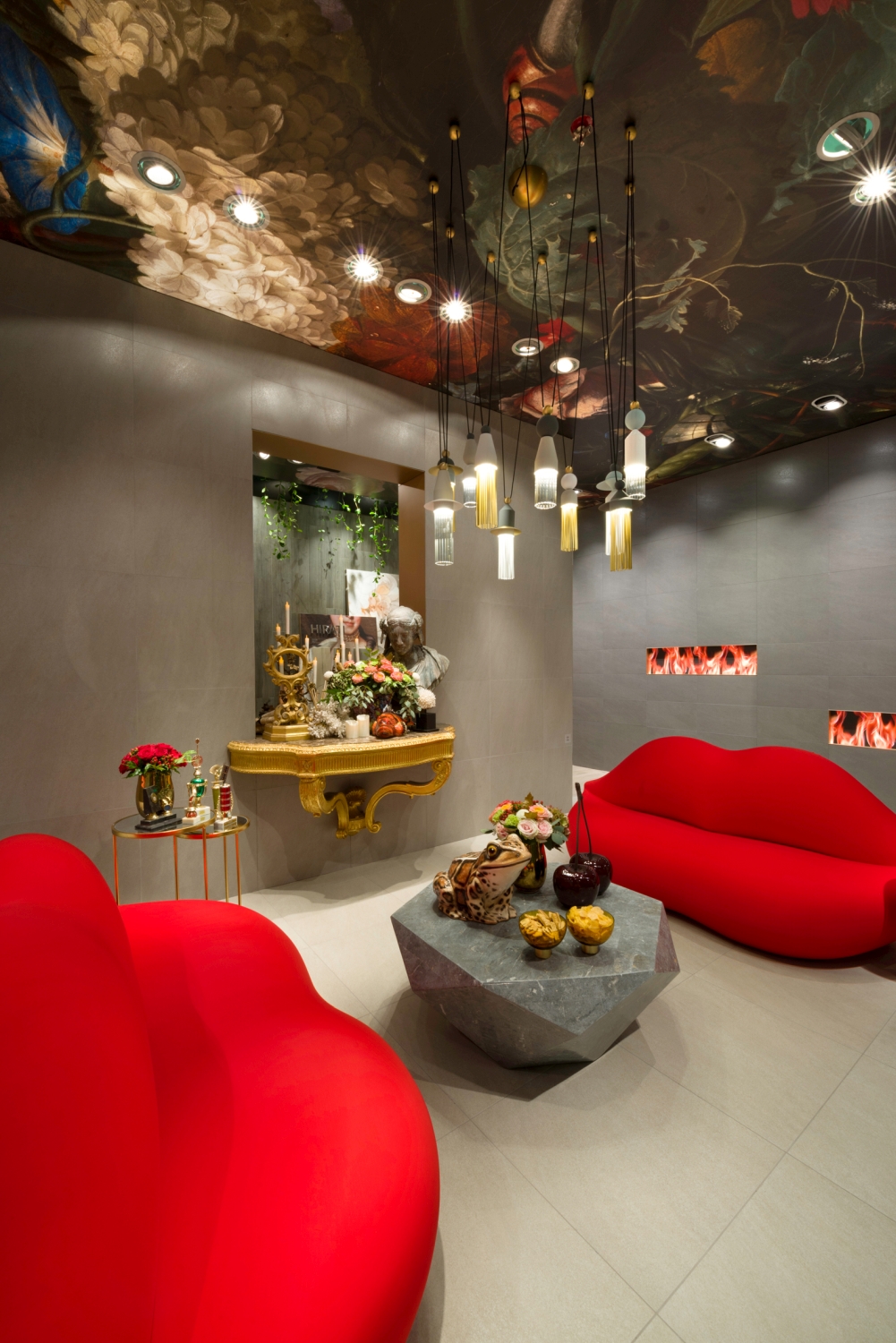 The Côté Passion side exudes extravagance and the sense of the exquisite with its flamboyant, pop and baroque decor at the same time. A real temple of the contemporary Horror Vacui with its mouth-shaped sofas that plunge into carnal passion, its virtual fireplaces and its great Galapagos turtle in homage to the novel « A rebours » by Joris Karl Huysmans, a cult book of decadentism.