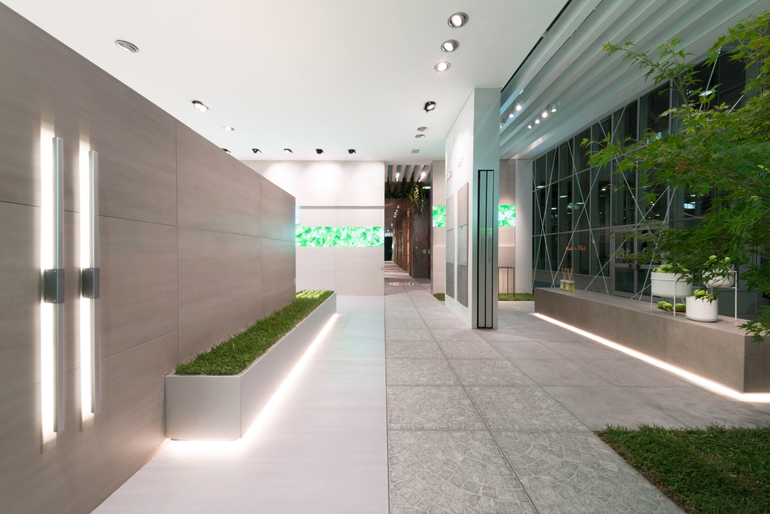 Antipodes, this is an opportunity to present the novelties 2019 Novoceram: Dax a graphic design at the format 120×120 cm. Maxima, which offers a wide range of sizes from 30×30 cm to 60×60 cm in smooth and structured version. Hirati the most natural of the ceramic woods. Cubes, an outdoor collection inspired by the Porphyry cubes that adorn Saint Peter’s Square in Rome.
