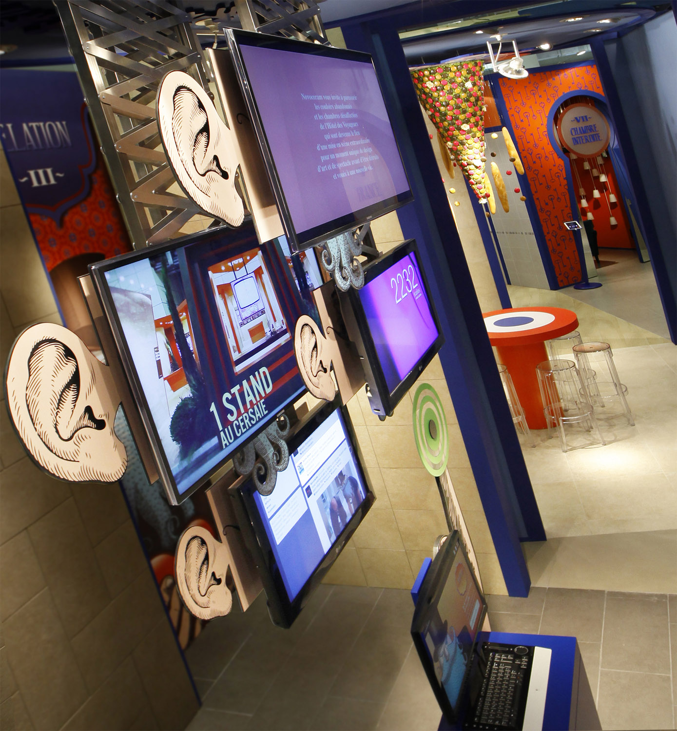 In room No. 3 dedicated to the Relationship and the new series outdoor Orage, Novoceram showed the ability to exchange and listening closely to our customers and end users, symbolized by giant ears attached to video screens. Like last year with The Passion Project, the initiative Barbebleue has seen a notable impact on the social networks that Novoceram participates. The theme of the stand was revealed on the Facebook page and the backstage photos were shared with the fans across the full album.