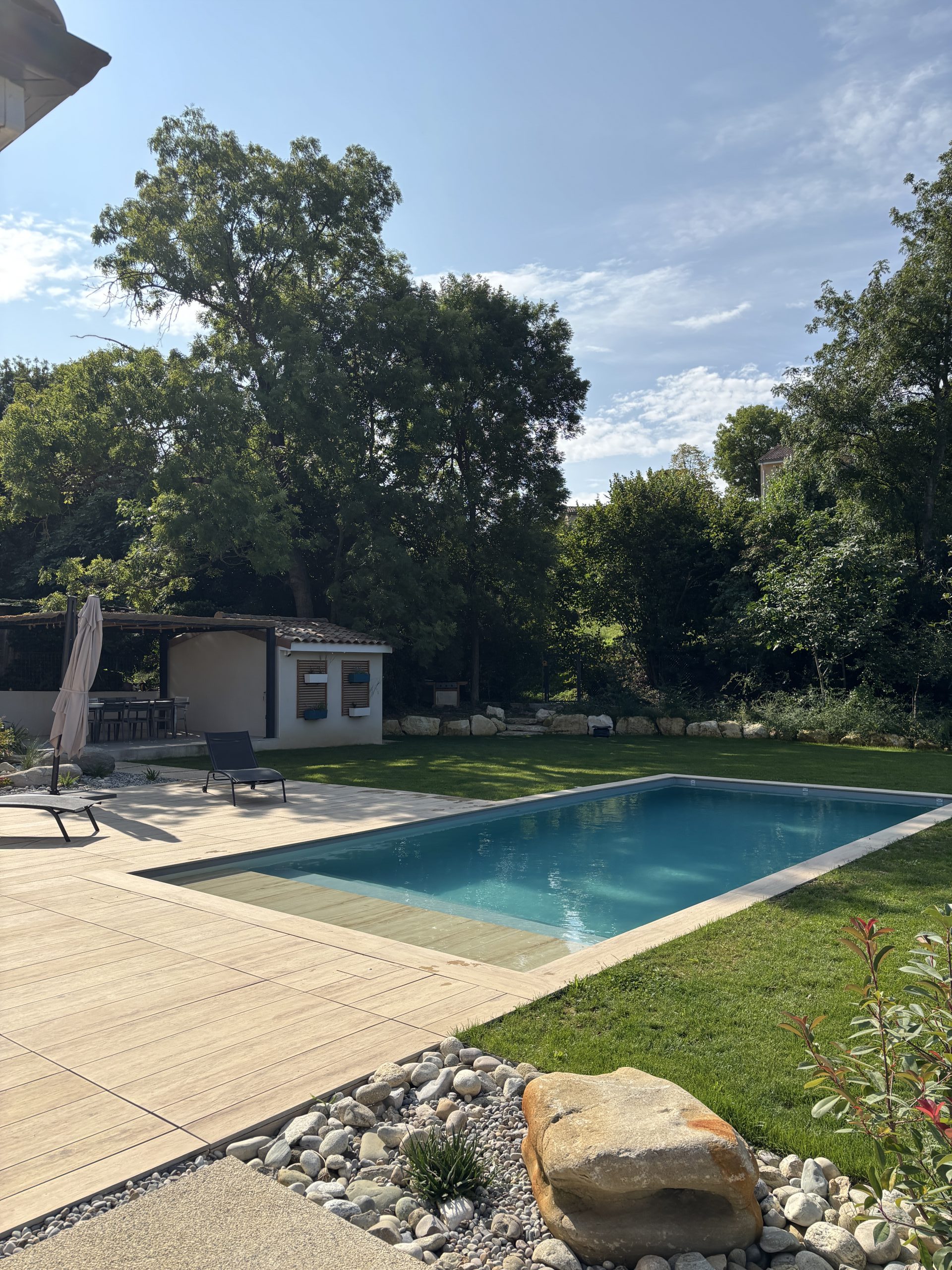 In the Drôme region, Cédric Pierre Paysage completed a comprehensive outdoor landscaping project in 2025, featuring a swimming pool designed as a functional living space ready for use.