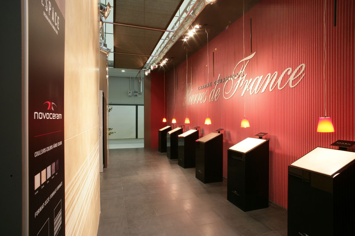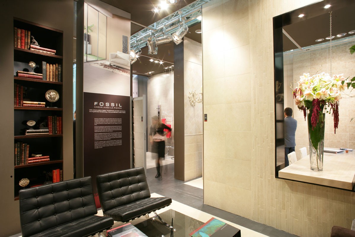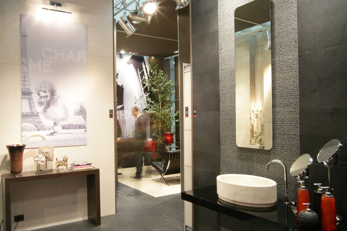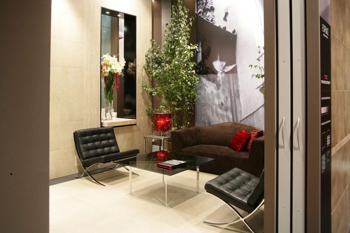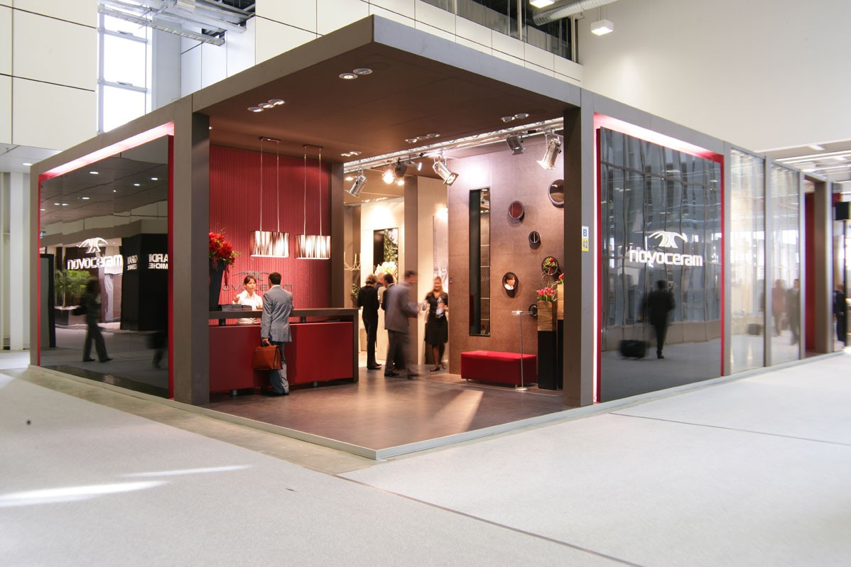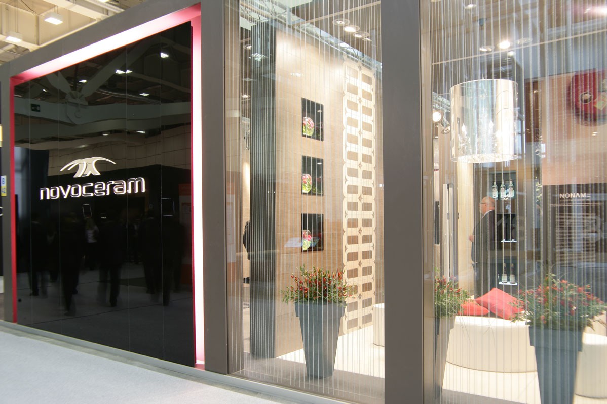 • At Cersaie 2005, Novoceram expresses its full lifestyle philosophy for the first time, opening the doors of its most secret rooms to visitors. Standing out in the palette of shades used are the company colours black and Bordeaux, accompanied by warm wenge. A genuine house, testimonial of the company, welcomes visitors to discover the charme céramique Novoceram.