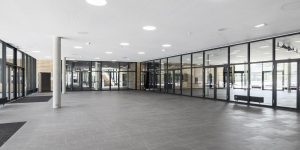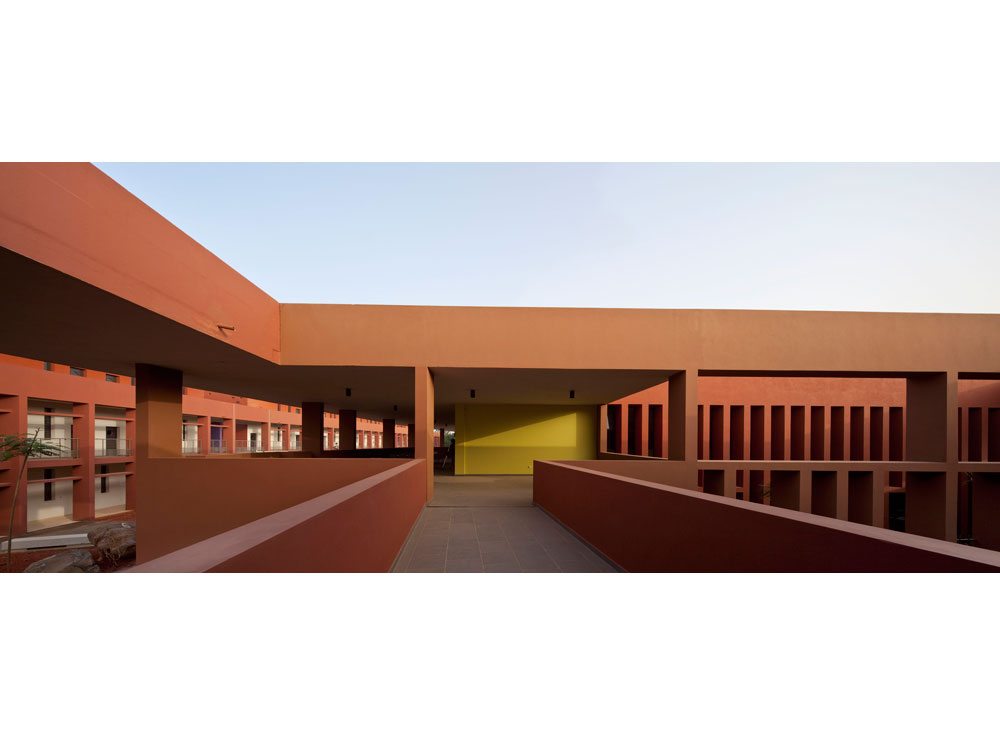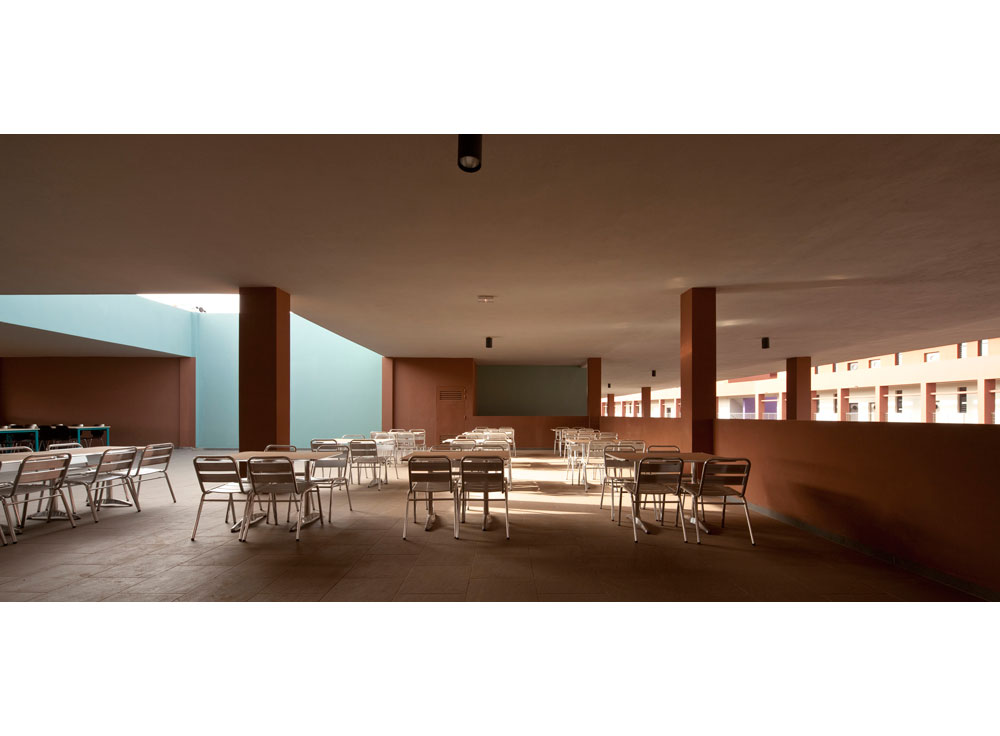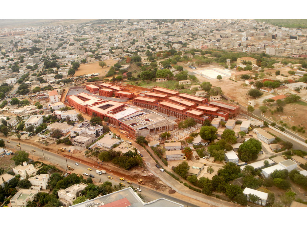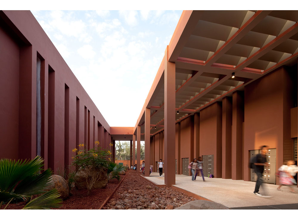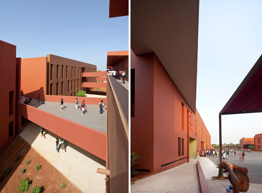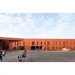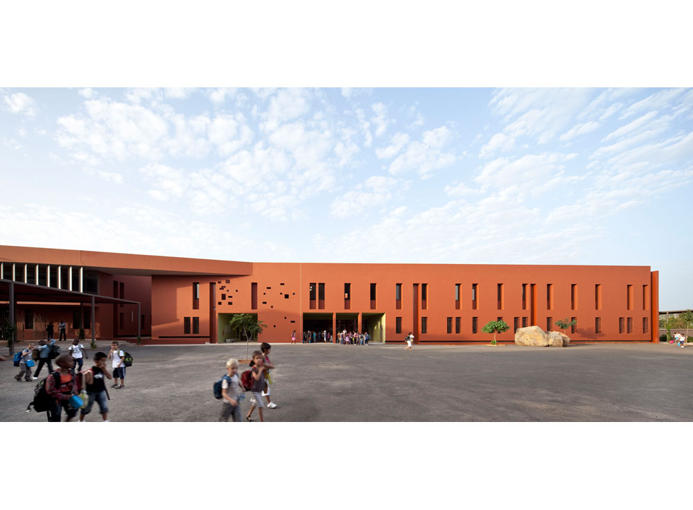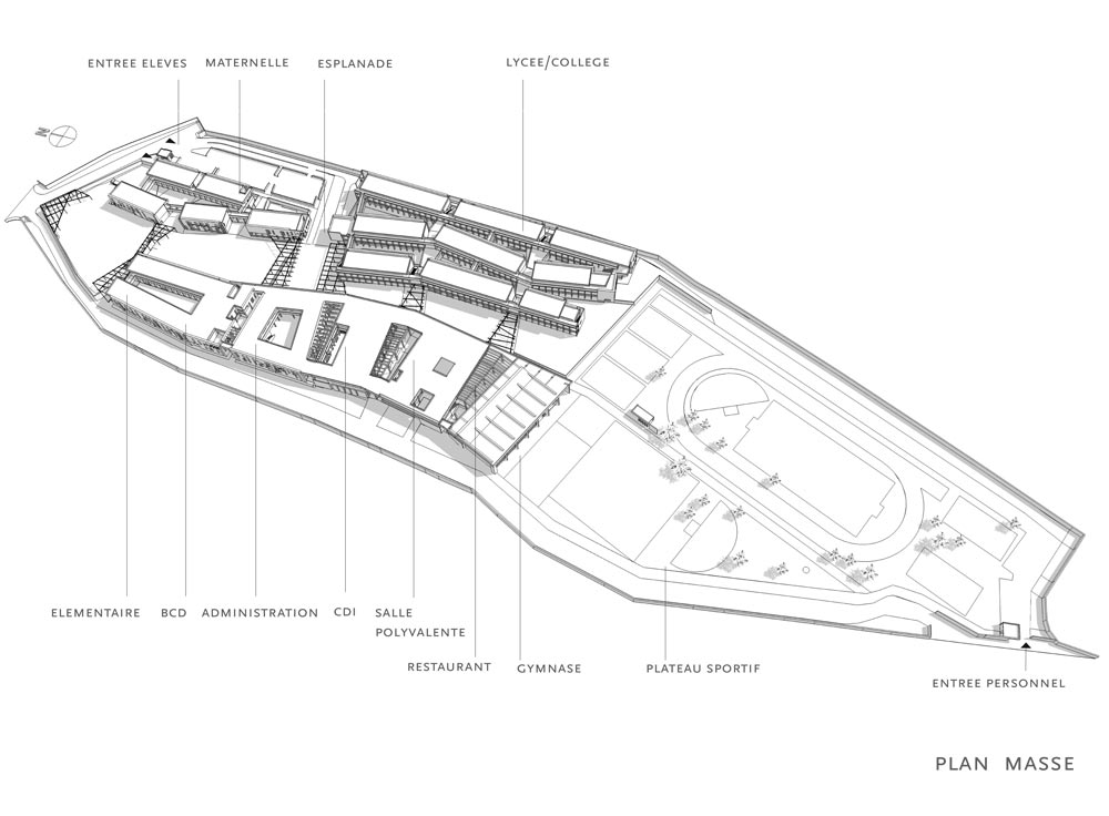 The program includes the construction over an area previously occupied by sport facilities, of a school complex, gathering a kindergarten, an elementary school, a middle school and a high school for a total effective term of 2500 students. Winner of the Grand Prix AFEX 2012 de l’architecture française dans le monde.