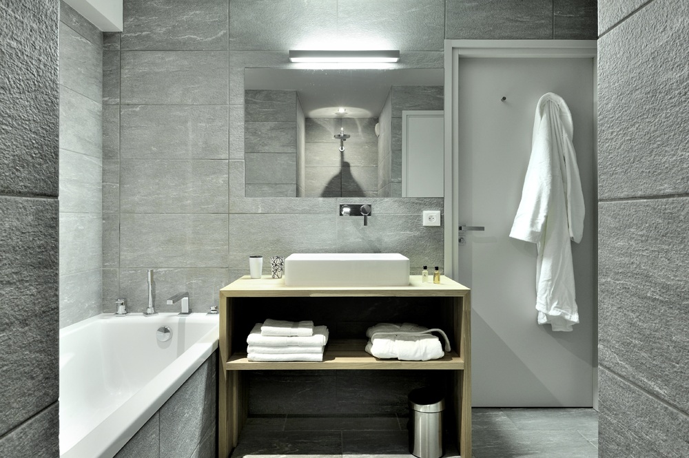In the bathrooms, the Cast collection has found its natural home. With its mineral and timeless aesthetic, it helps to create a soothing atmosphere, while blending perfectly with the other materials.