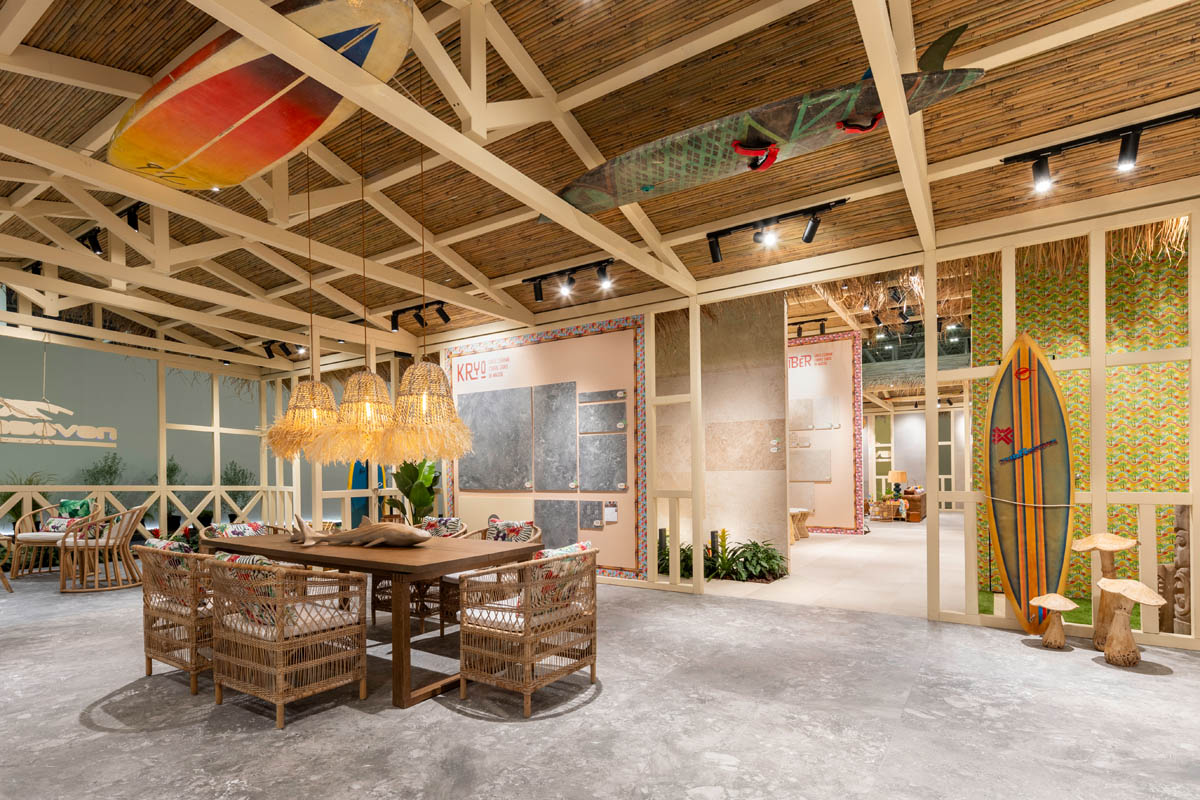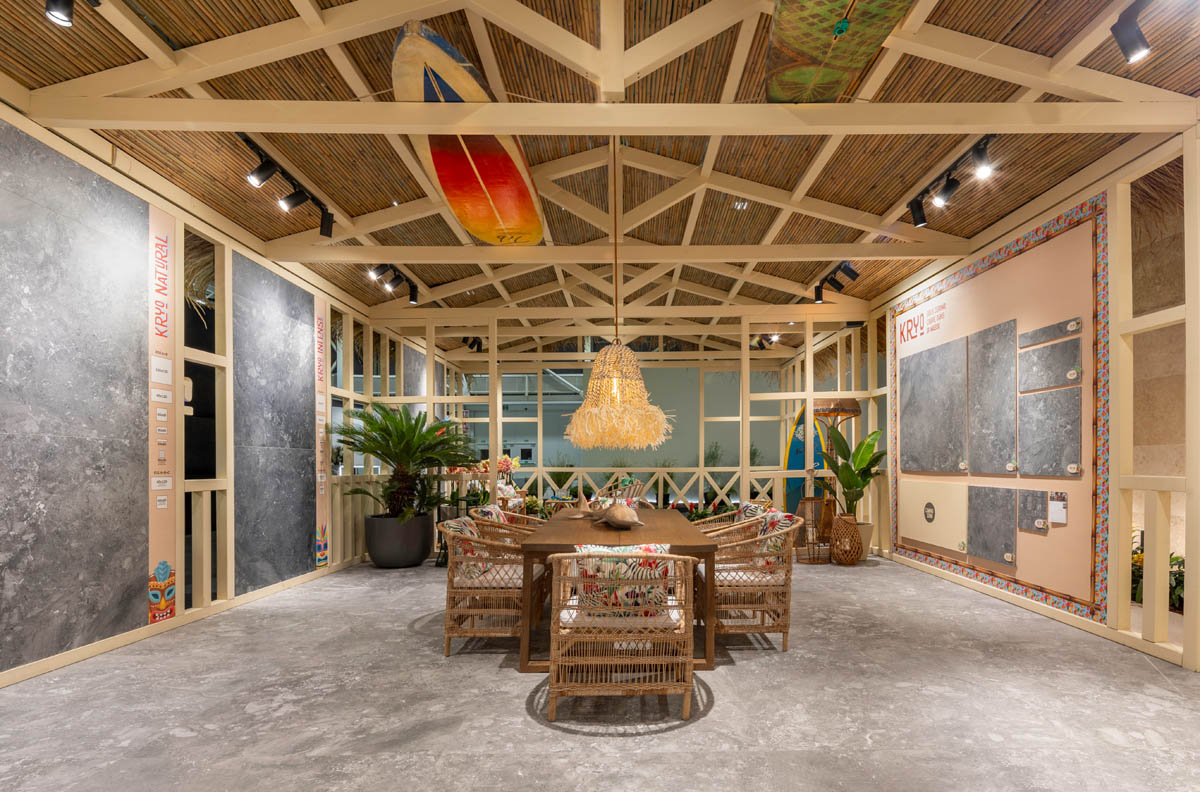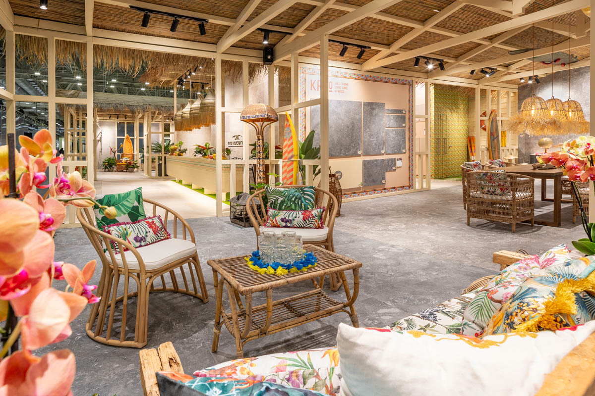 Welcome to our Hawaiian cottage at Cersaie 2023, the International Exhibition of Ceramics for Architecture and Bathroom Furnishings in Bologna.