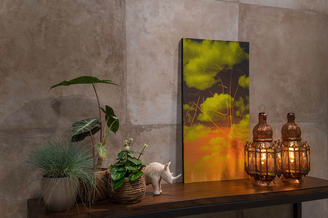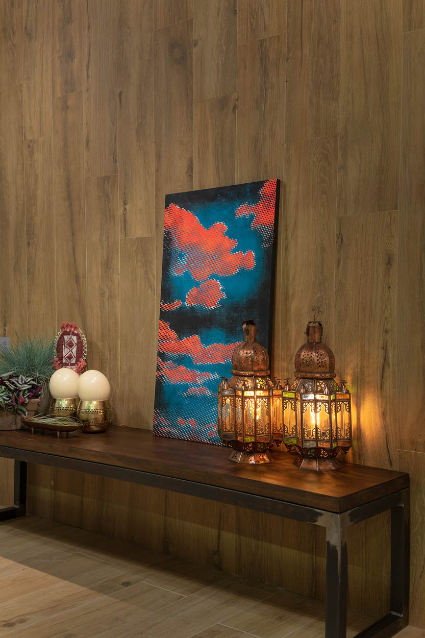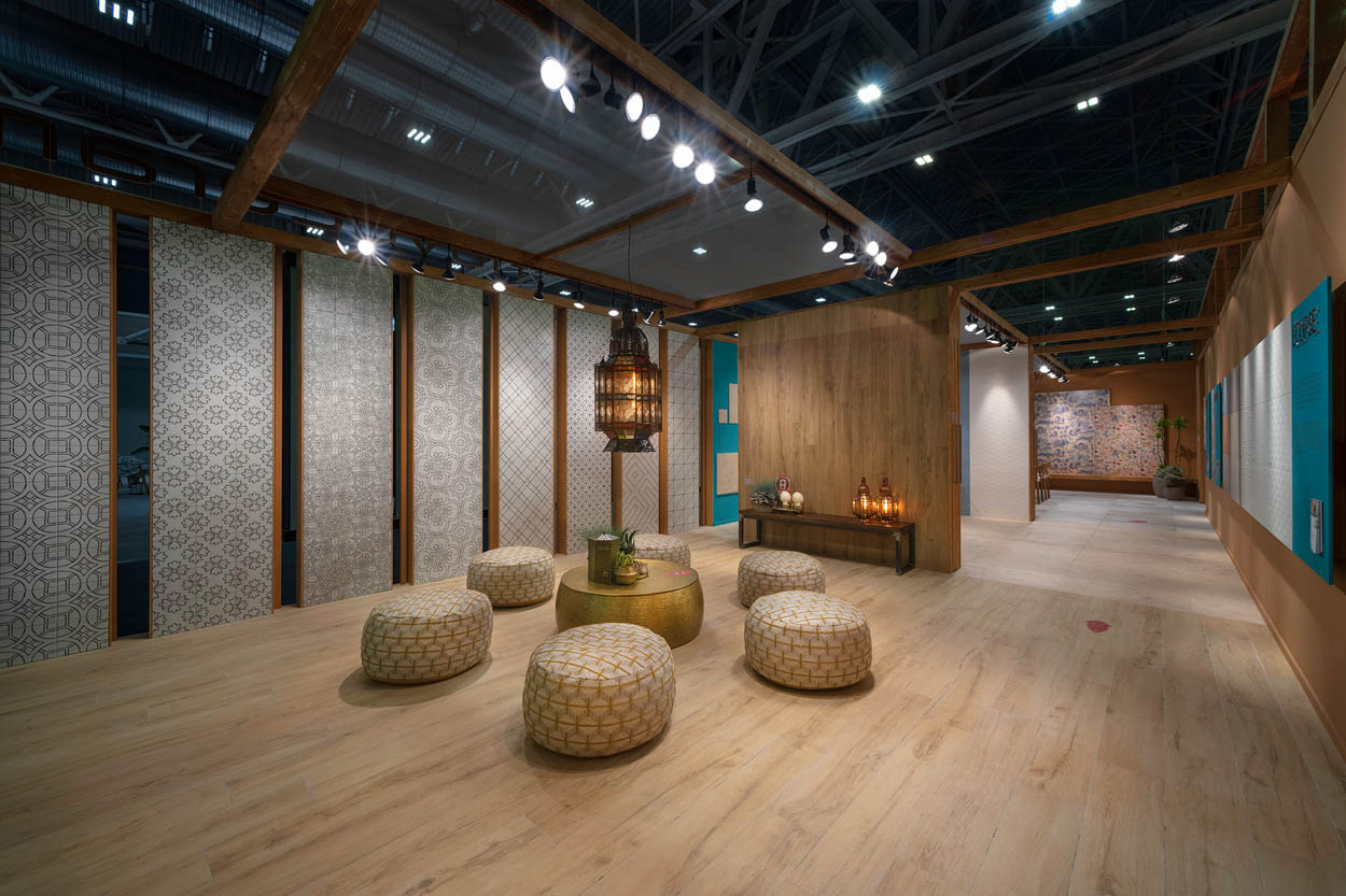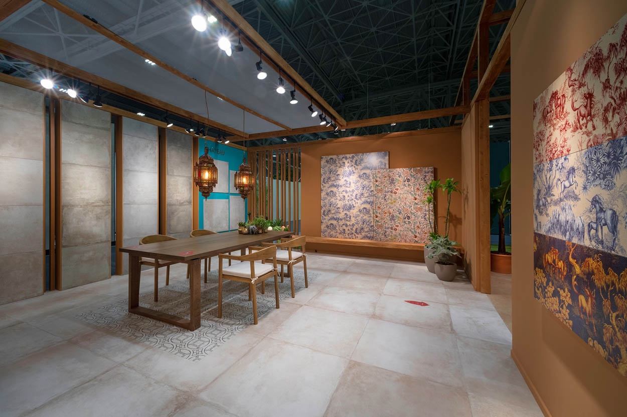 The “Oasis” scenography, designed by Francesco Catalano, reinterprets all the warm colours and rich materials of North Africa in a contemporary way and offers a pleasant imaginary journey among our ten novelties for 2022.