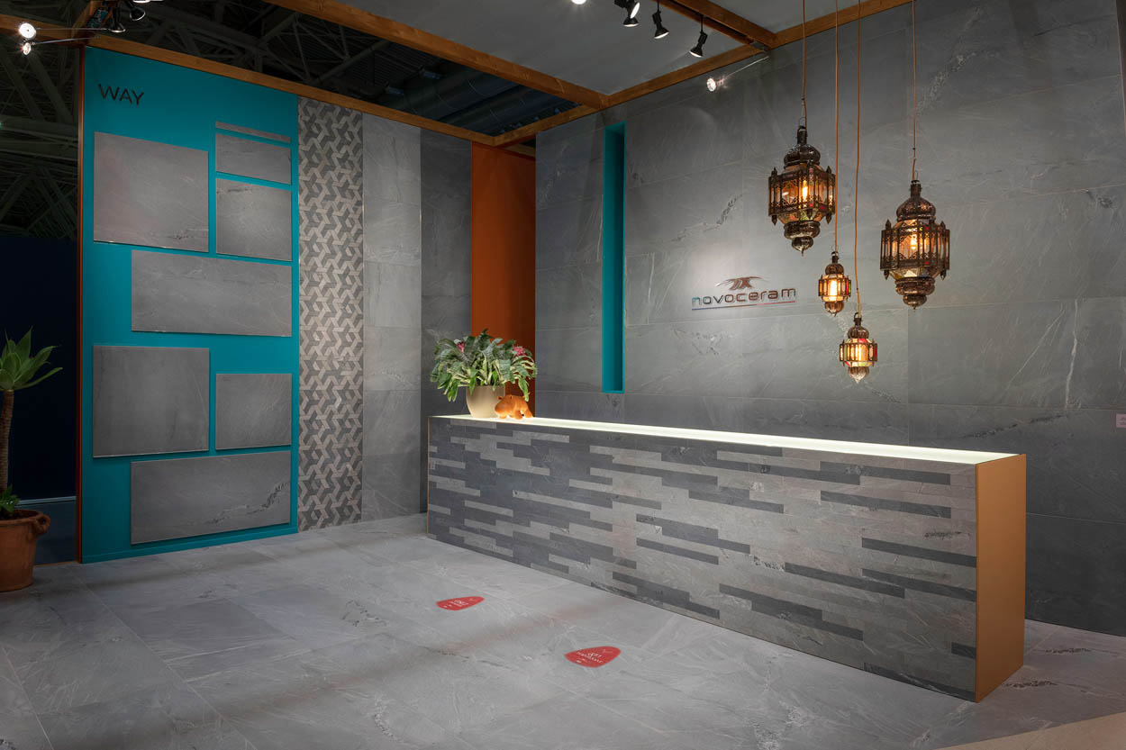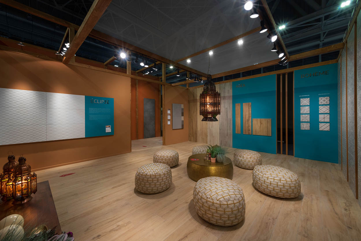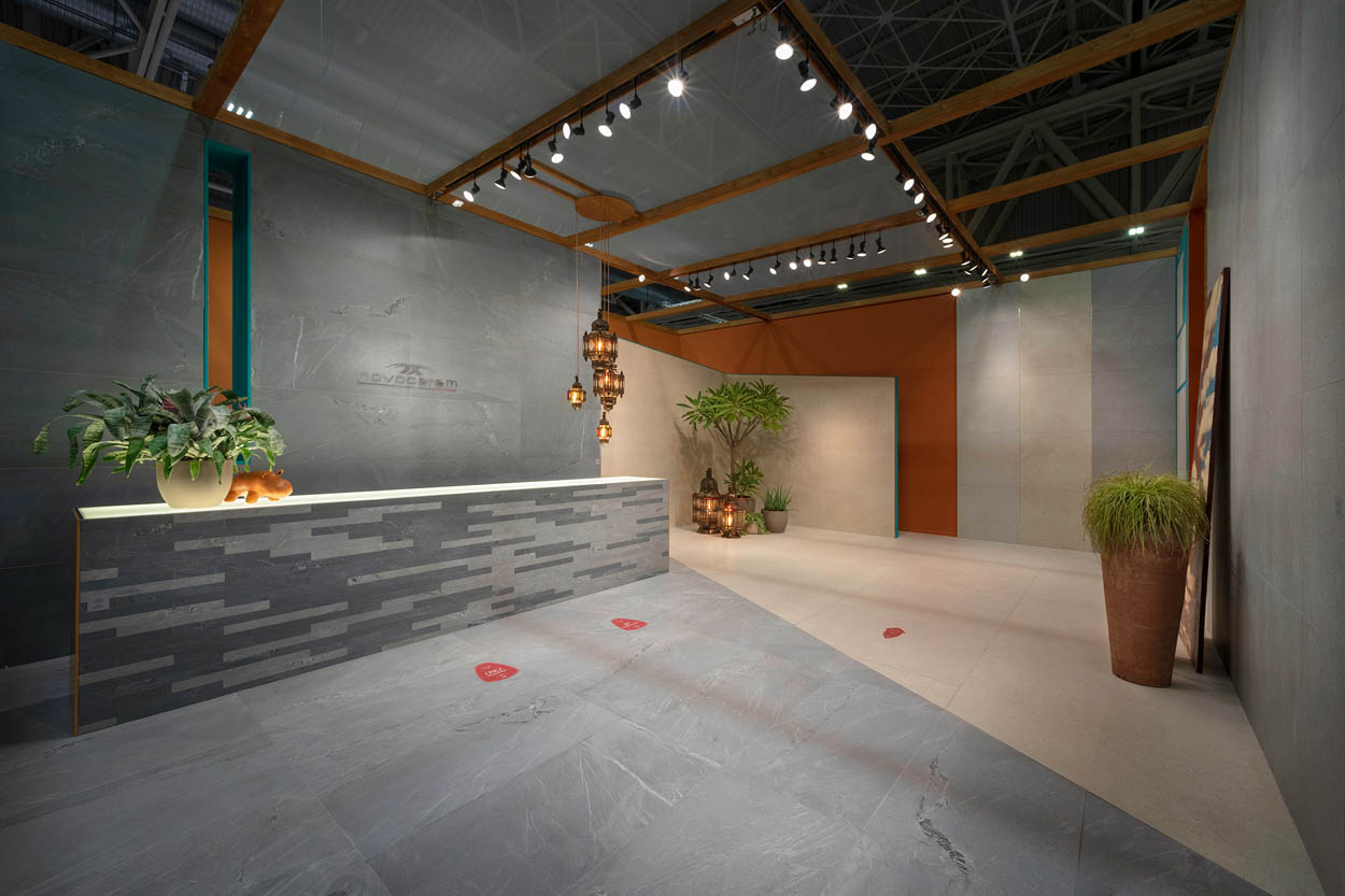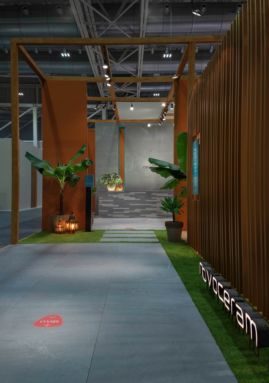 During Cersaie 2021, the International Exhibition of Ceramic Tile and Bathroom Furnishings in Bologna, Novoceram has unveiled many new collections for the year to come in a real relaxation island called “Oasis”.