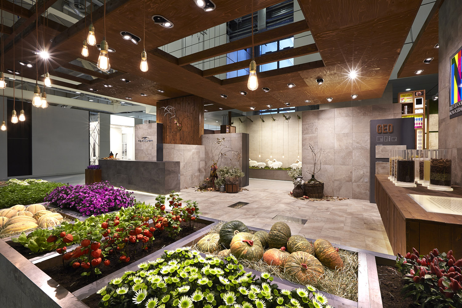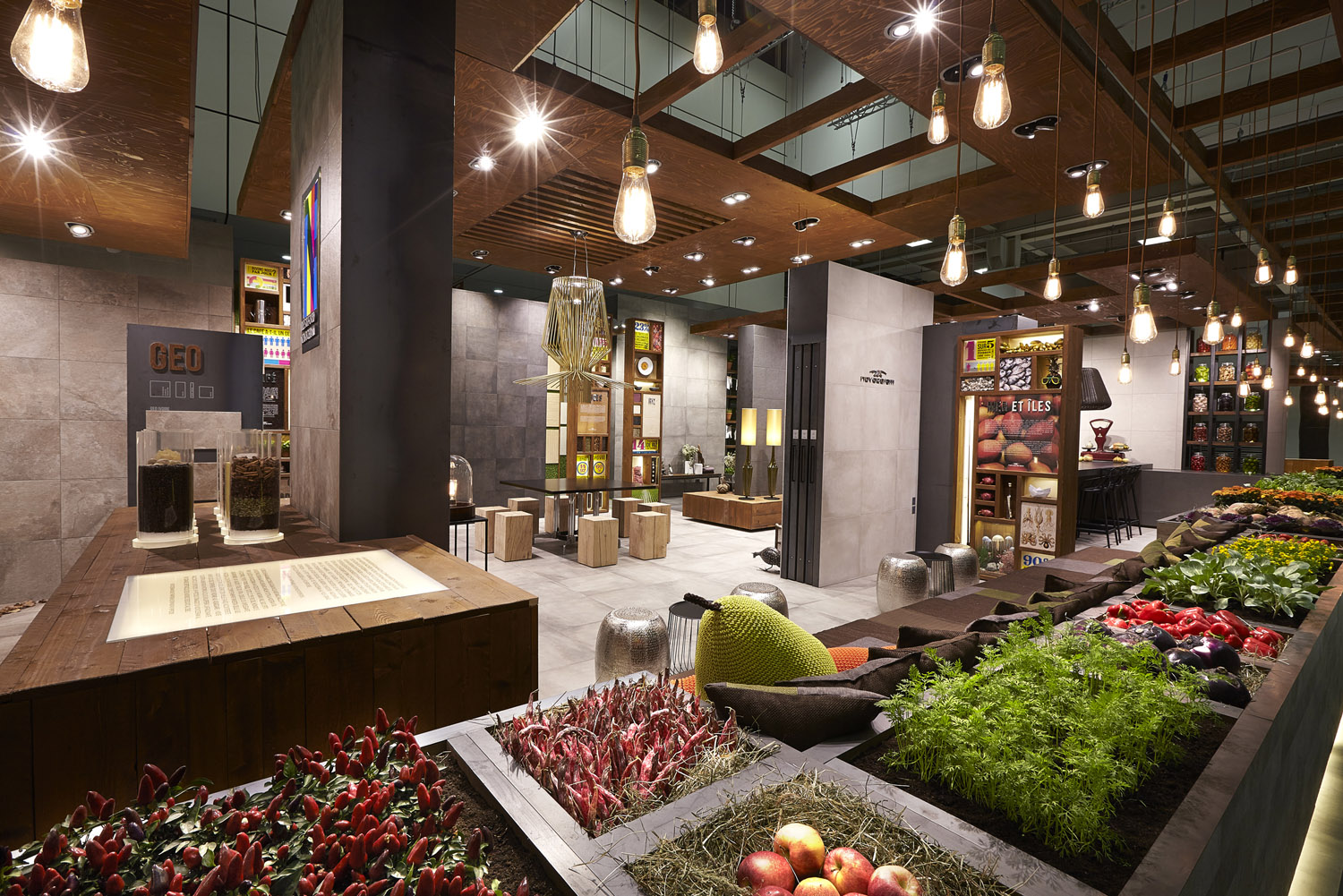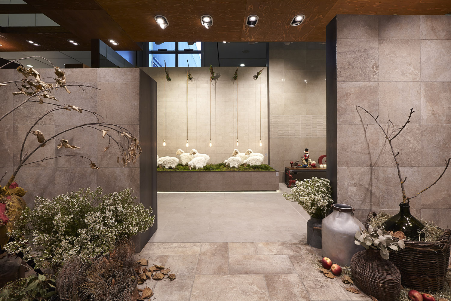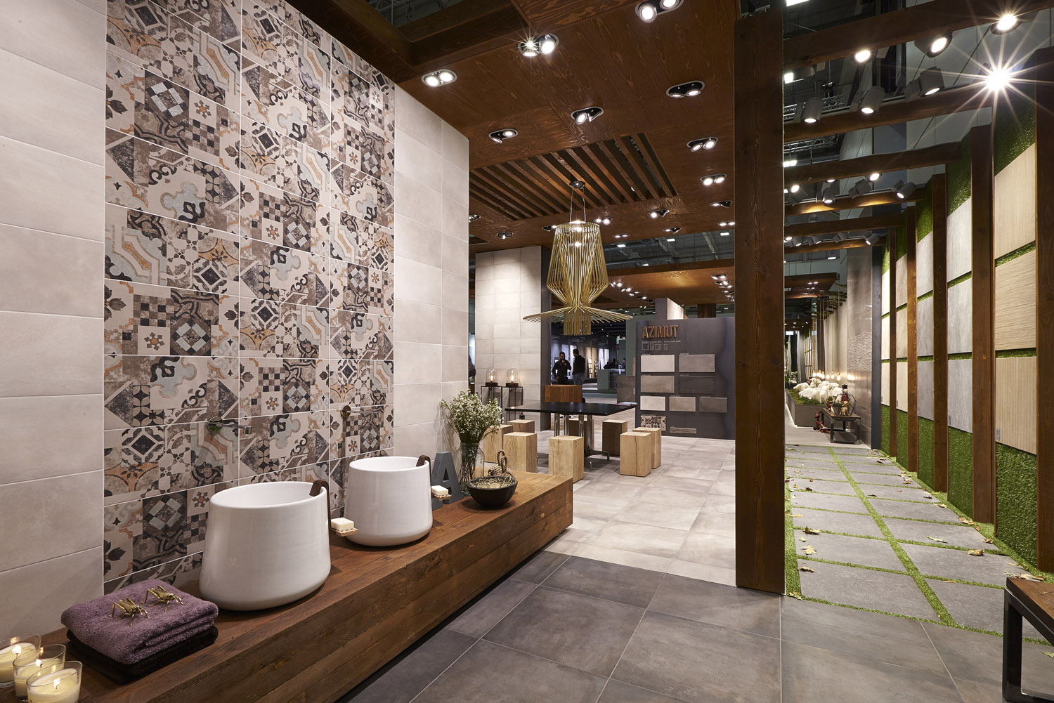 In the corridors of the exhibition he has recreated the atmosphere of a contemporary farm surrounded by the new ceramic collections of Novoceram, Geo, Azimut and Zen.
