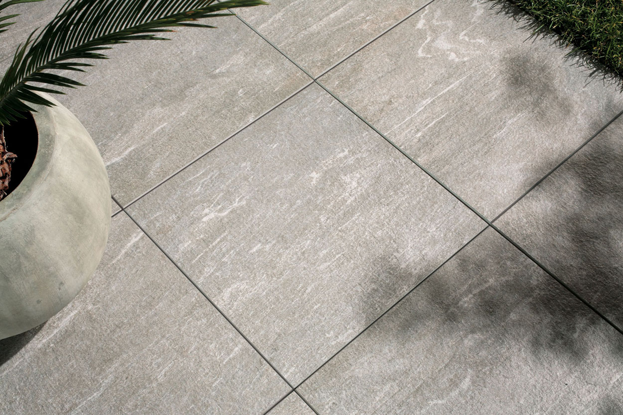 Outdoor Plus 20mm tiles are made from porcelain stoneware and can be easily laid using a variety of methods. Firstly, it eliminates the need for glue and grouting, and can be laid on gravel, lawns or even on a raised base. Of course, the traditional method of laying glue on screed is still applicable and necessary in special circumstances, such as when installing pool edges in particular.