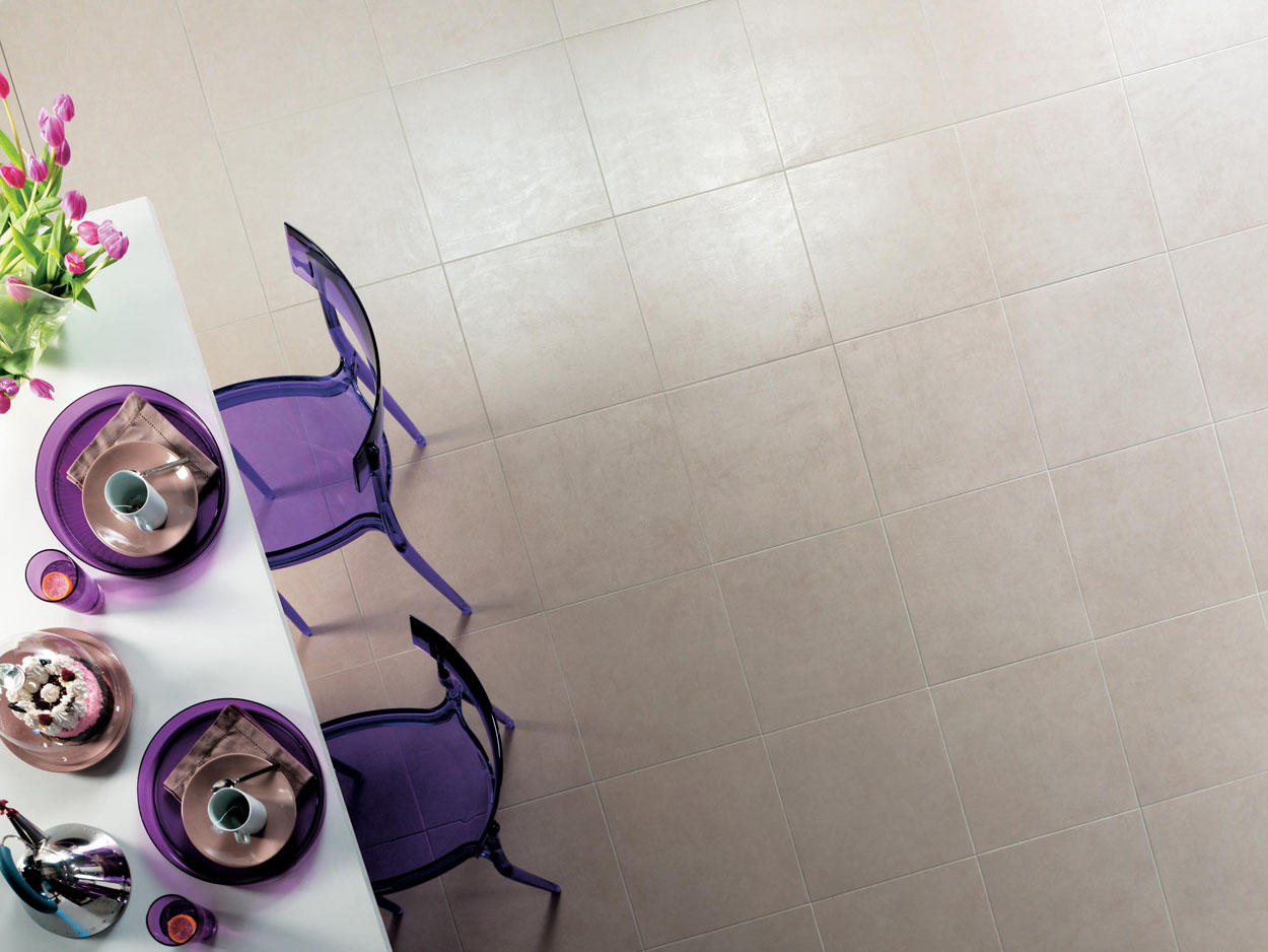 The glazed stoneware floor can feature more neutral and bright colours such as white floor tiles, ivory or even light grey, which generally give more brightness and space to your interior or exterior and let the light in. On the other hand, grey floor tiles, whose tones range from slate to dark greys such as lead, iron or graphite, are dark colours that can invite contrasts. You can combine them with light-coloured walls to create a fresh, contemporary ambience.
