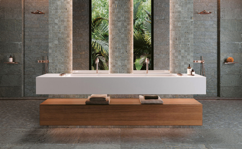 To continue to celebrate nature, another option is stone effect bathroom tiles, which bring a touch of nobility to the space. The modern yet luxurious look of ceramic stone is a great idea for adding texture to walls.