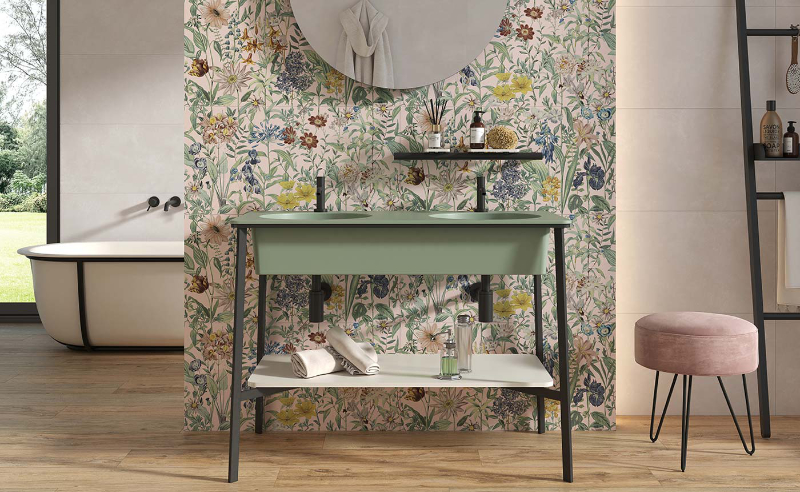 Finally, decorative fantasies lend themselves particularly well to bathrooms because they invite personalization. A collection of wall tiles with a wallpaper effect is the first example of an original touch. The wide variety of patterns on ceramic wallpaper makes it almost essential in an unusual decoration. Between flowery prints, enchanting decorations and geometric lines, these tiles have become crucial decorative objects. Similarly, ceramic cement tiles create a timeless decoration with their classic or minimalist patterns.