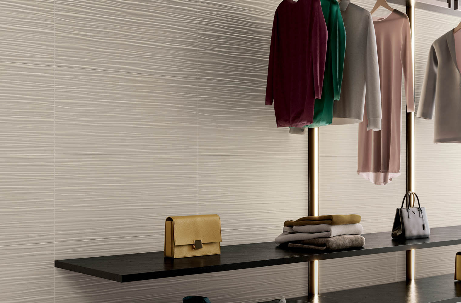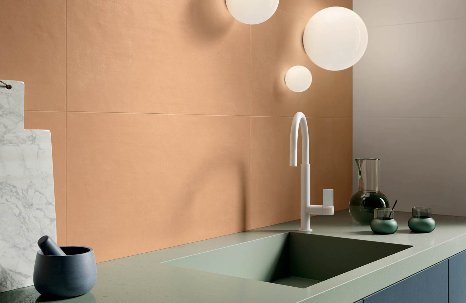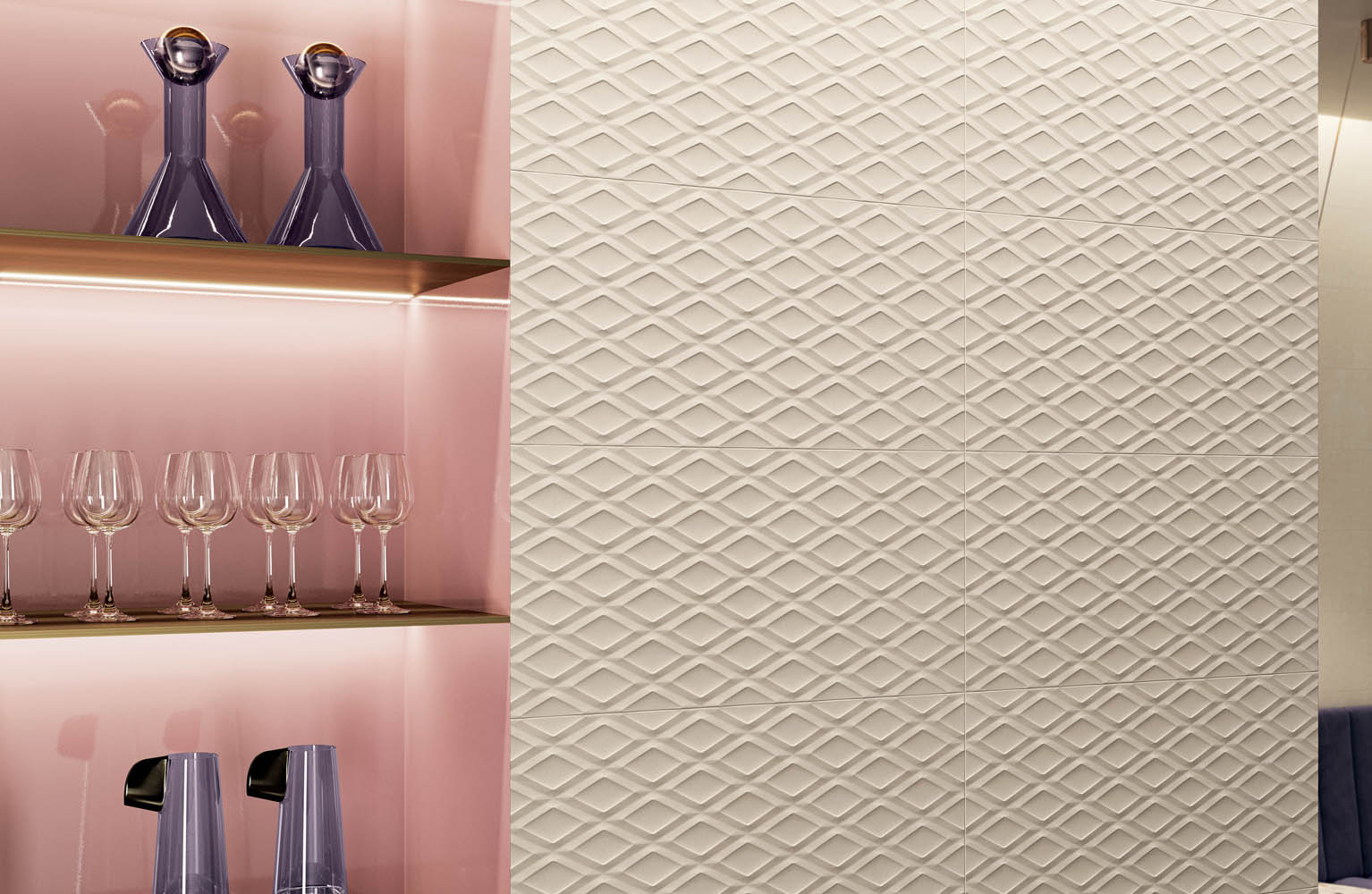 Available in six plain colours, Eclipse expresses the concrete look through its unique 40×80-cm tile size on walls, which then ooze discreet charm. The versatility of collection is reflected in the numerous contrasting and graduated effects that are created through infinite colour combinations. However, the decorative power of Eclipse also relies on 3D structures that give life to relief patterns. Walls are adorned with originality and become beautiful creations.