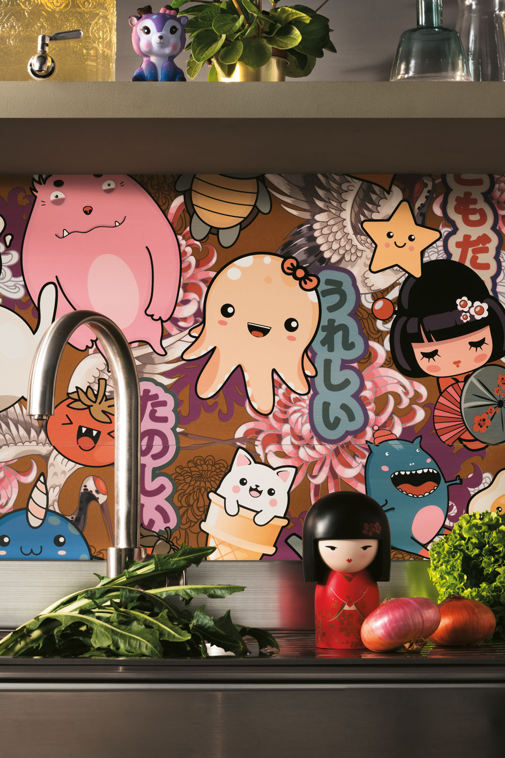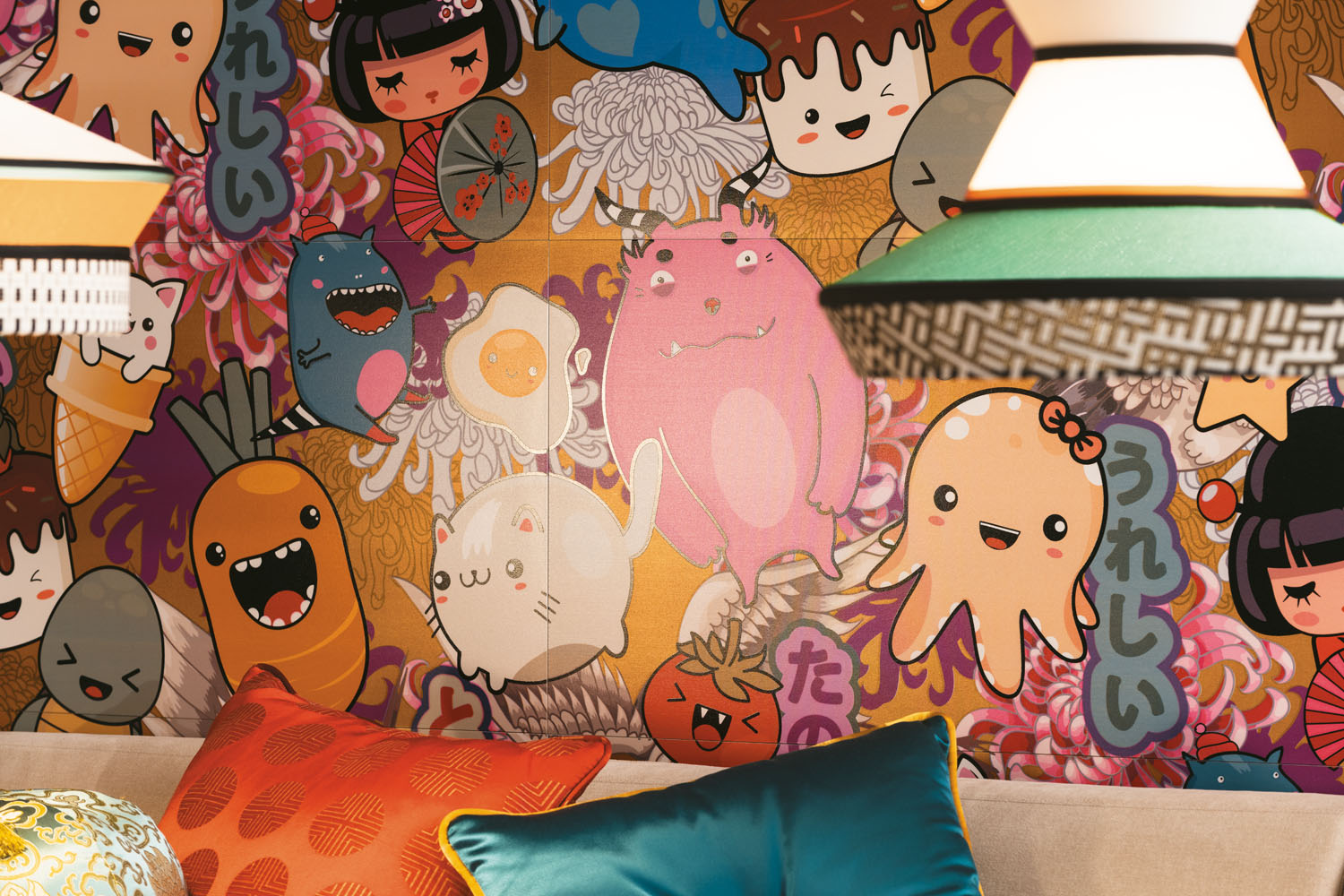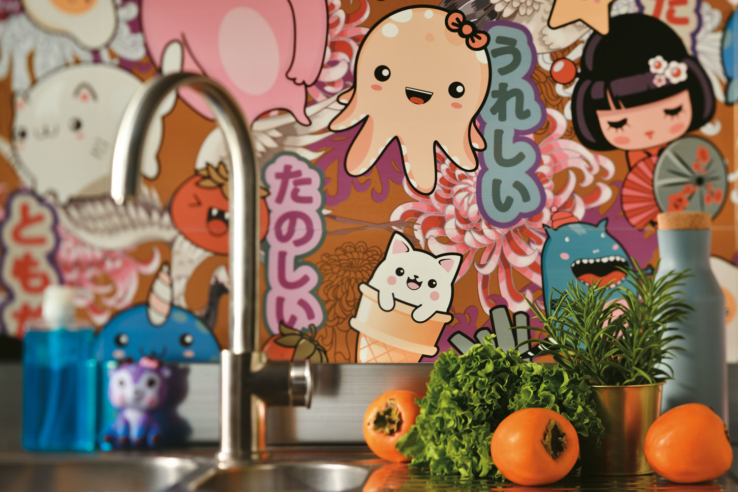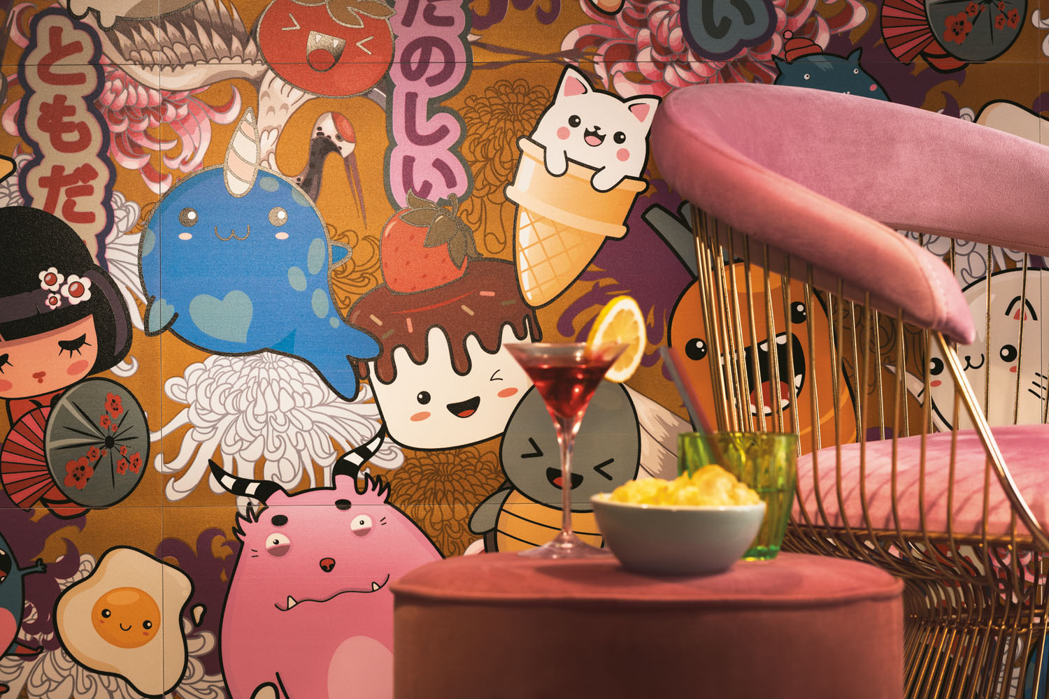 Kawaii is a ceramic collection of white-body wall tiles inspired by the eponymous Japanese aesthetic style, sparkling and full of joy, born in the 70s in response to the rigidity of Japanese post-war culture.