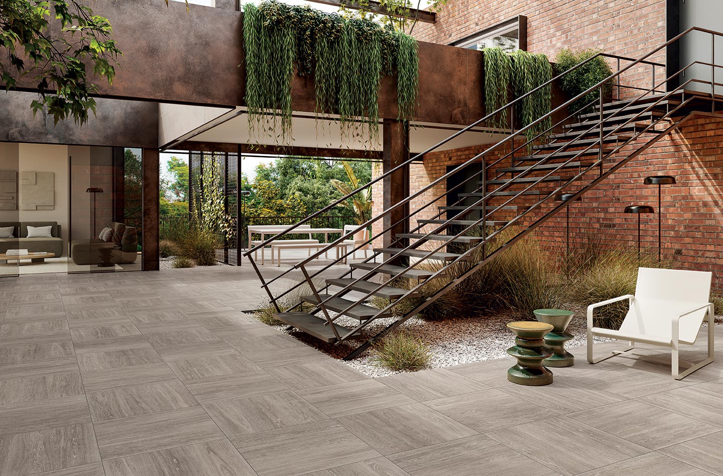 Lombok is the ceramic interpretation of three particular oak declinations in which the fibres, grains and smallest details of natural wood are reproduced with absolute fidelity. The original 60×60 Outdoor Plus square format is reminiscent of traditional outdoor wood tiles.