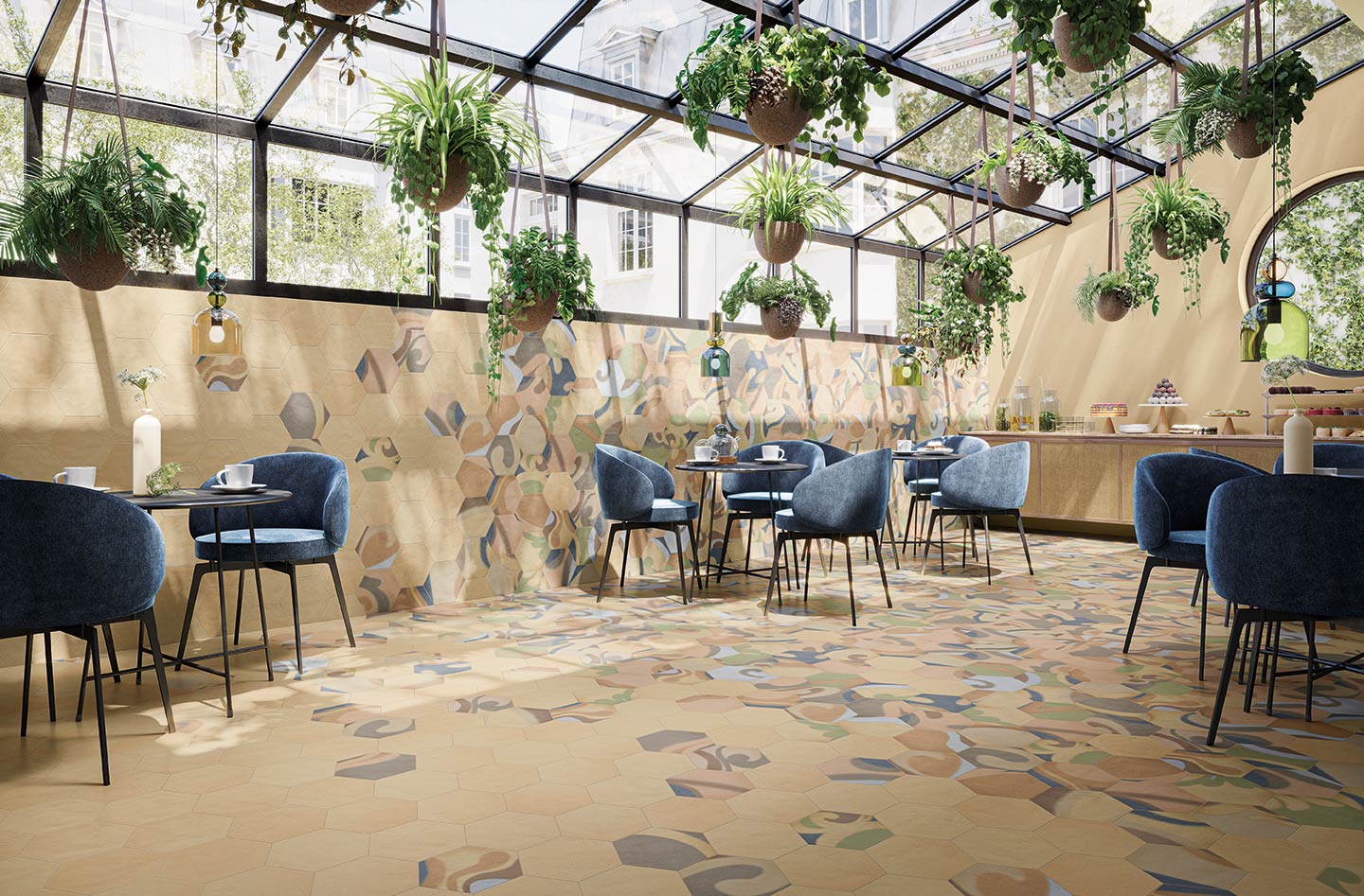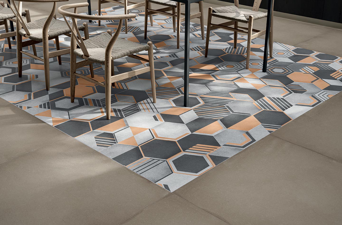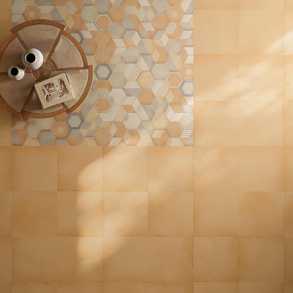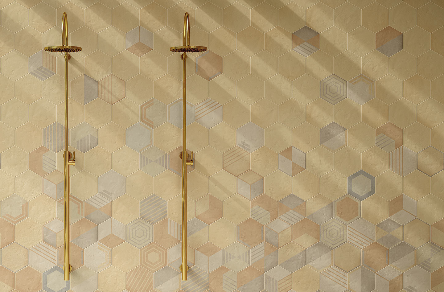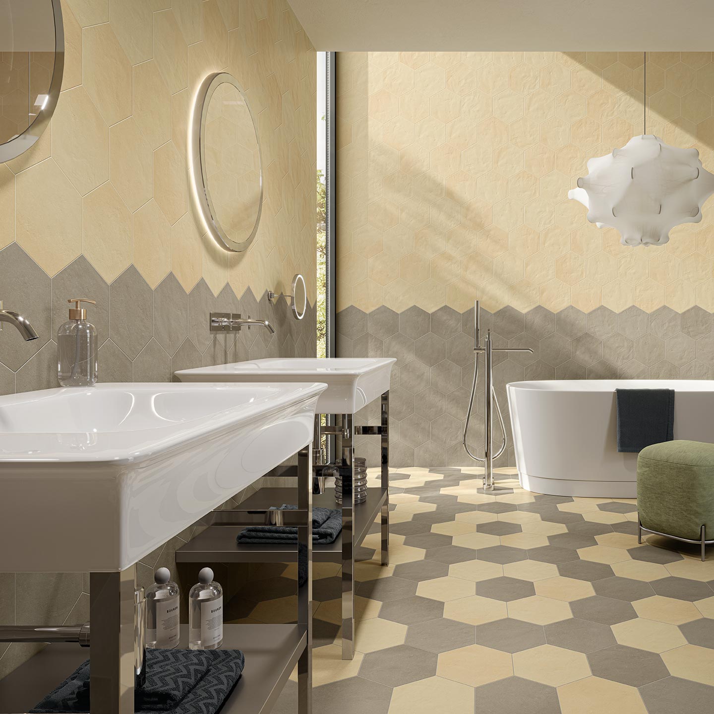 Osmose was born from an opportunity. A suggestion born from the desire to show in all its beauty the rainbow of colours that characterise Novoceram’s Ojala series. The wealth of shades and variety in the design is intended to give new life to a classic format in the ceramic industry, the hexagon.