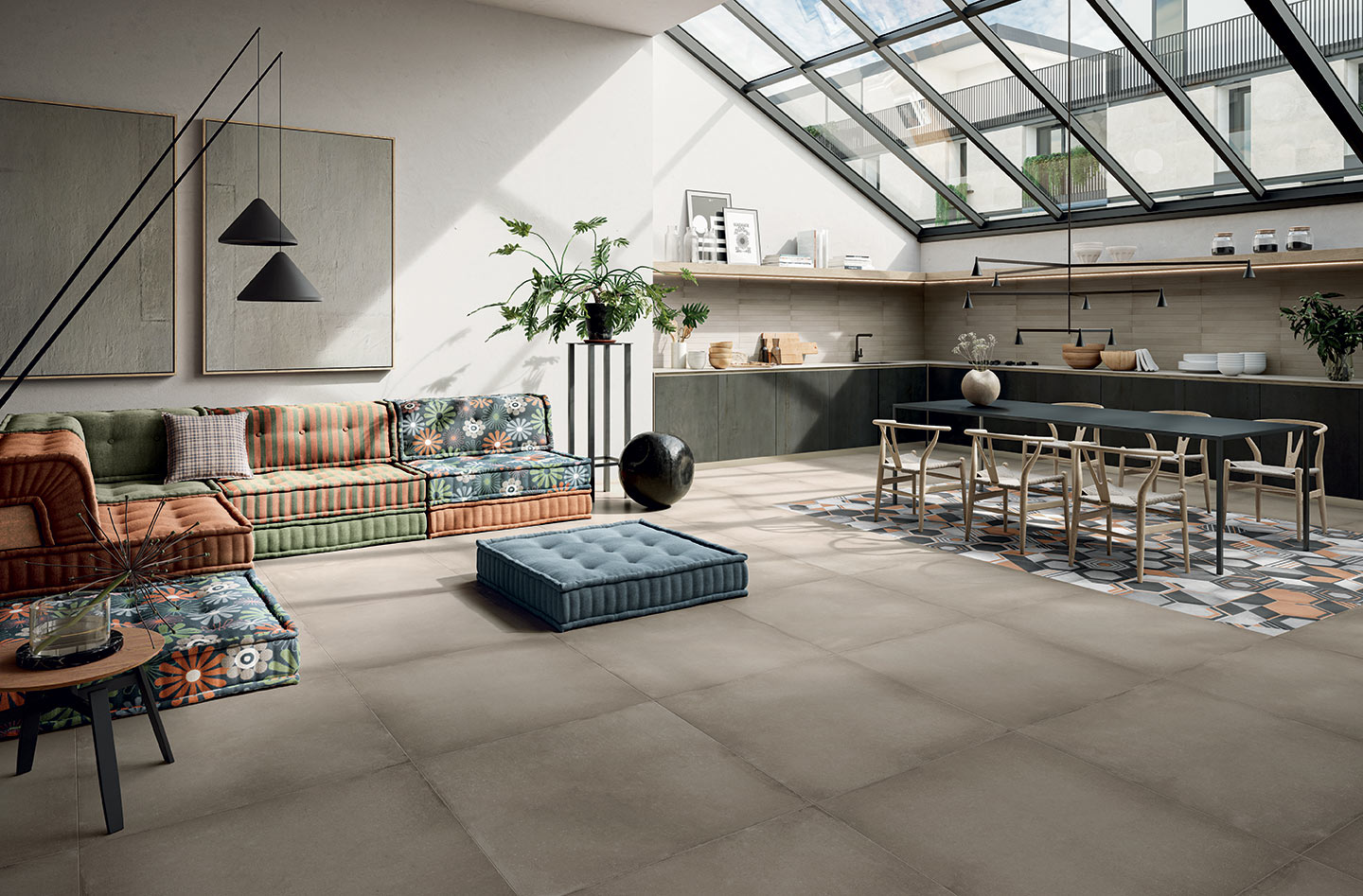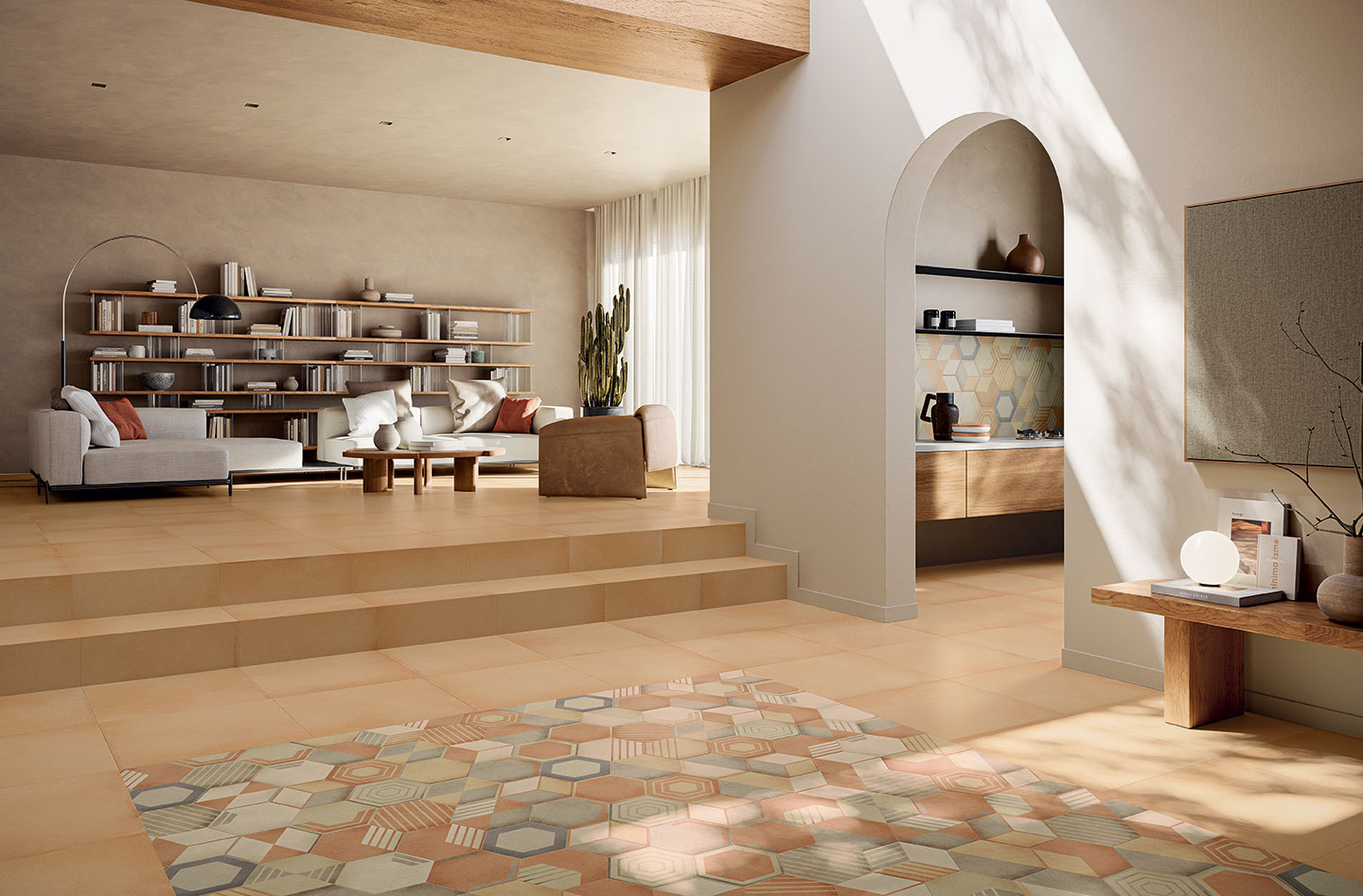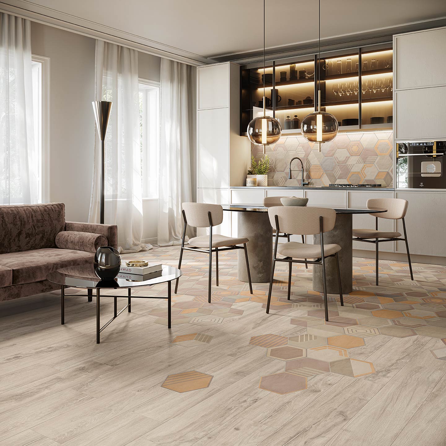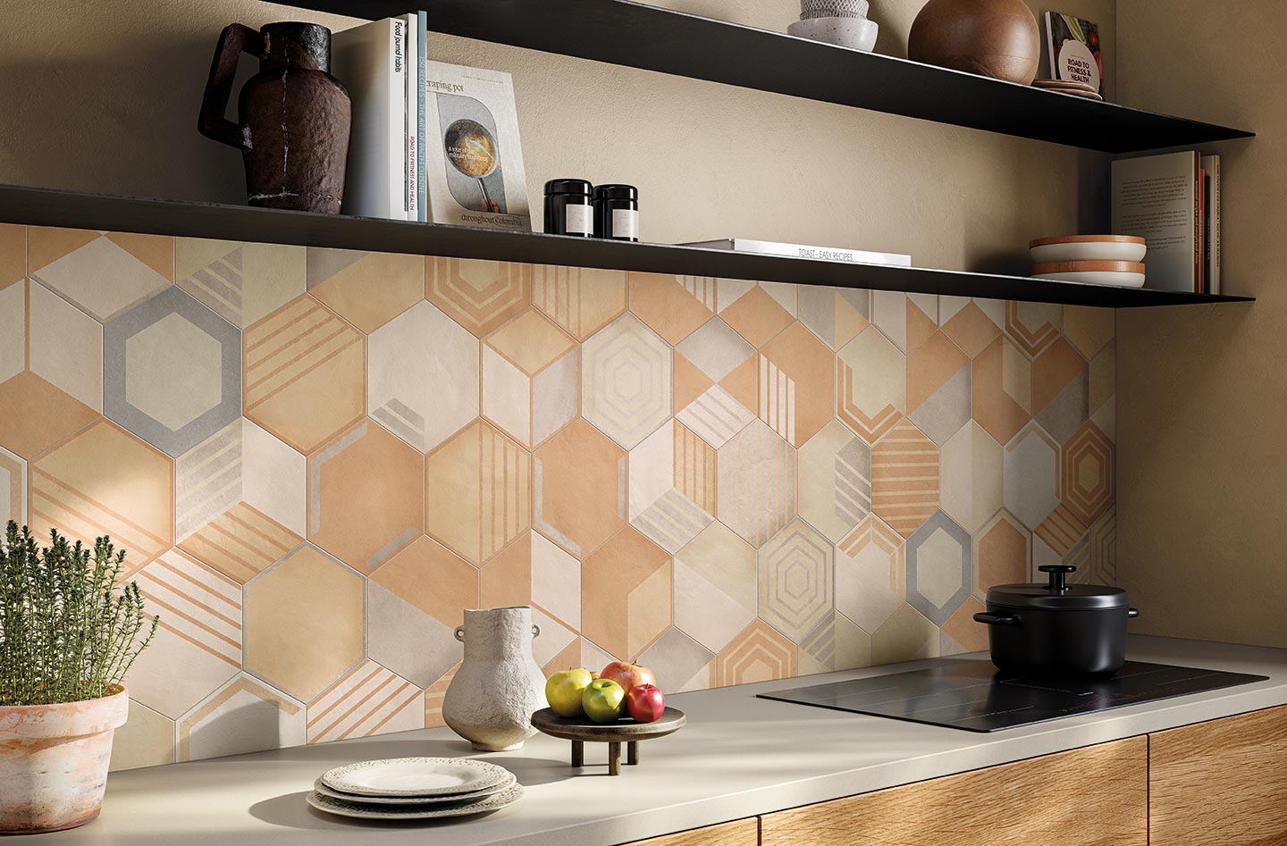 Osmose was born from an opportunity. A suggestion born from the desire to show in all its beauty the rainbow of colours that characterise Novoceram’s Ojala series. The wealth of shades and variety in the design is intended to give new life to a classic format in the ceramic industry, the hexagon.
