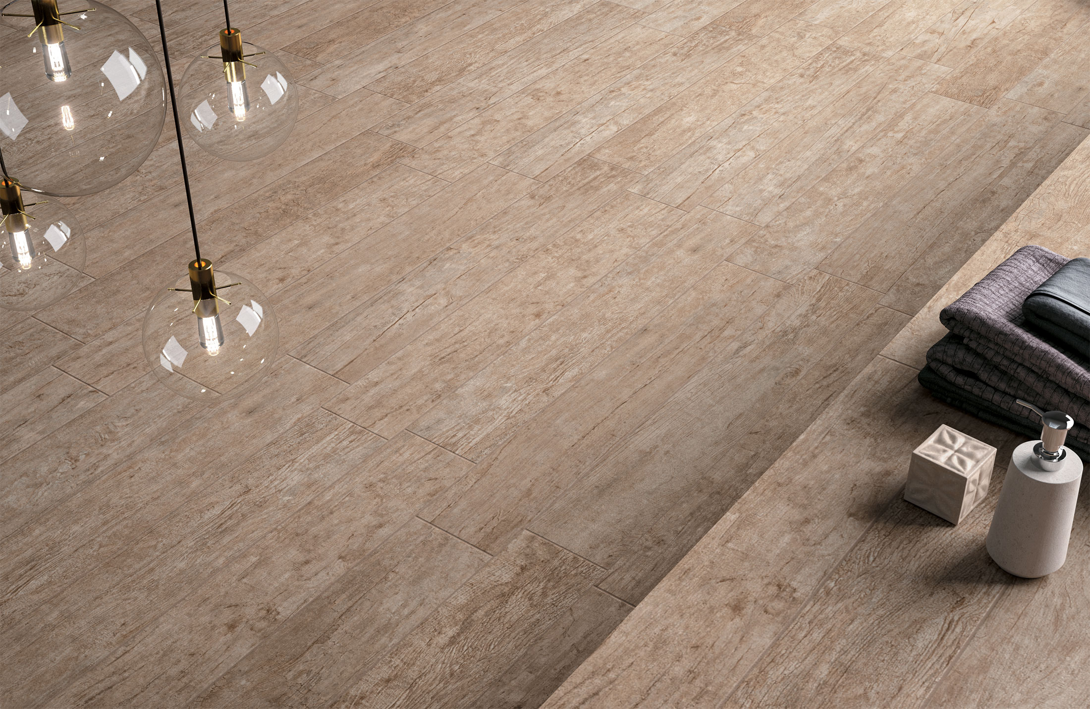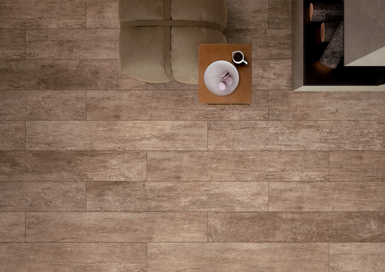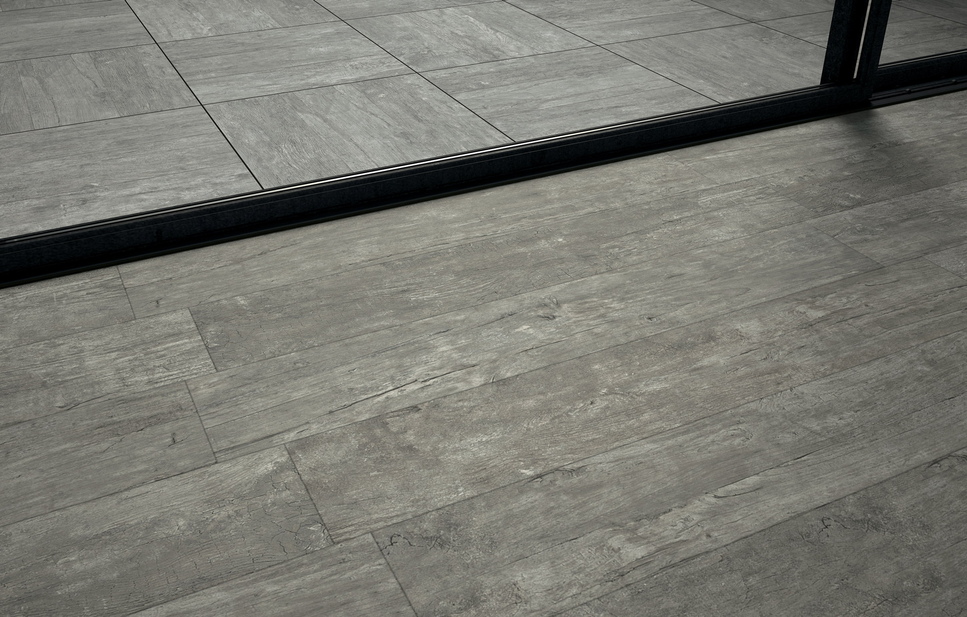 Wood effect ceramic tile with a seasoned and weather-beaten appearance, Tablon is available in three colours – light, grey and natural oak – in the 120×120 size for interiors and in the 60×60 and 30×120 sizes with a 20-mm thickness for exteriors.