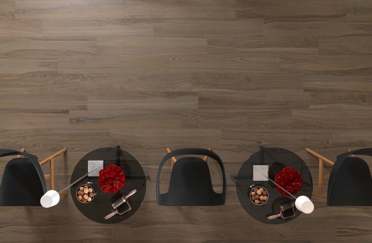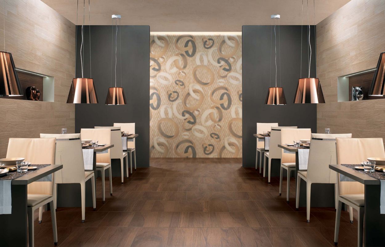 With cool or warm tones, brown tiles can be combined with other colours to create a variety of combinations. For a harmonious ambience, brown tiles can be combined with equally warm colours such as lighter beige or ivory, or with copper tones. On the other hand, the use of blue, shades of green or even pink give life to surprising contrasts for a memorable decoration that’s as personalised as you want it to be.