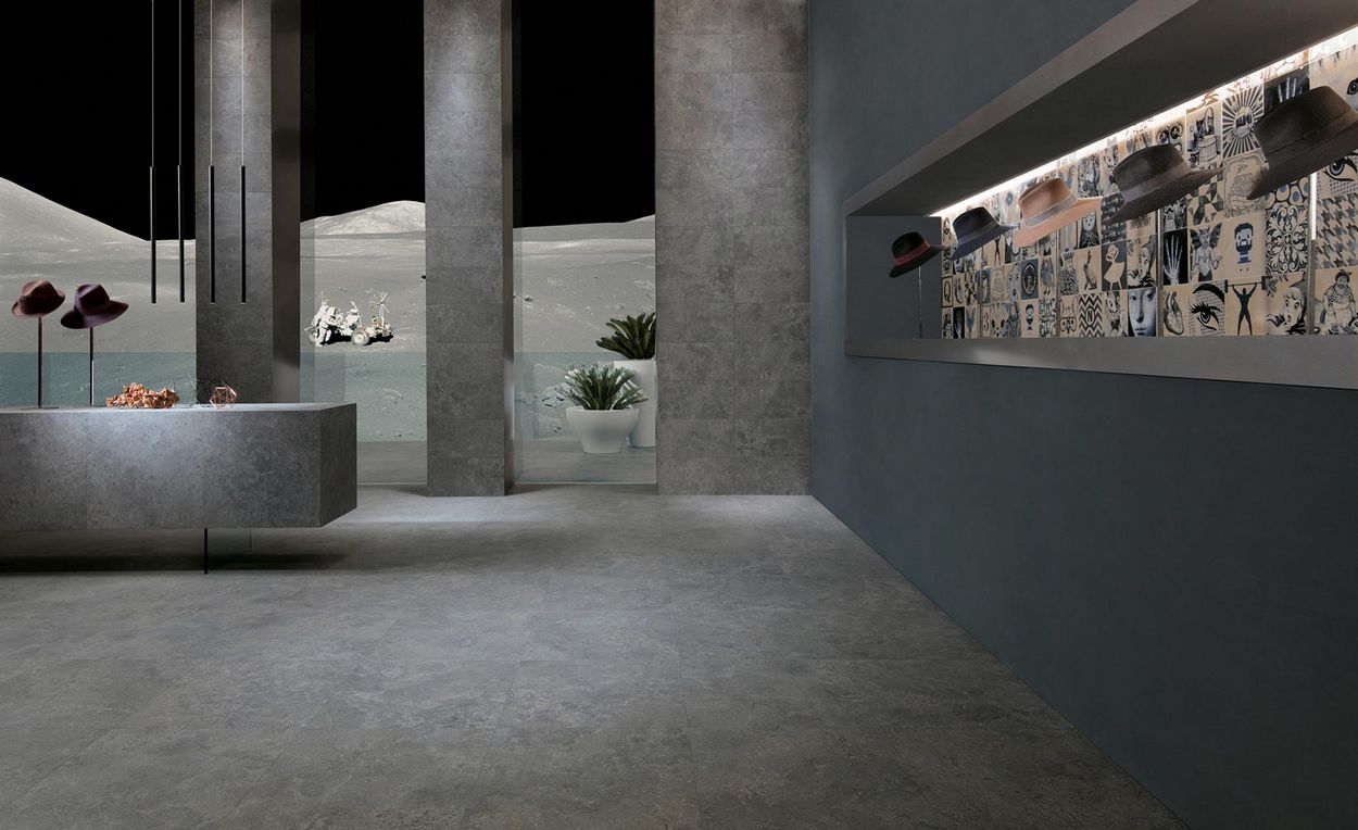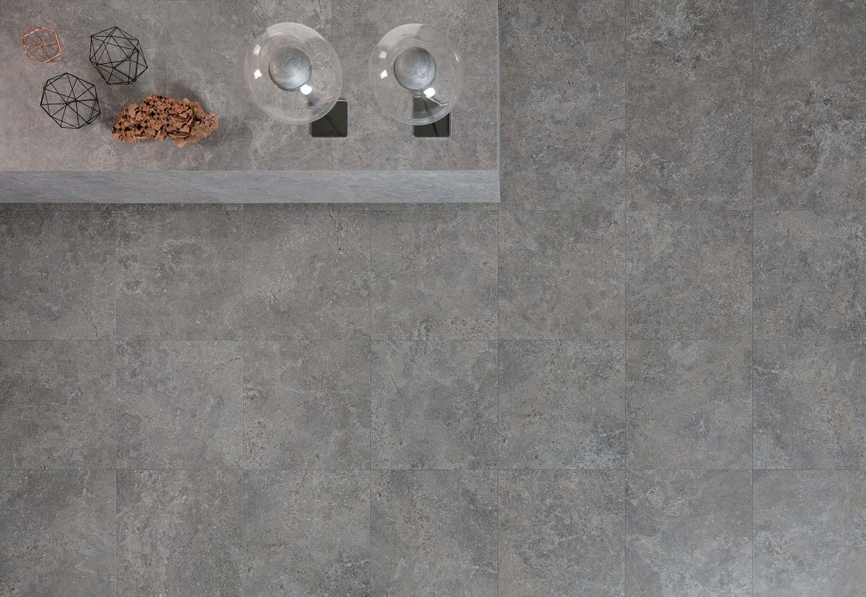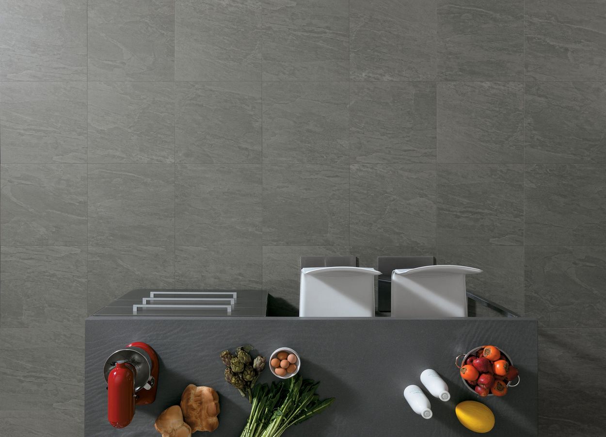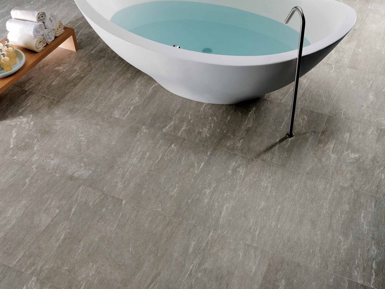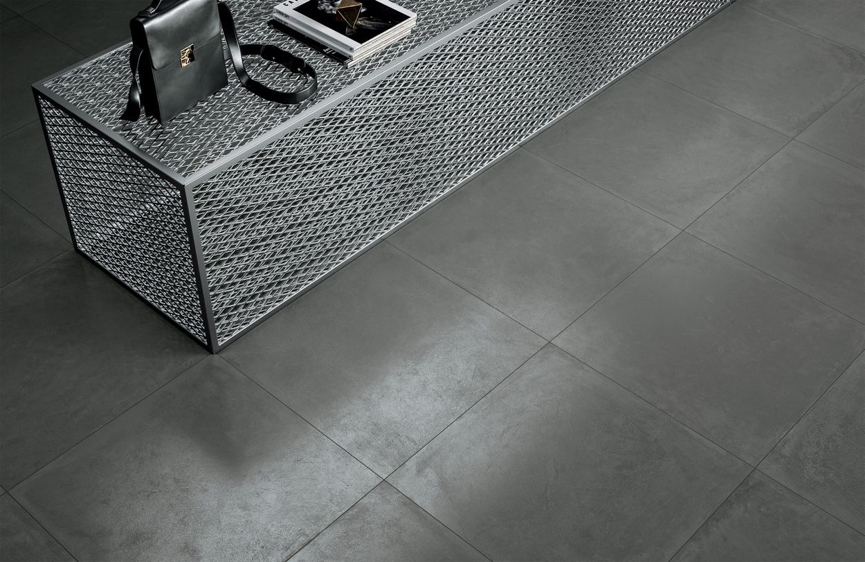 Grey porcelain stoneware tiles, halfway between bright white and deep black, are a trendy colour and their different tones give a certain refined edge to spaces.